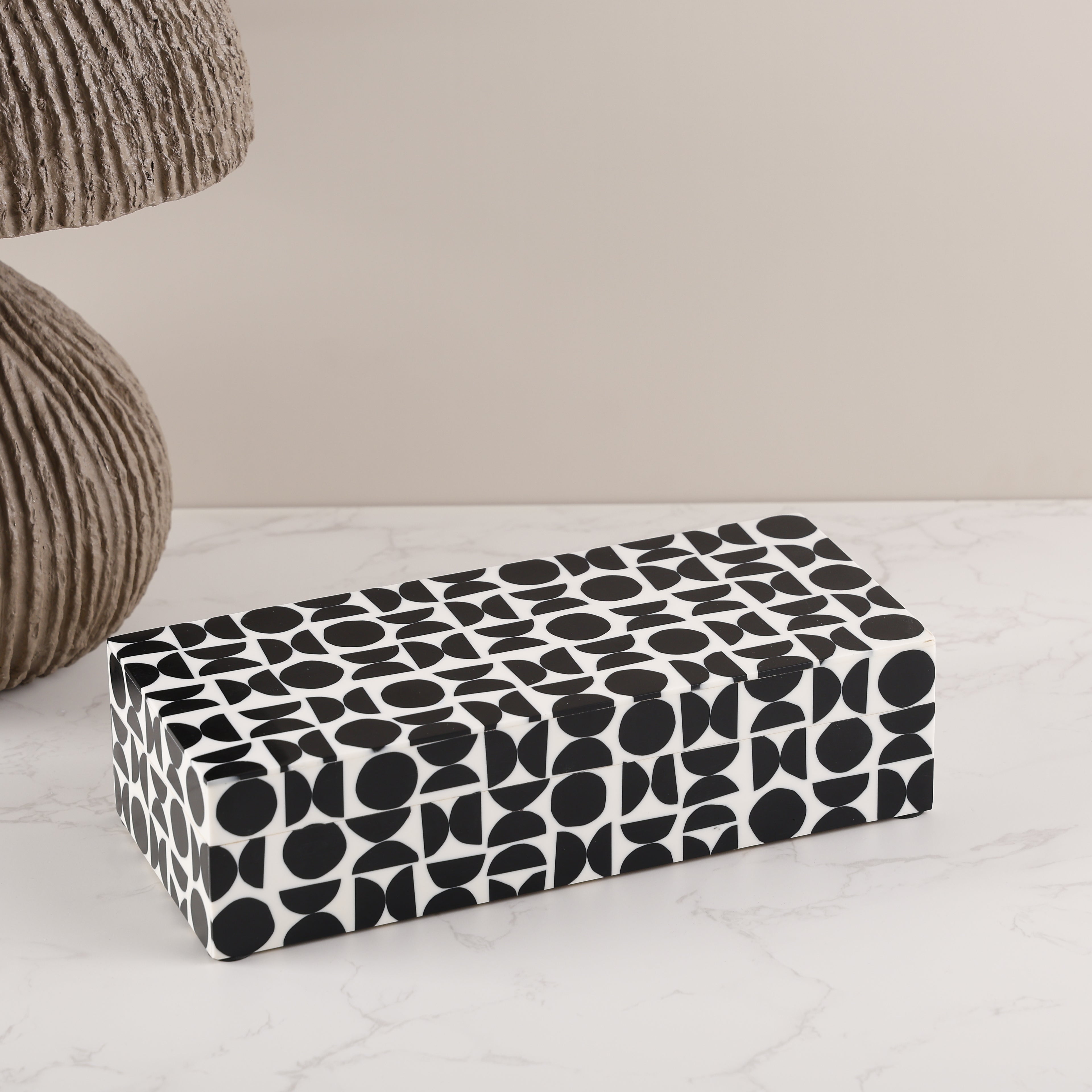 GeoPop Black & White Resin Inlay Decorative Storage Box – Where Bold Design Meets Handcrafted Elegance