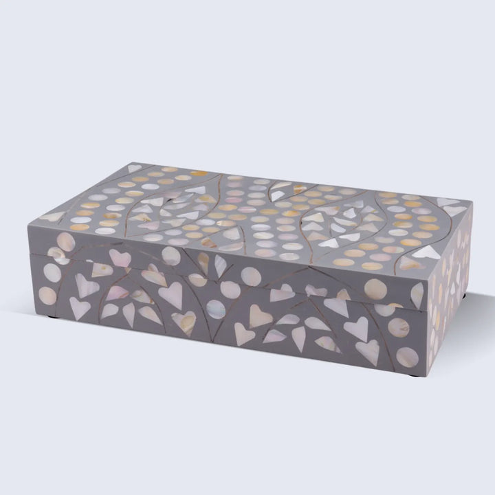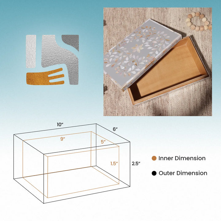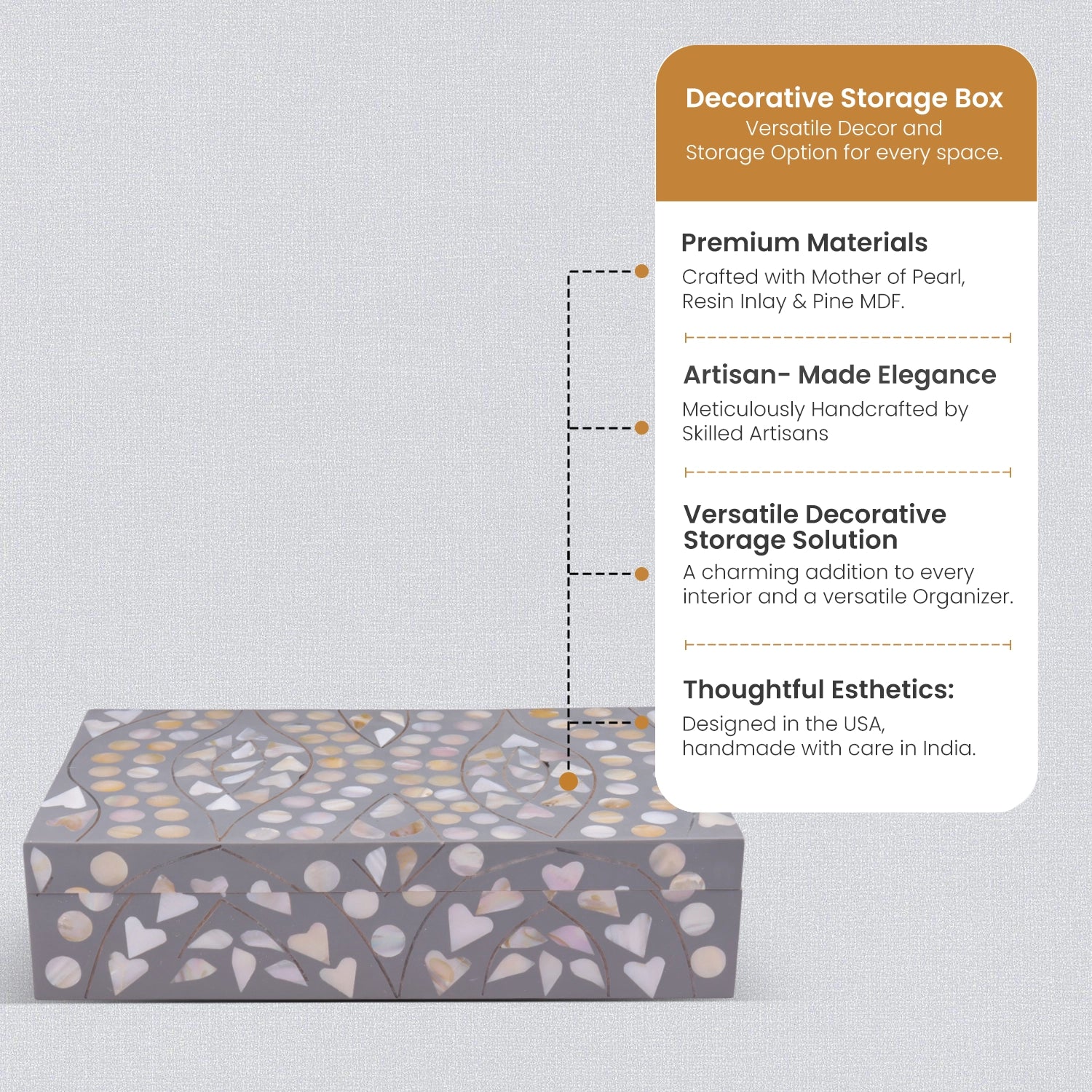 An Artisan Brand Without a Middleman: Experience the craftsmanship of traditional Indian artisans with our Polka & Prism pattern modern decorative box, thoughtfully designed and meticulously handcrafted without mass production or middlemen - crafted using natural mother of pearl, smooth resin inlay, and a durable Pine MDF base for structure and longevity.