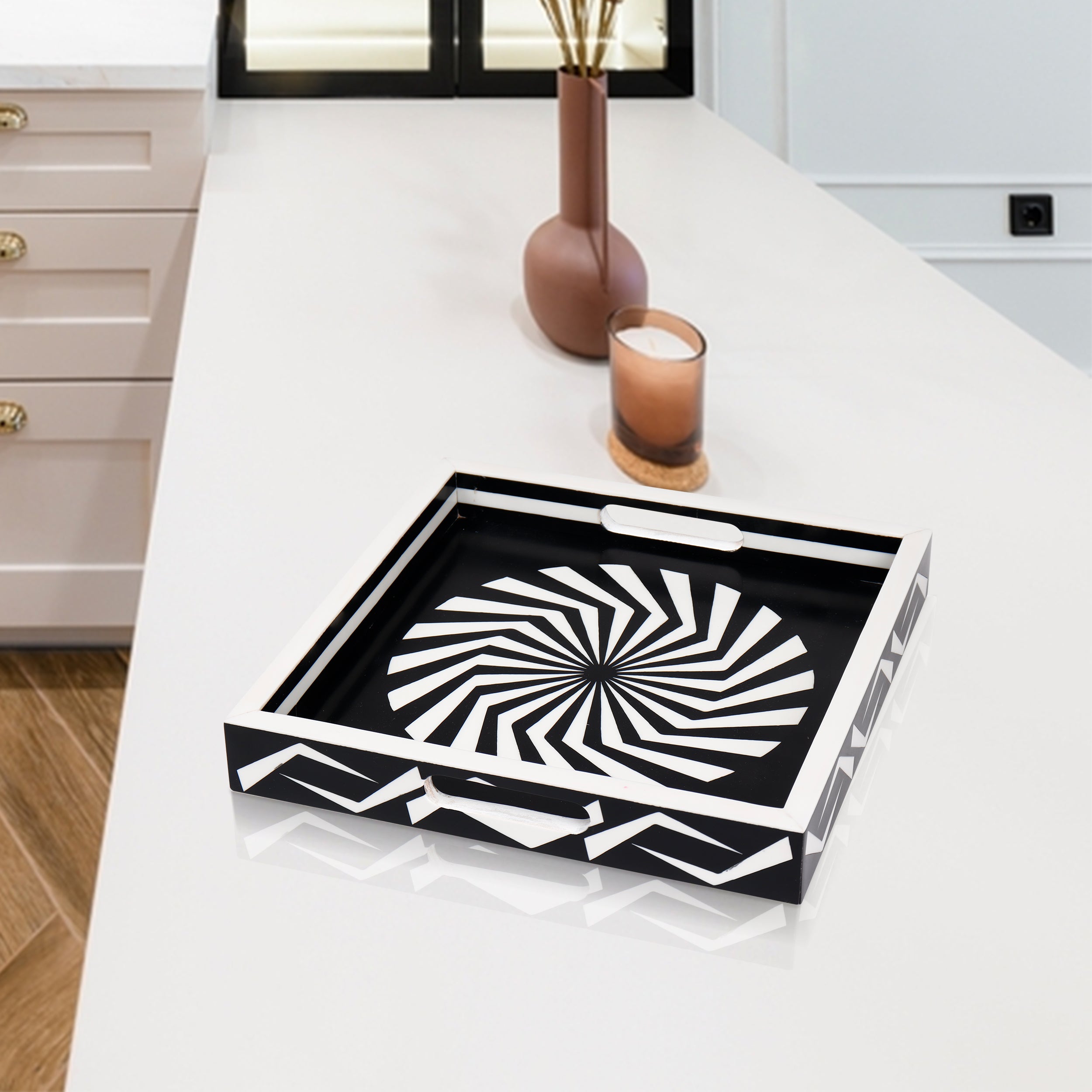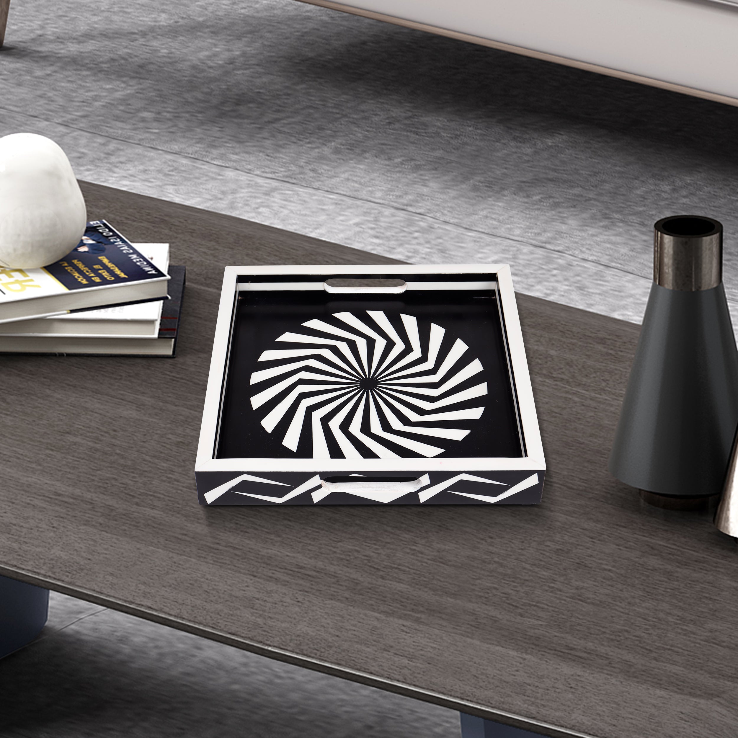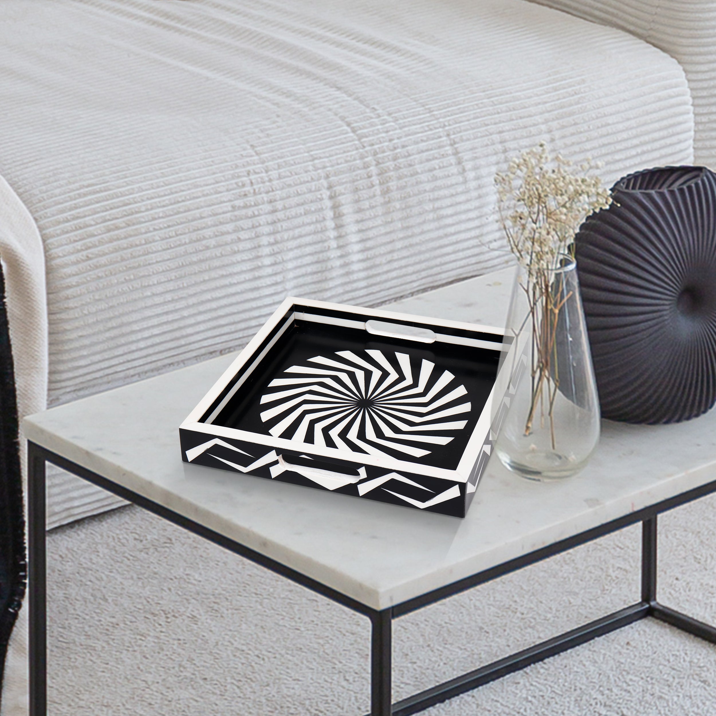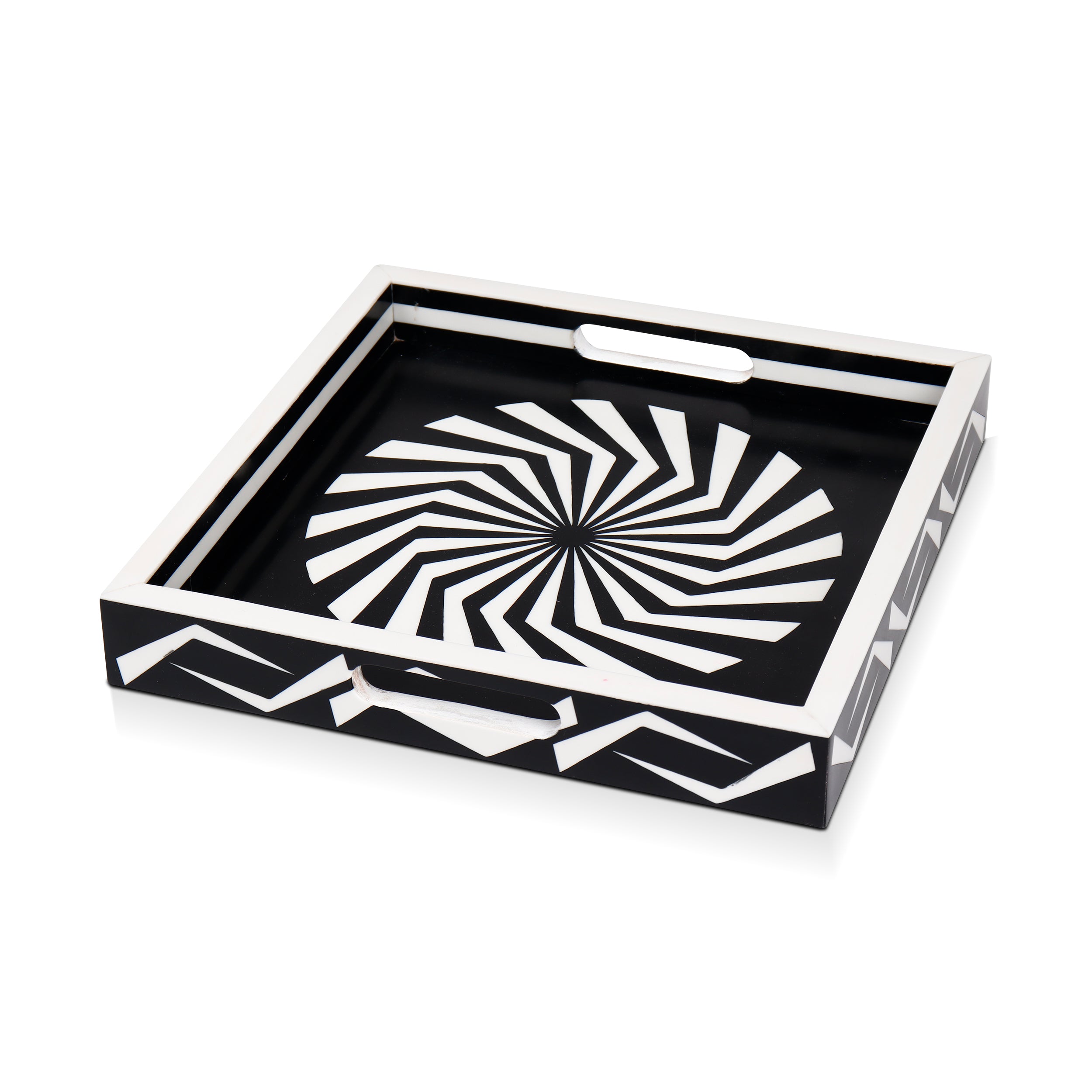 Decorative Tray Illusion Optic Black White Resin Inlay Modern Decorative Tray – 12x12 Inch