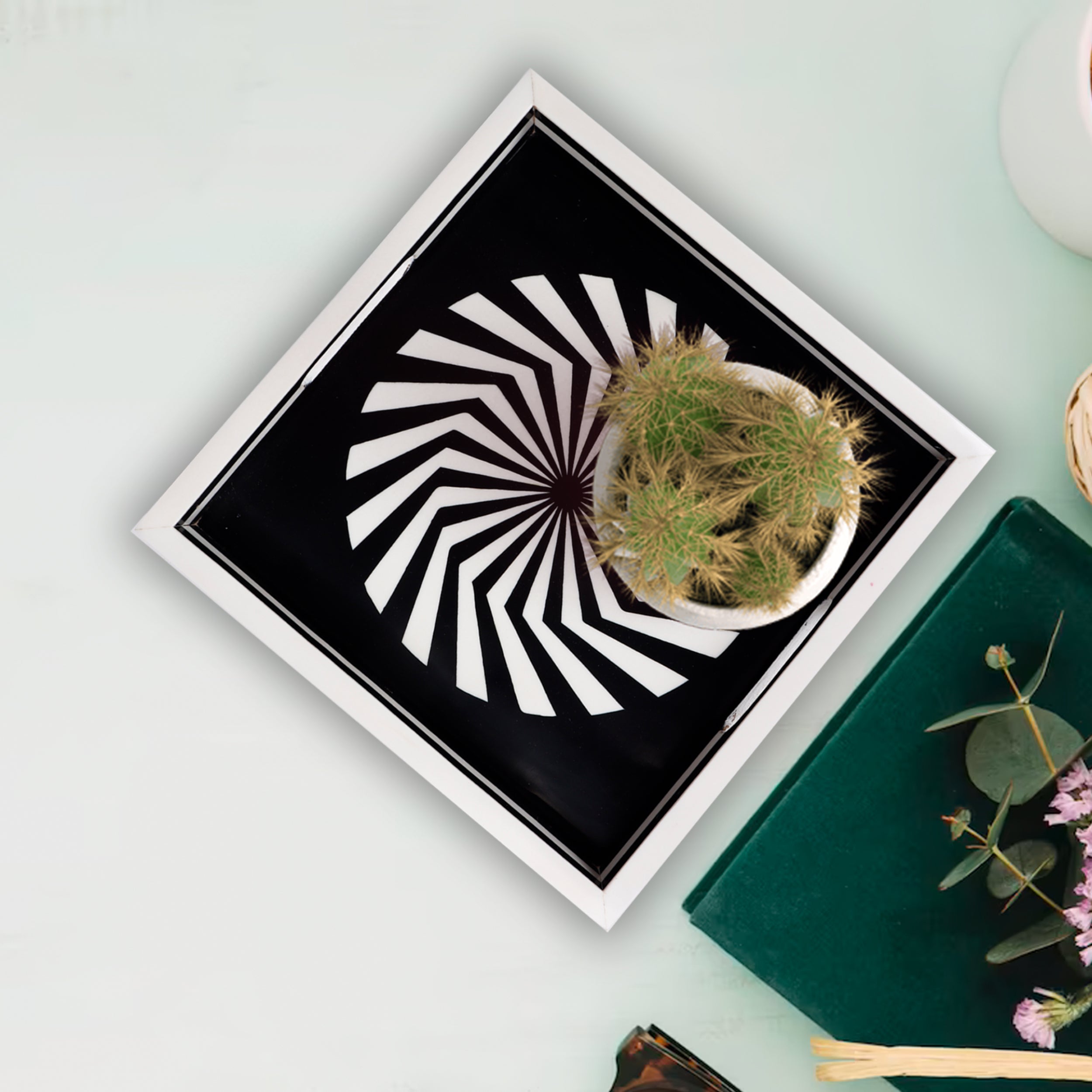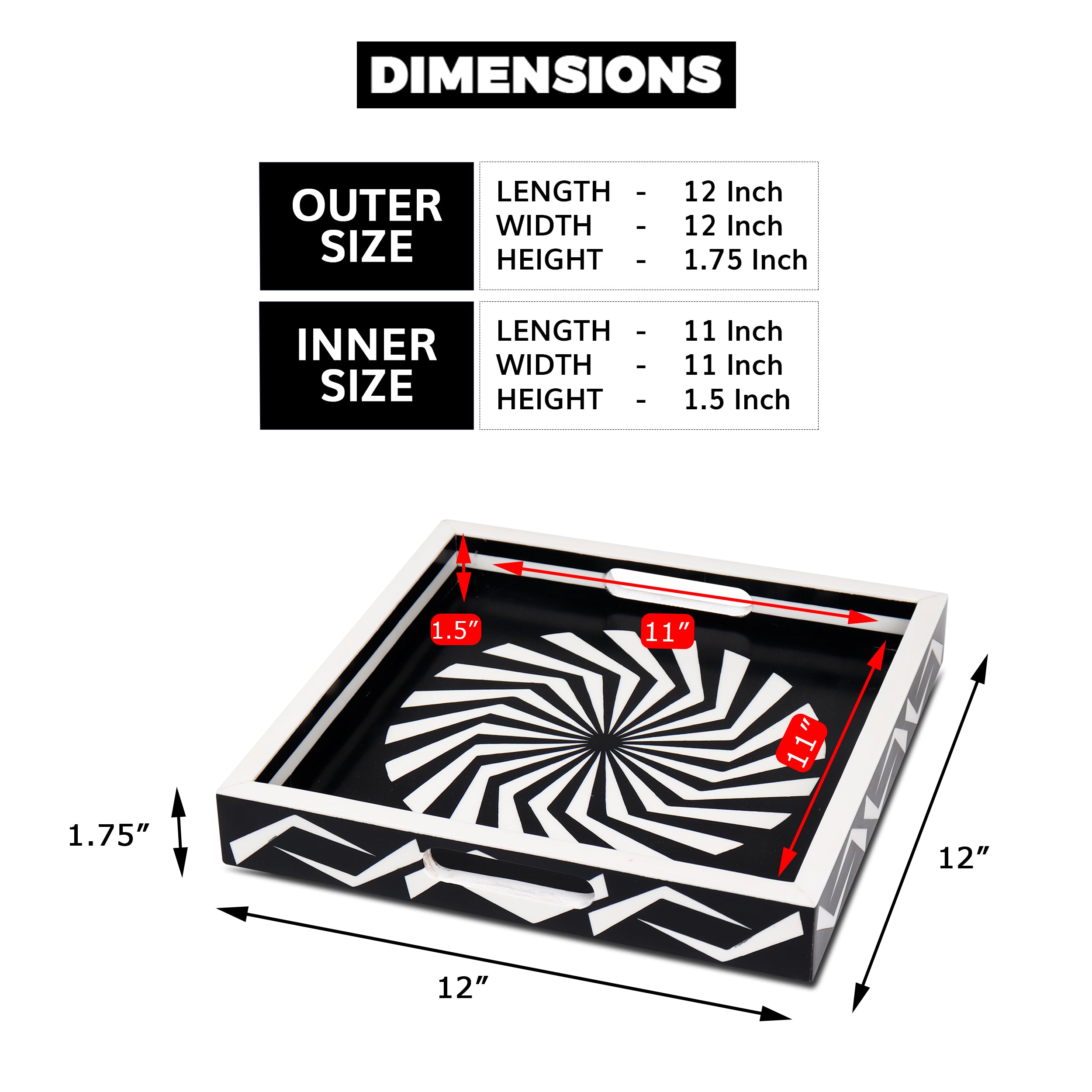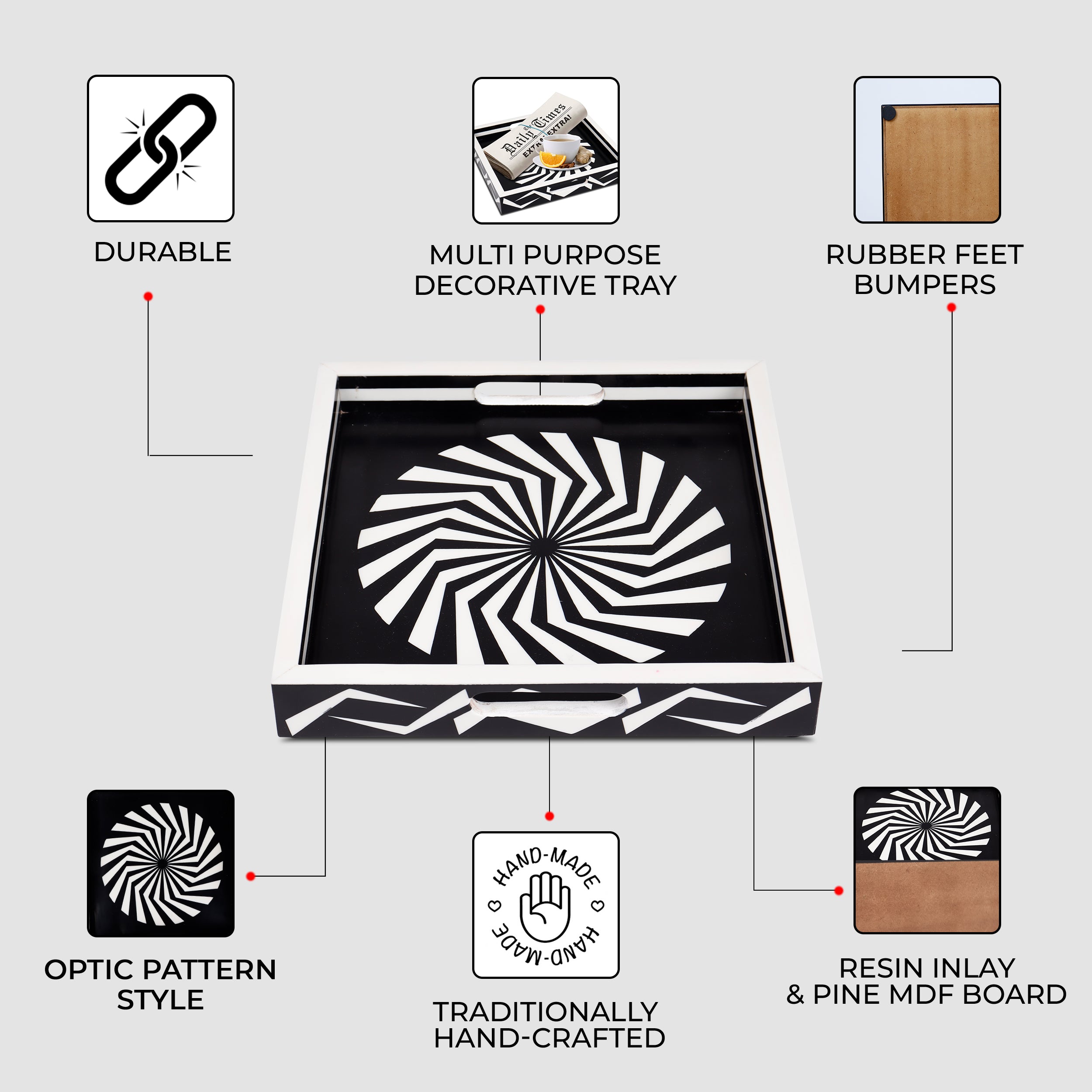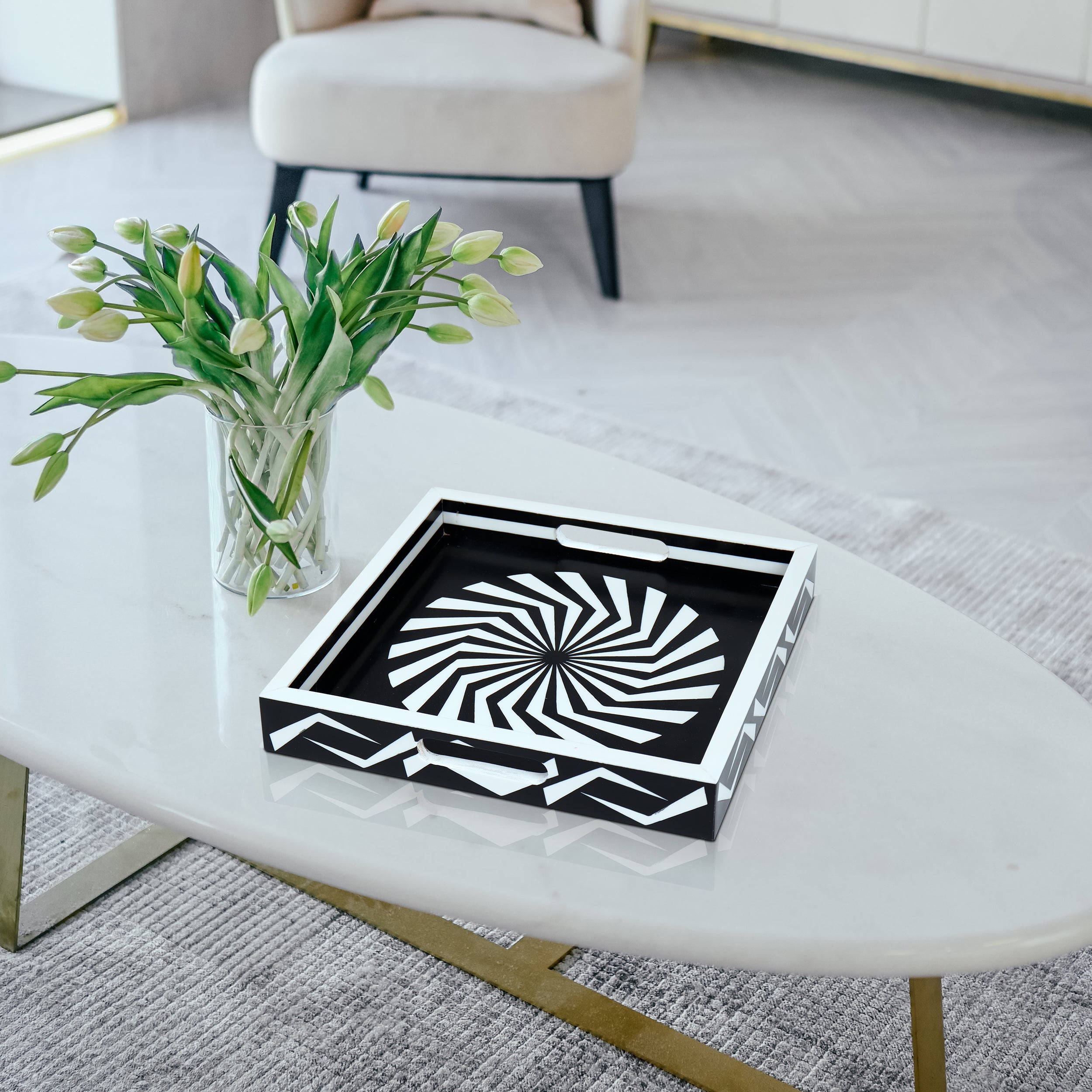 Decorative Tray Illusion Optic Black White Resin Inlay Modern Decorative Tray – 12x12 Inch