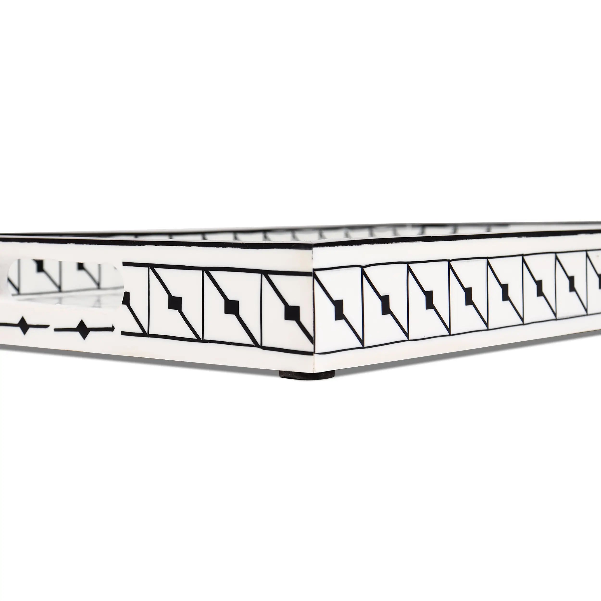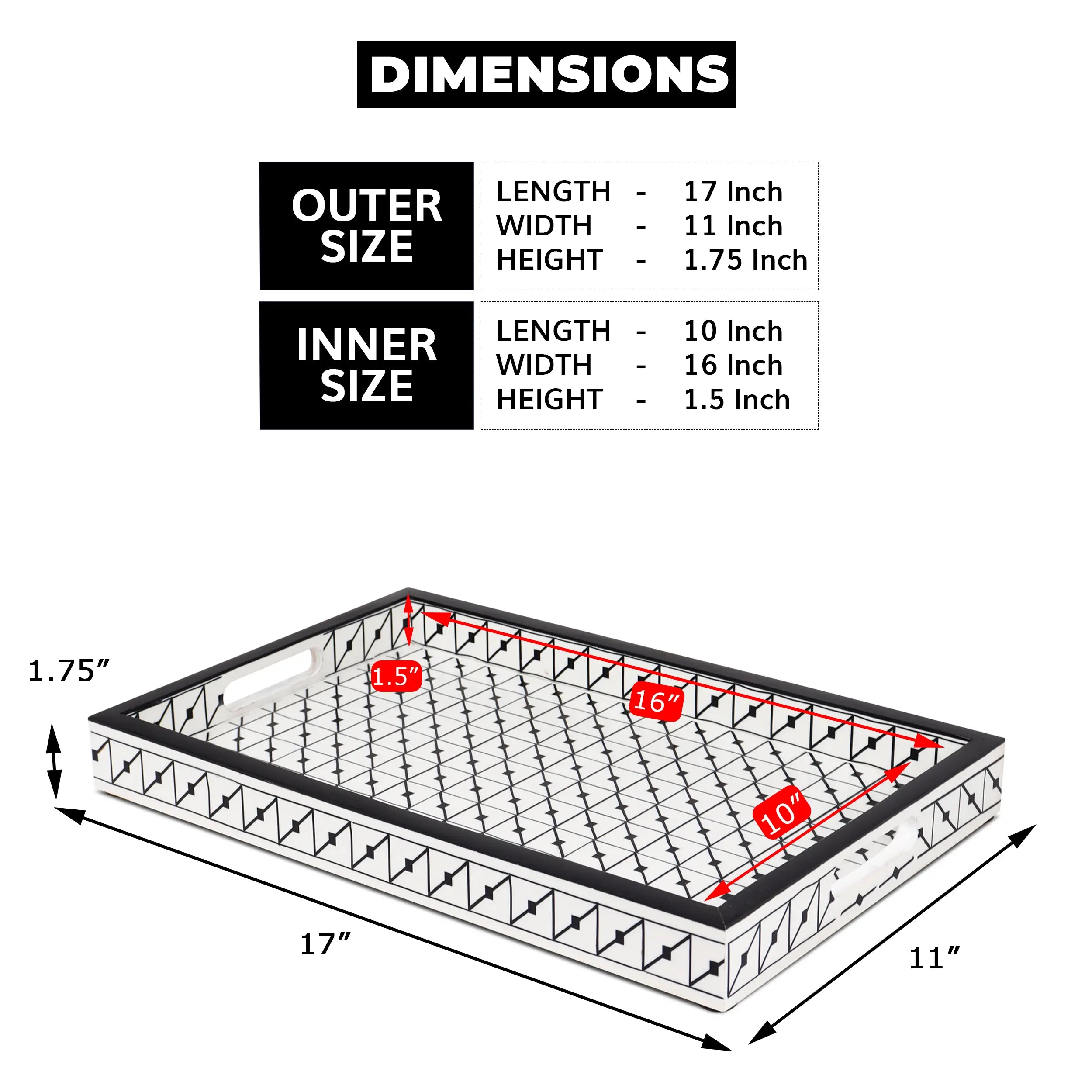 Decorative Tray Illusion Tiktak Pattern Bone & Resin Inlay Collection in 11x17, Black & White
