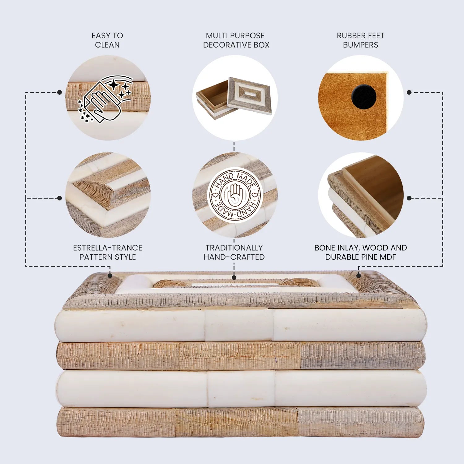 Artisan Quality – Each wooden box with lid is handmade by skilled Indian artisans with detailed bone inlay work and strong Pine MDF for durability. The natural materials and intricate patterns reflect authentic heritage craftsmanship with a modern decor twist, perfect as a wooden jewelry box or keepsake box.
