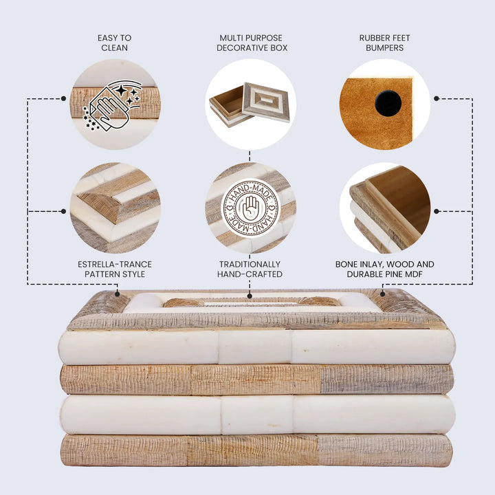 Transform your home with this artisan-crafted Drancy Ribbed pattern Bone Inlay & Wood Storage Box — a unique decorative storage solution blending modern elegance with traditional craftsmanship.