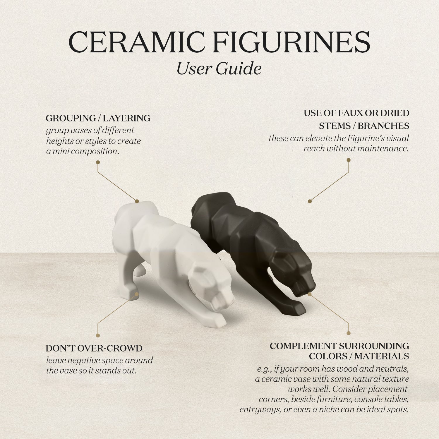 Figurines Ceramic Panthers Black & white – Modern Decorative Showpieces, Pack of 2