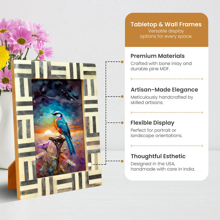 Grey & White Bone Inlay Brick Pattern Frame 4x6 & 5x7