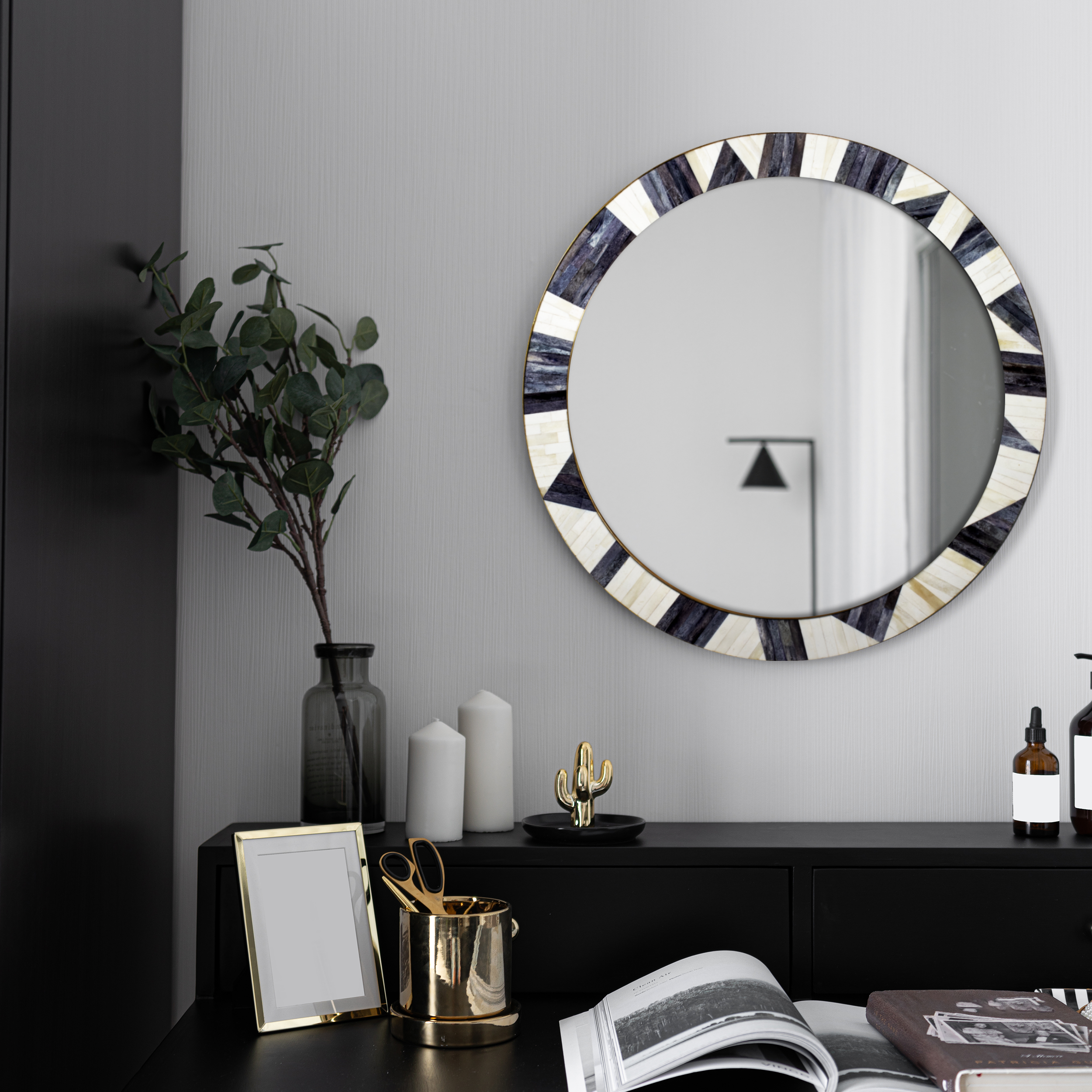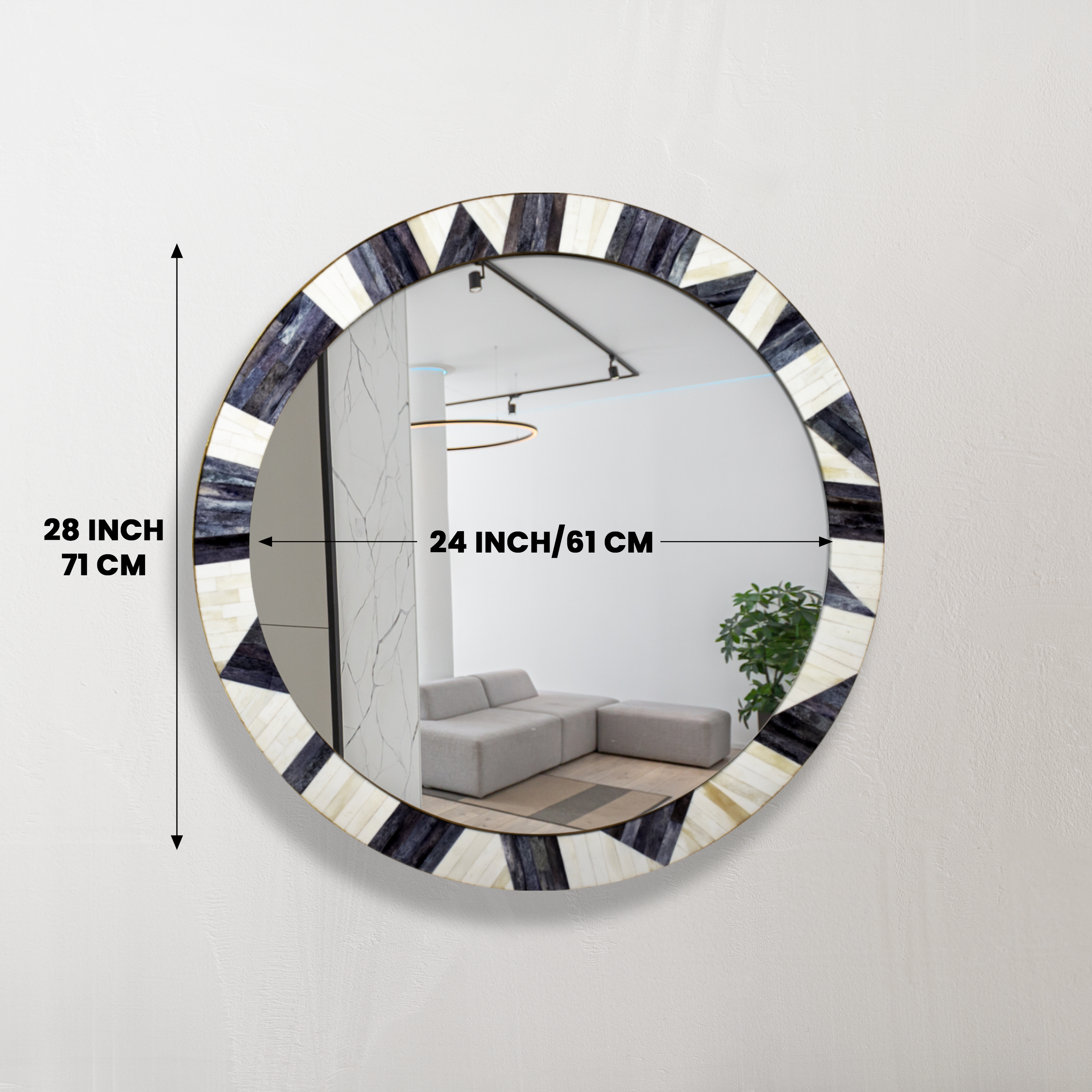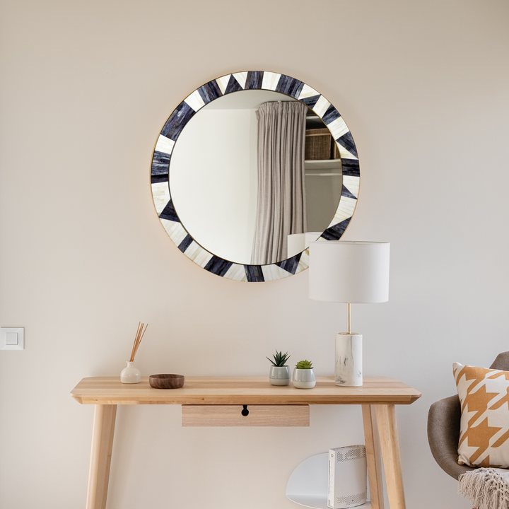 Bone Inlay Chaucer-Duchess Round Wall Mirror, 28" Collection, Charcoal Grey