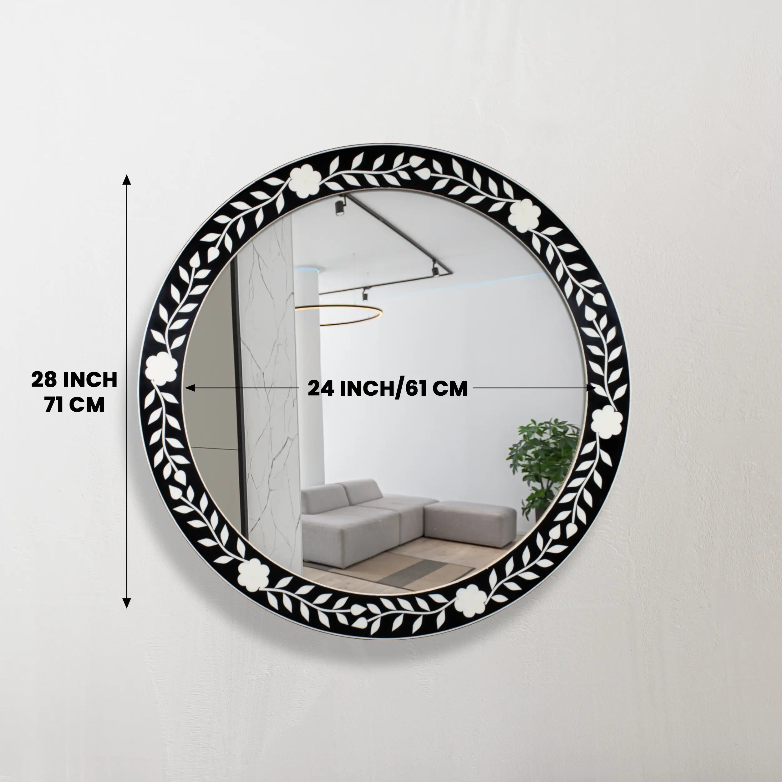 Bone Inlay Chaucer-Queen Round Wall Mirror, 28" Collection, Black and White