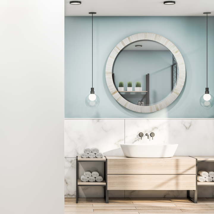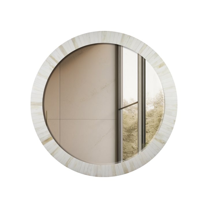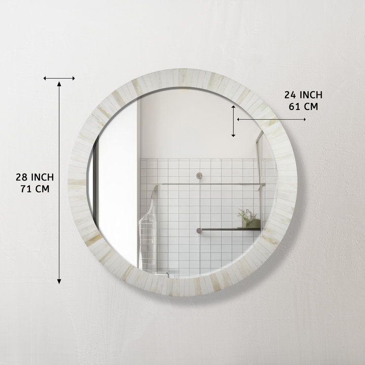 Bone Inlay Chaucer-Dame Round Wall Mirror, 28" Collection, White