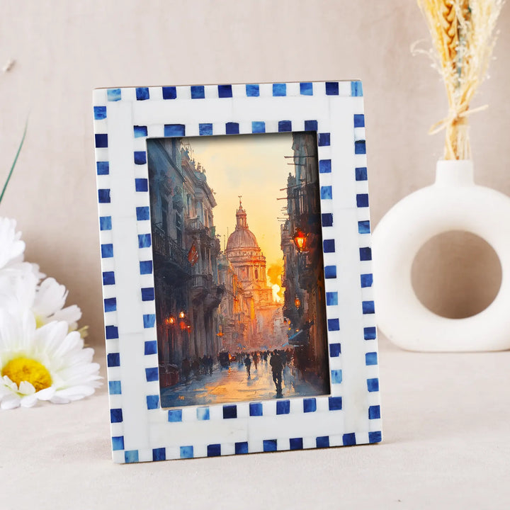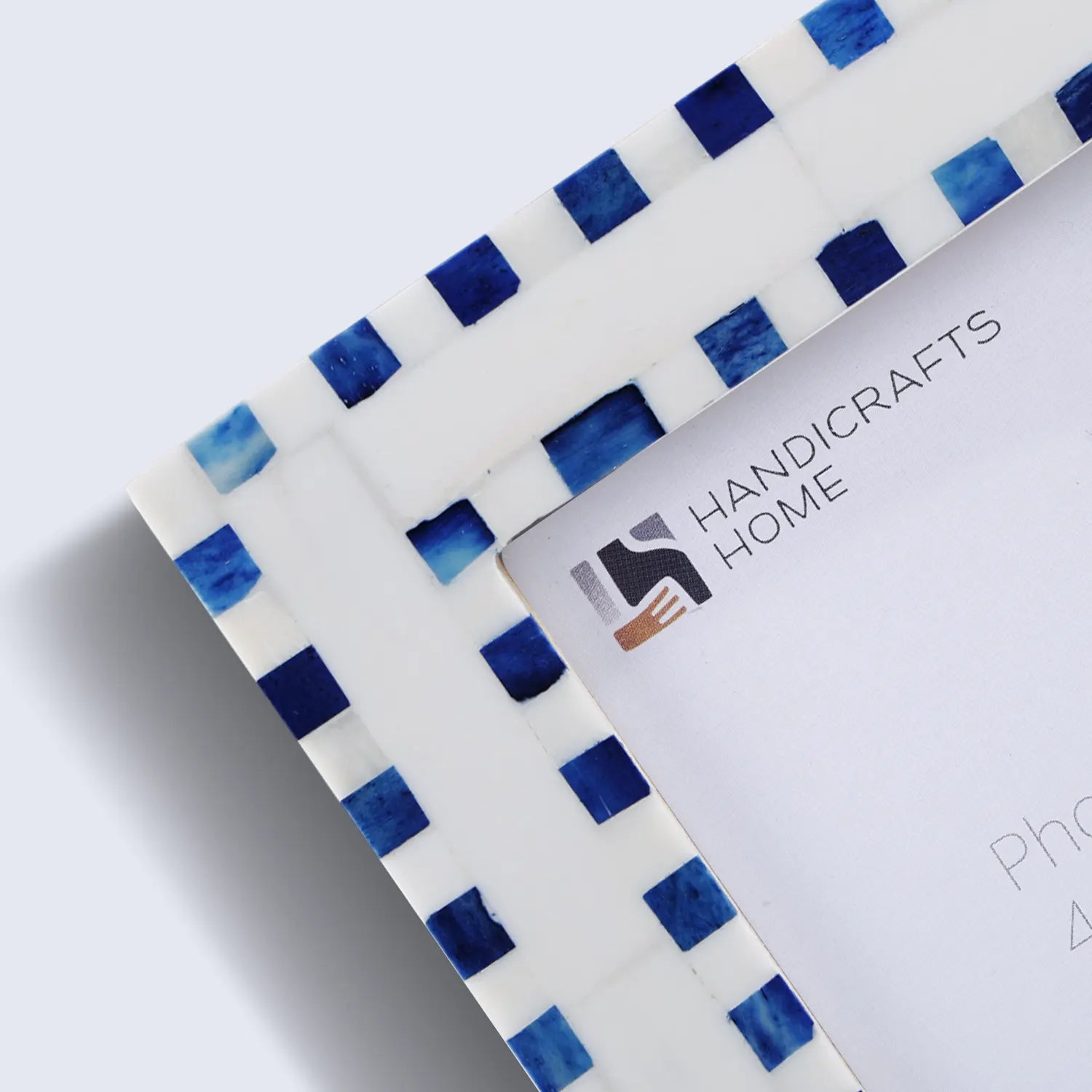 Handmade Bone Inlay Blue Picture Frame - Checkered Pattern in 4x6 & 5x7