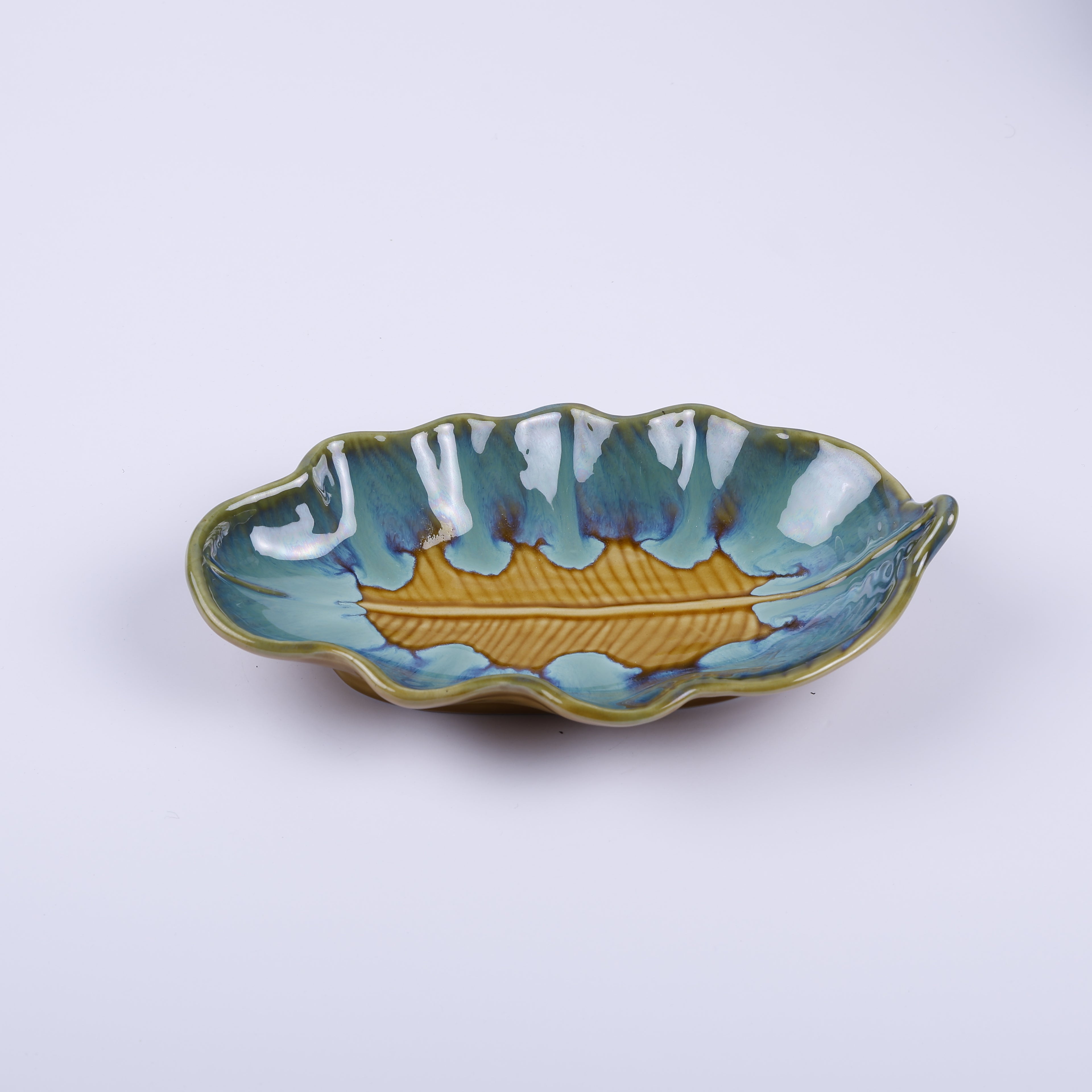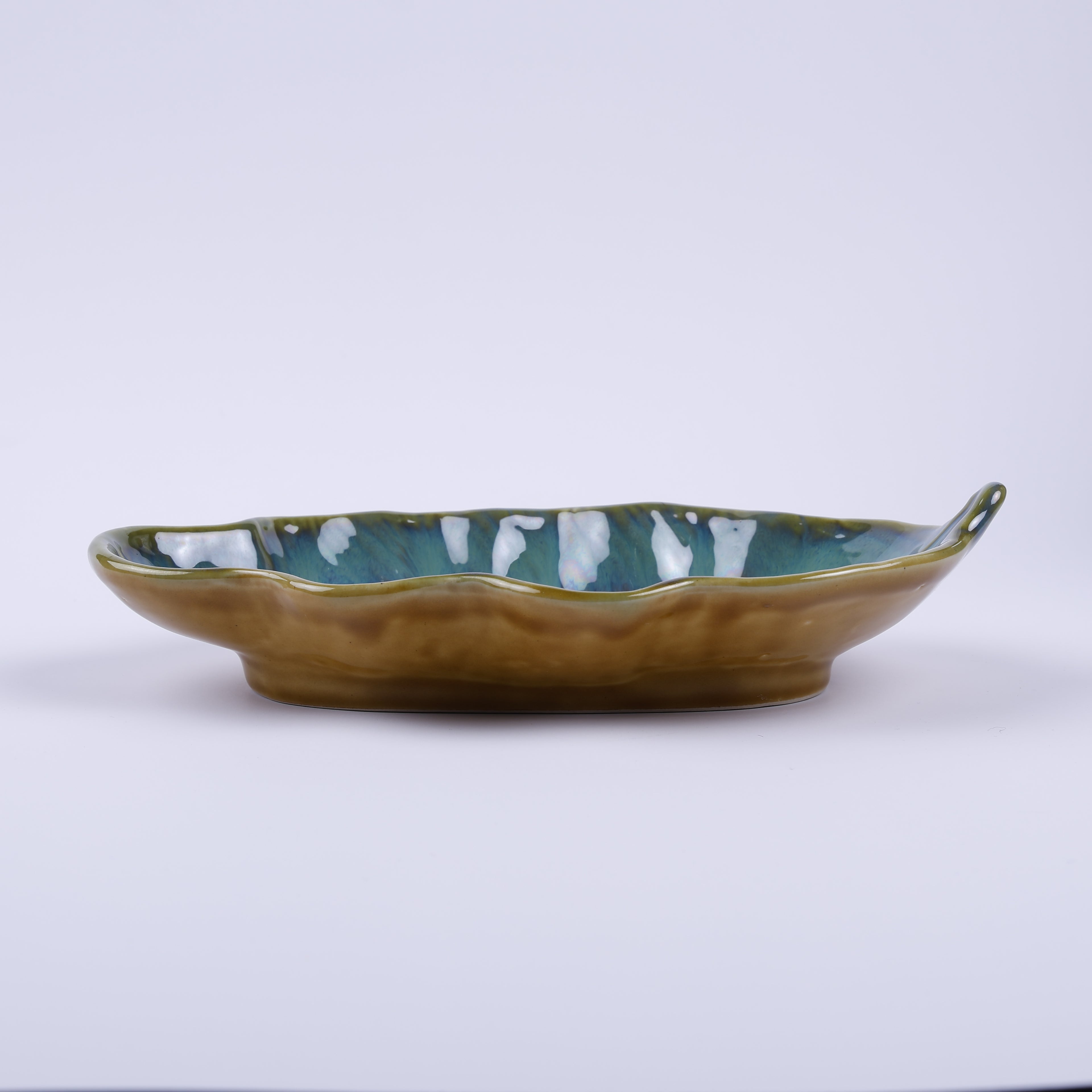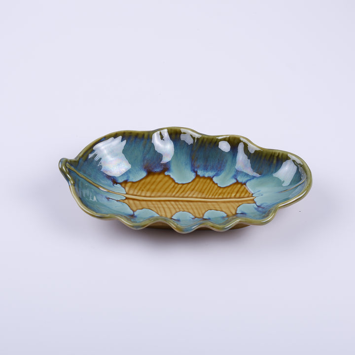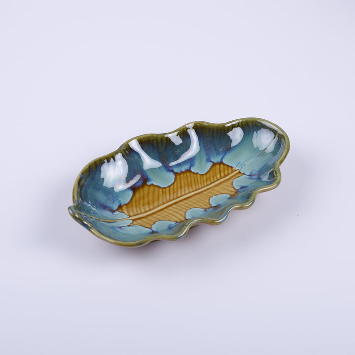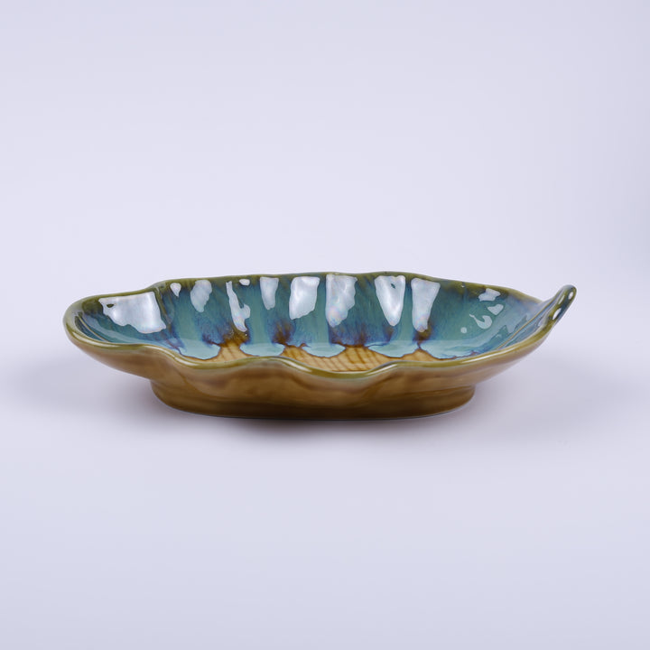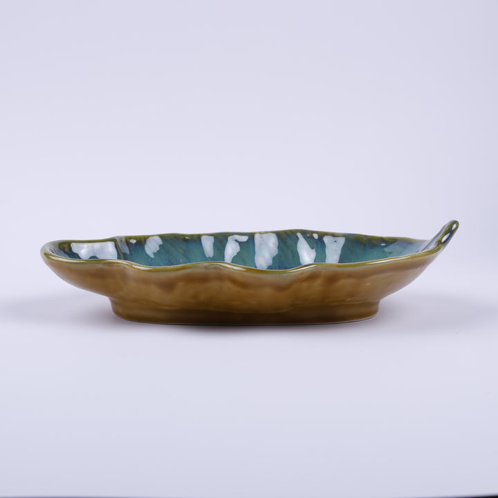 Handmade Decorative Ceramic Platter For Serving & Decor - GREEN-LEAF