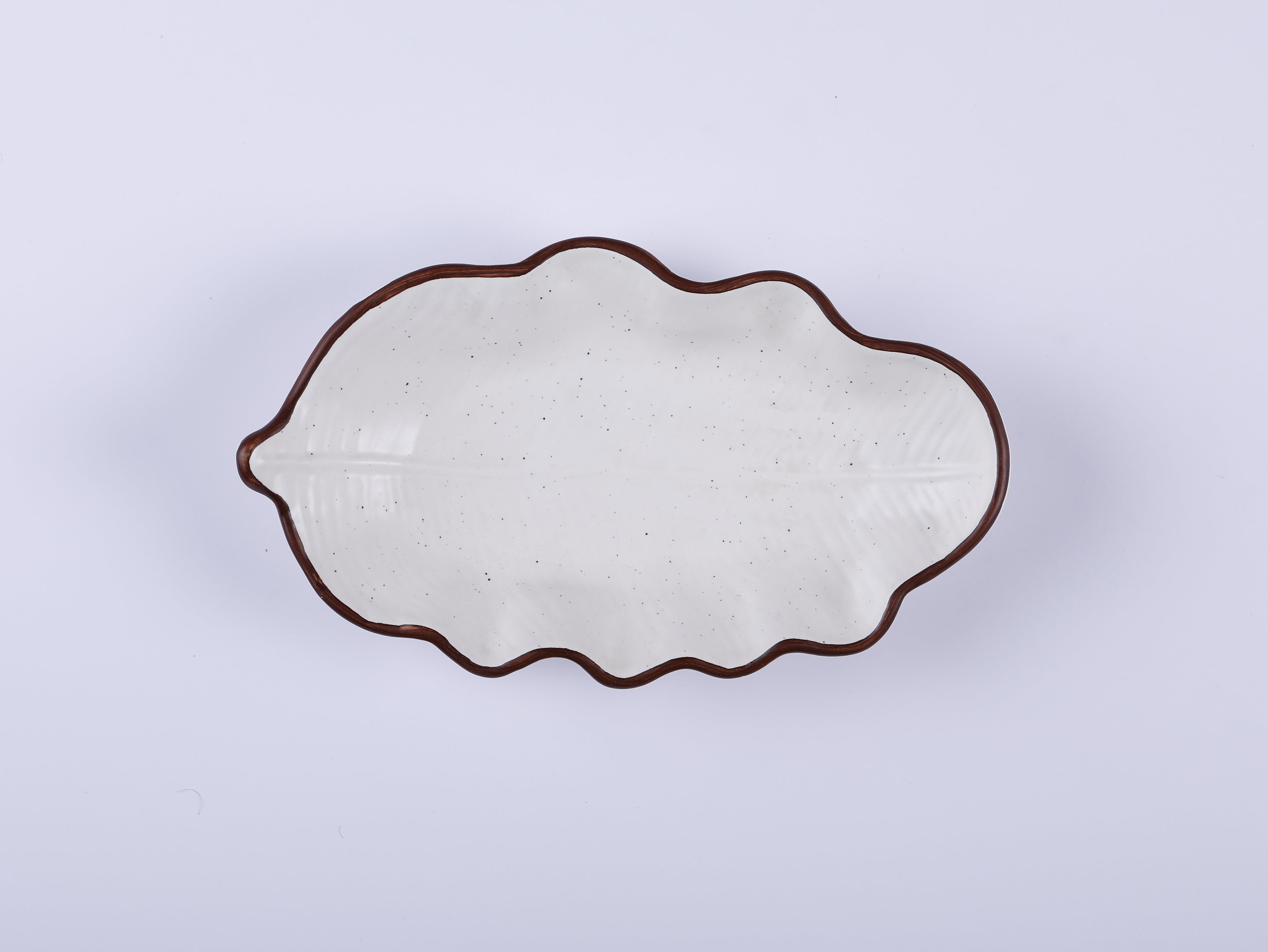 Handmade Decorative Ceramic Platter For Serving & Decor-CHARM-LEAF