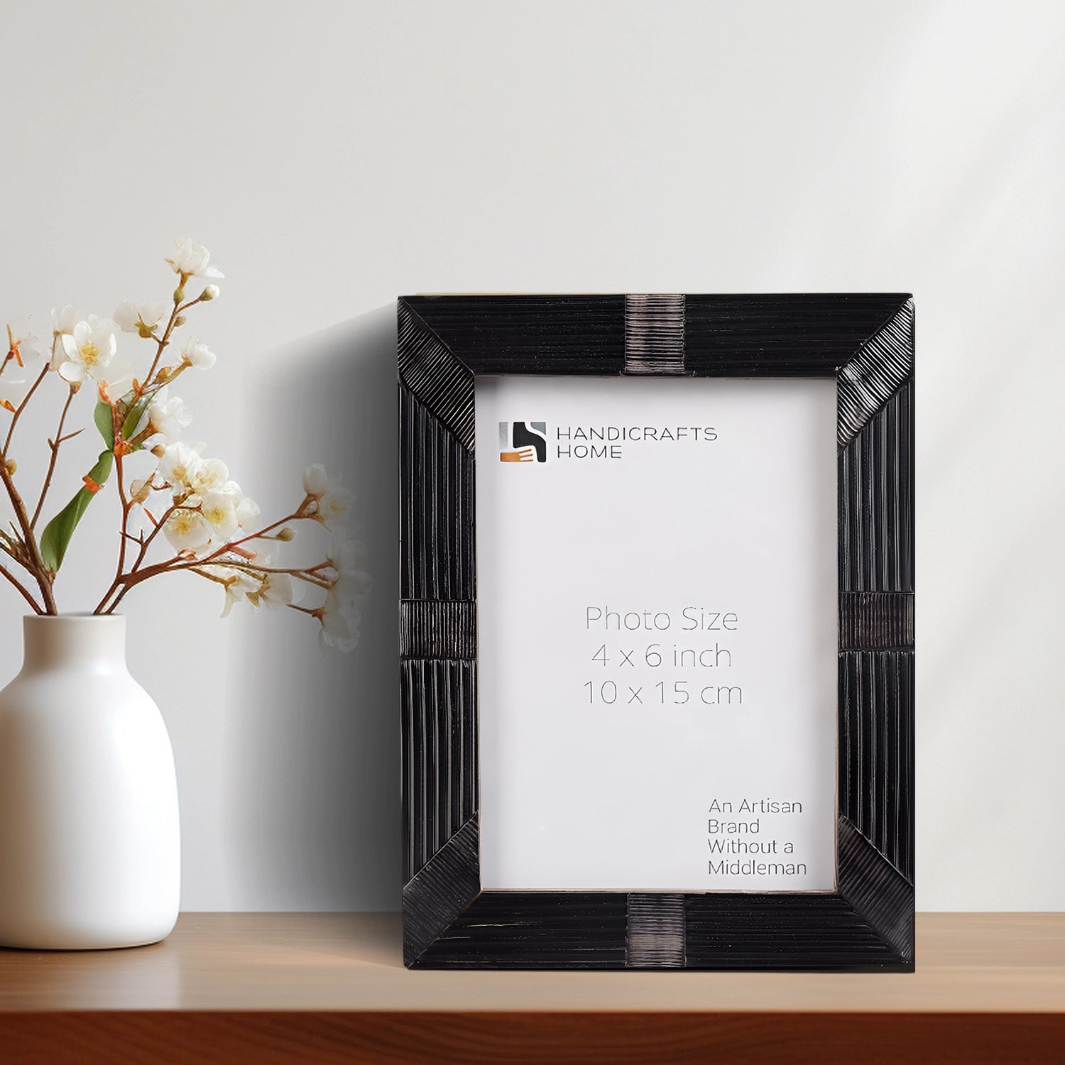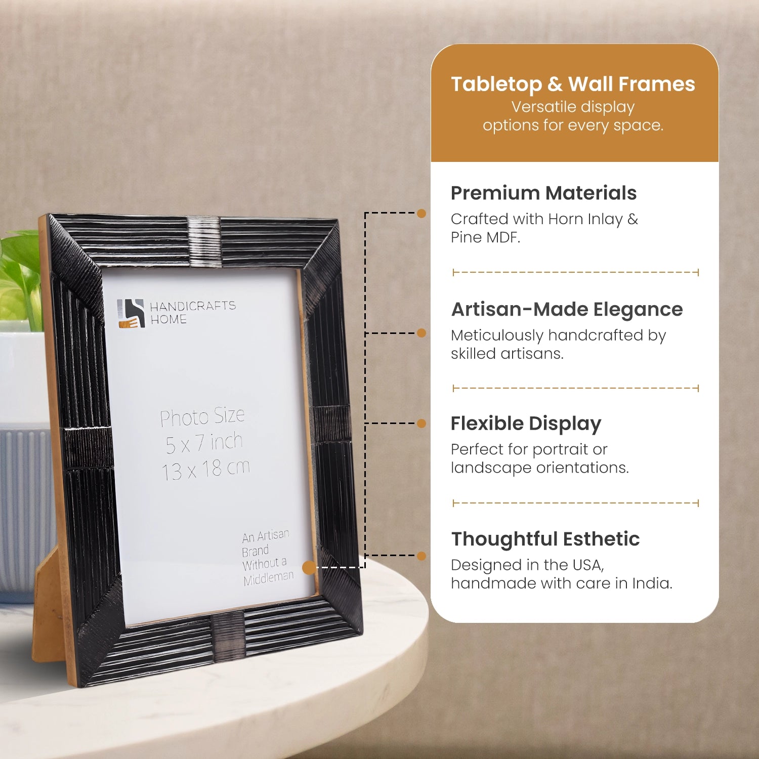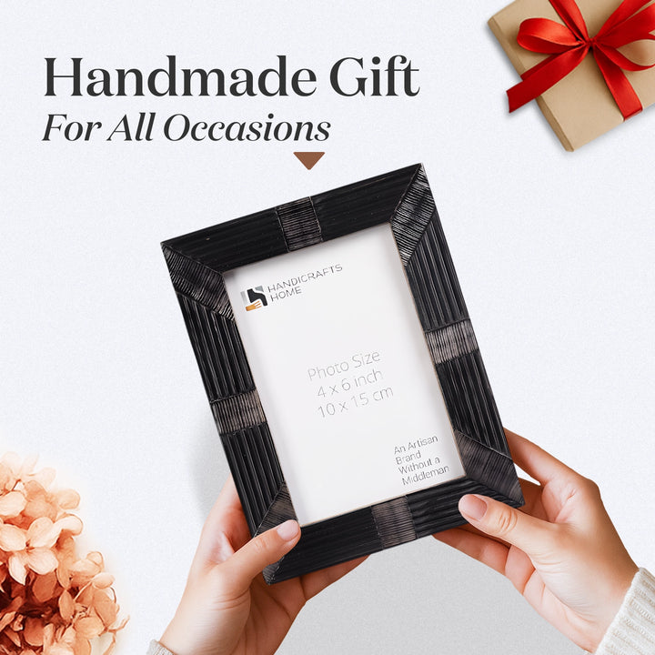 Horn Inlay Shagrin Picture Photo Frames Black, 4x6 5x7