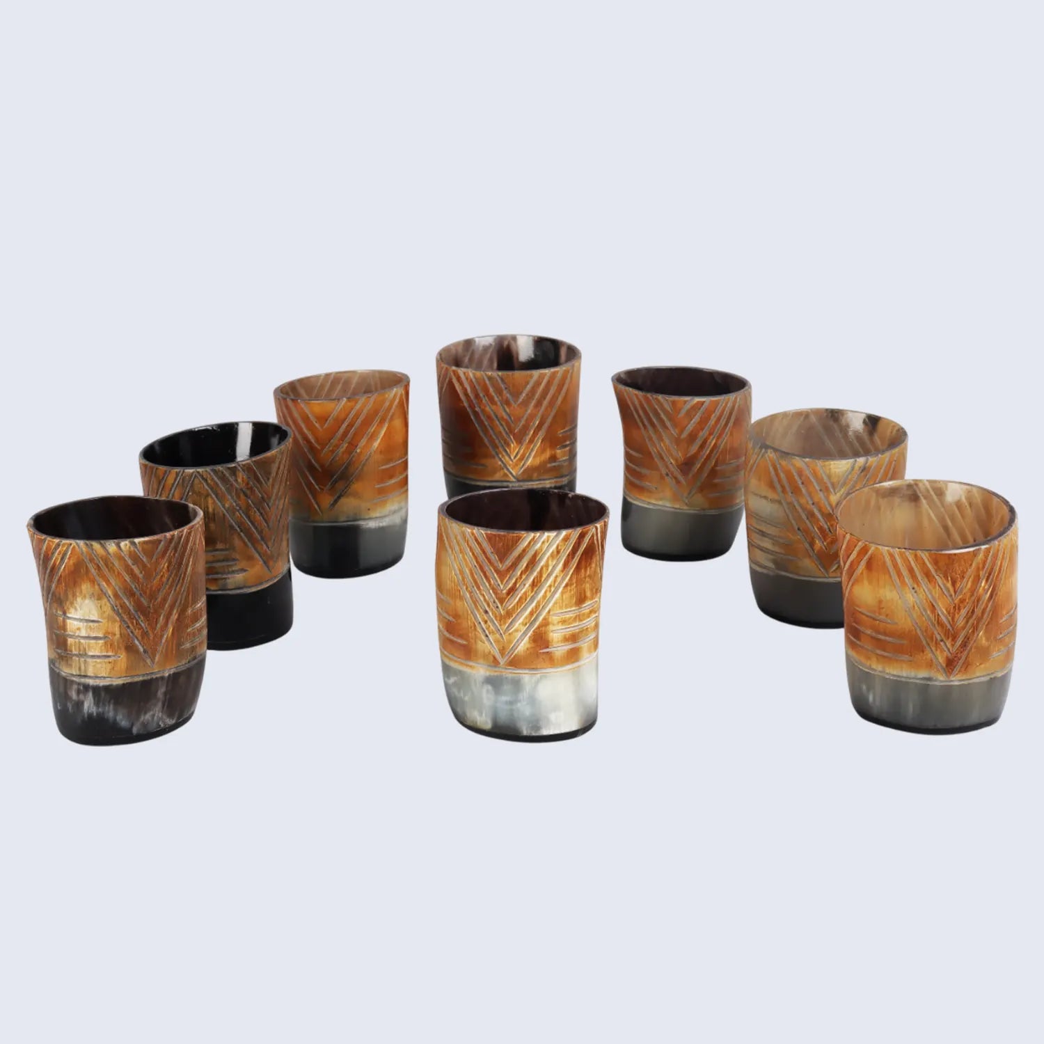 Introducing Our Tribal Chevron Collection – Handmade Real Horn Shot Glasses in Chevron Patterns!