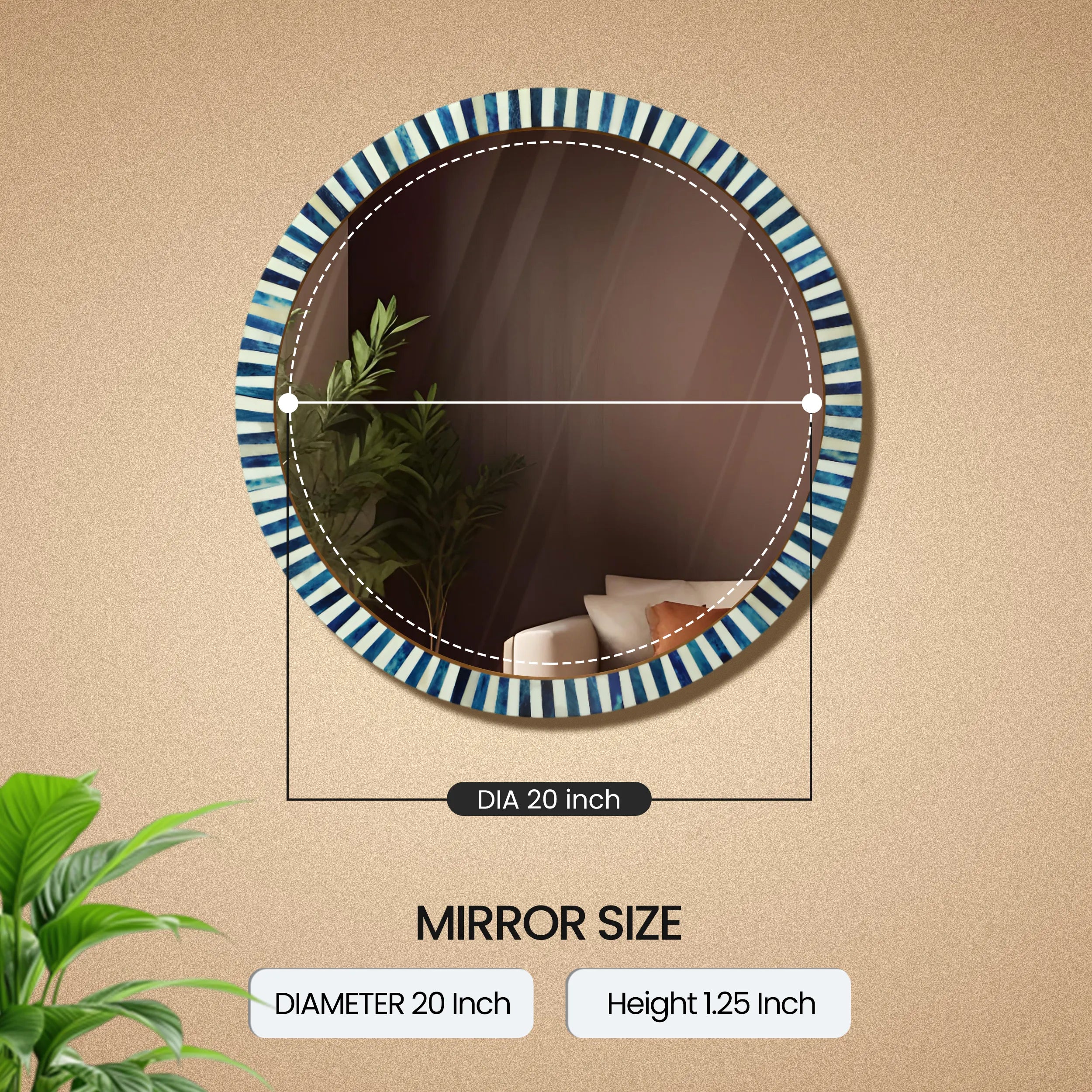 Exquisitely handcrafted with a luxurious blend of bone inlay. Designed by skilled artisans, this stunning mirror features a soft Blue & White palette that instantly adds warmth and sophistication to any room.