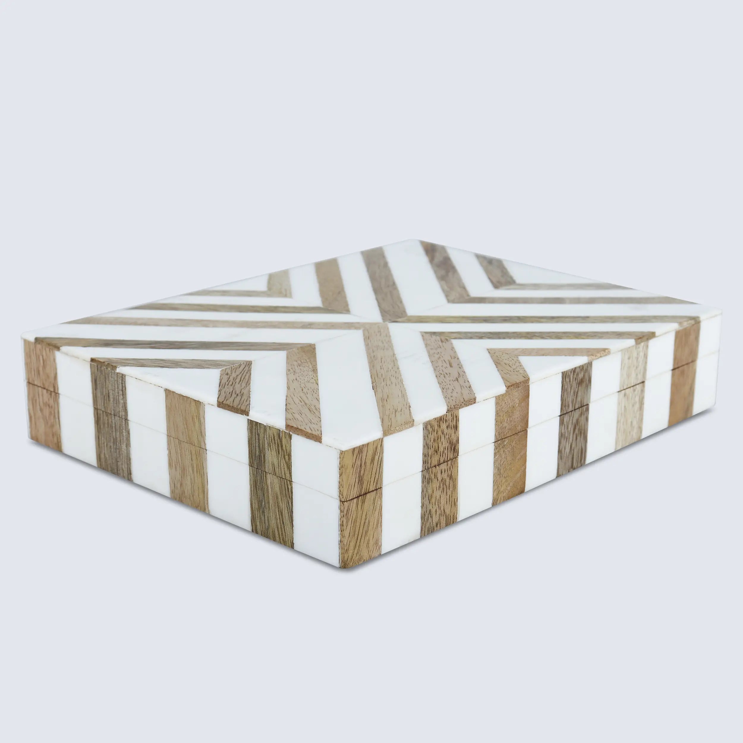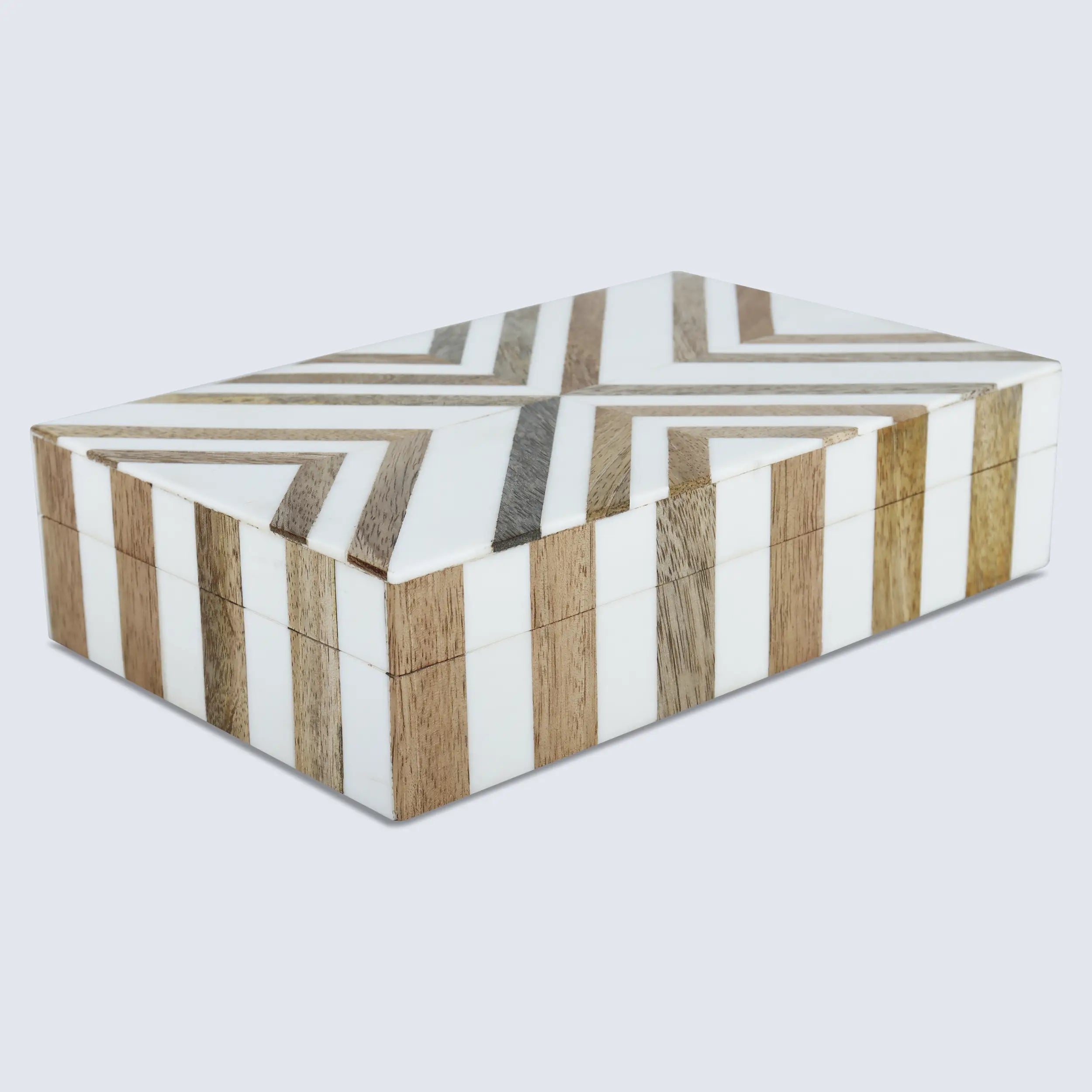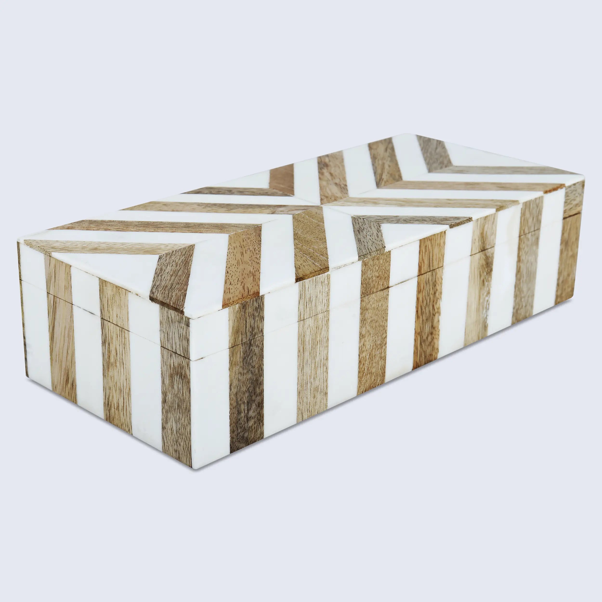 Marquet Chevron Resin & Wood Inlay Decorative Storage Box - 8 Sizes