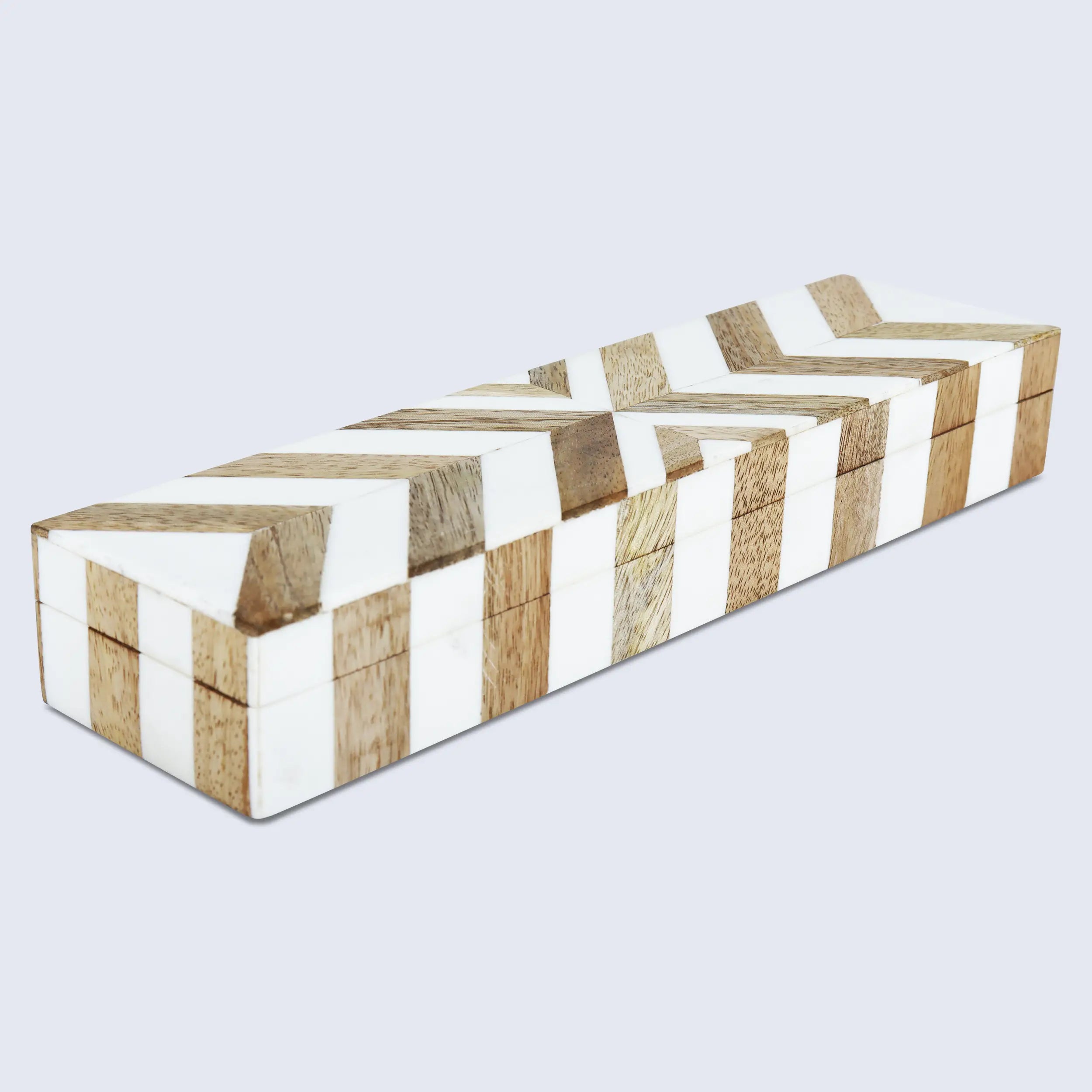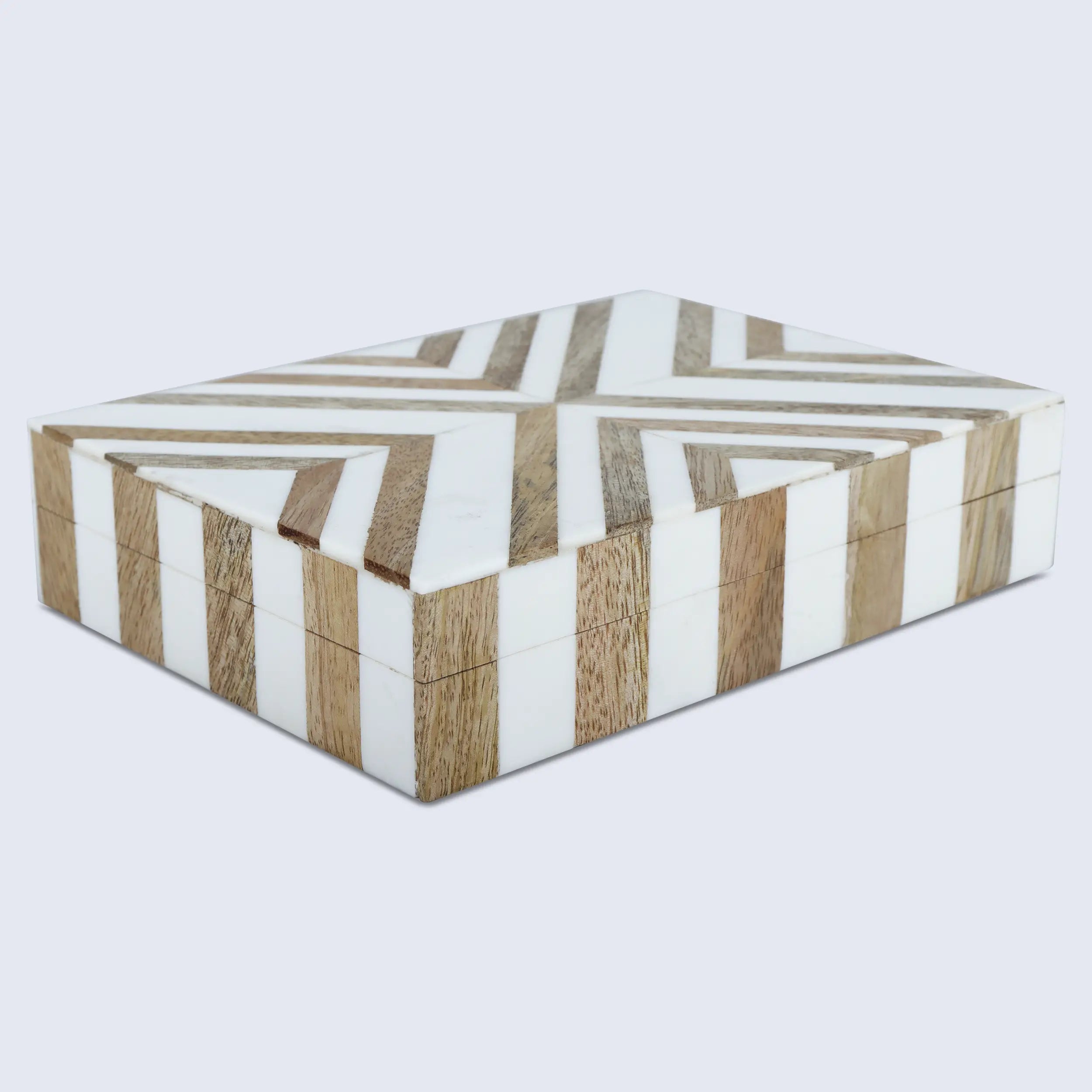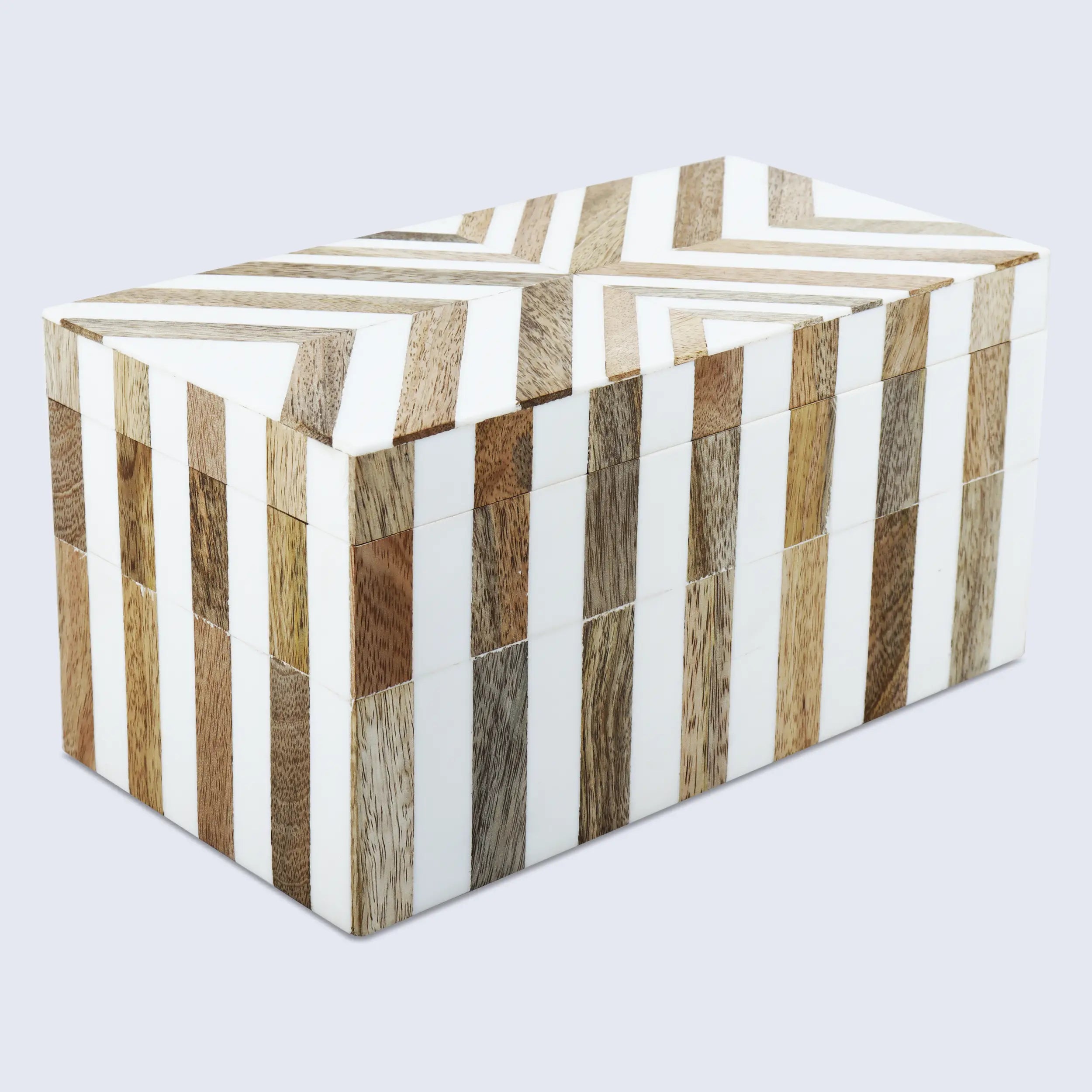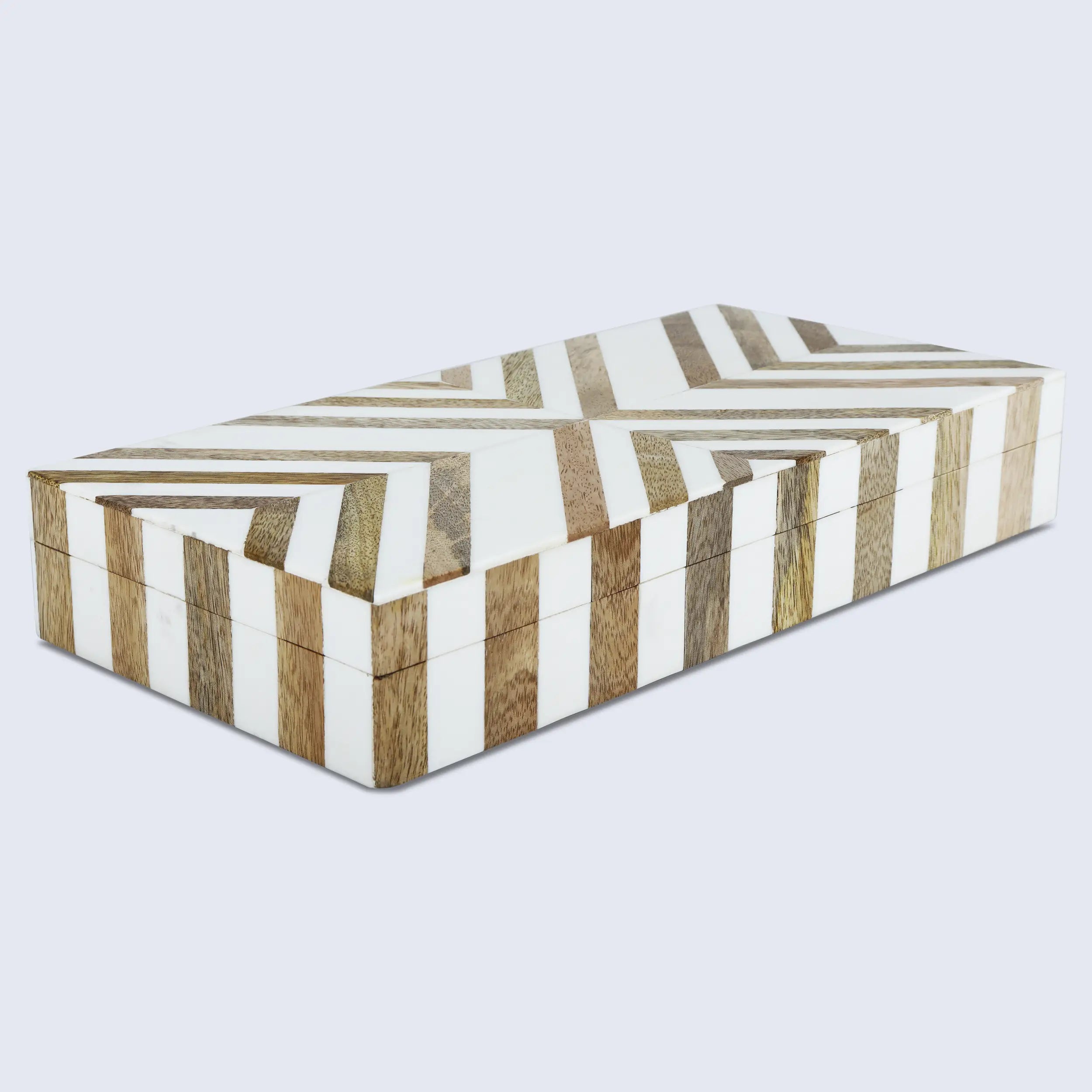 Marquet Chevron Resin & Wood Inlay Decorative Storage Box - 8 Sizes