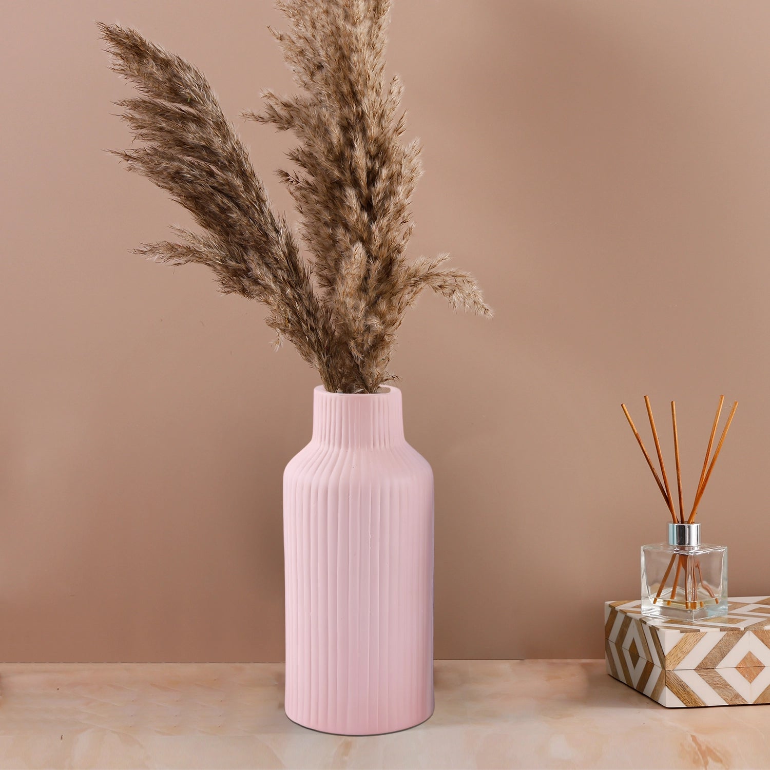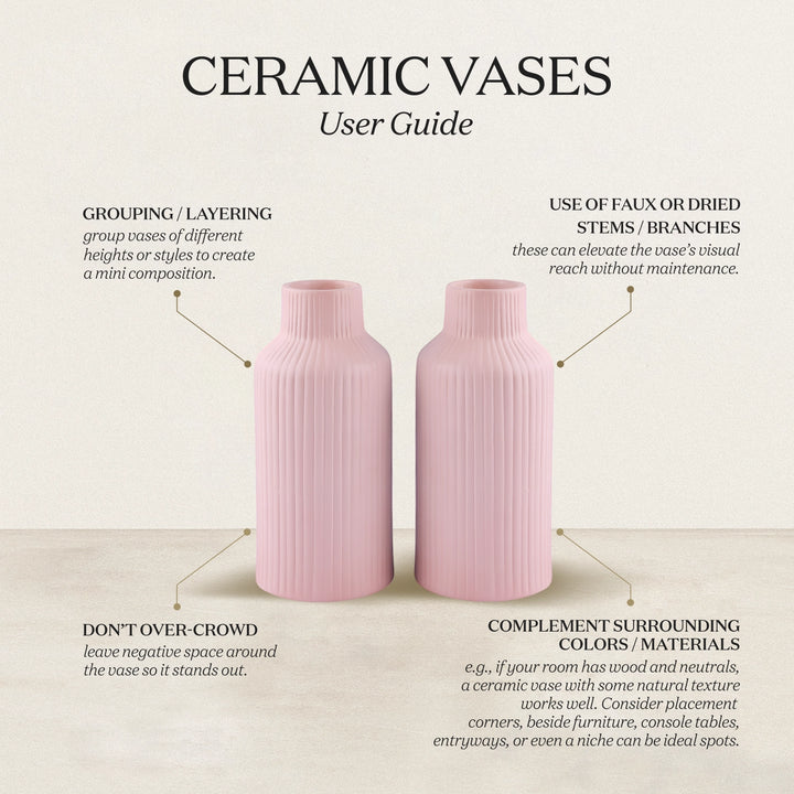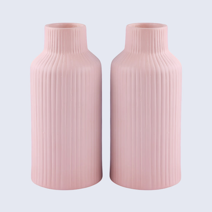 Ceramic Vase Stripped Handmade Pink Flower Vases Set Of 2