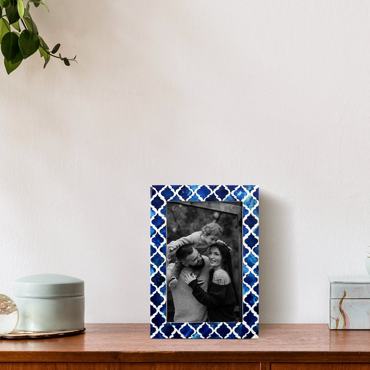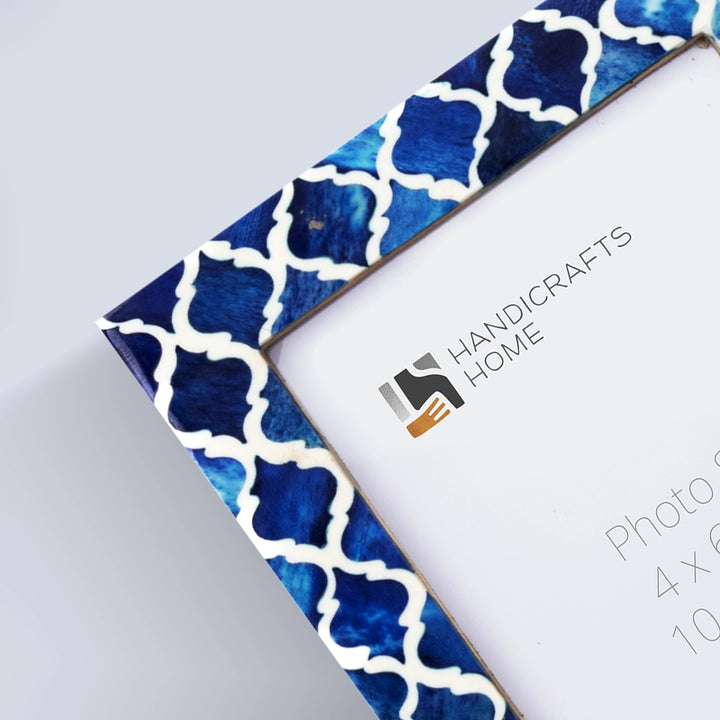 Picture Frames Moroccan Pattern Bone & Resin Inlay Collection in 27 Sizes, Blue