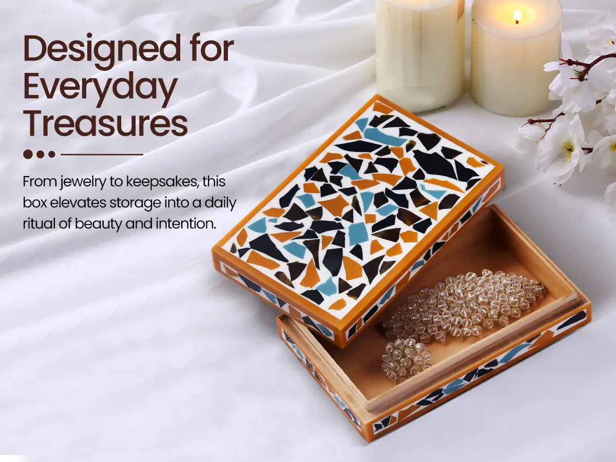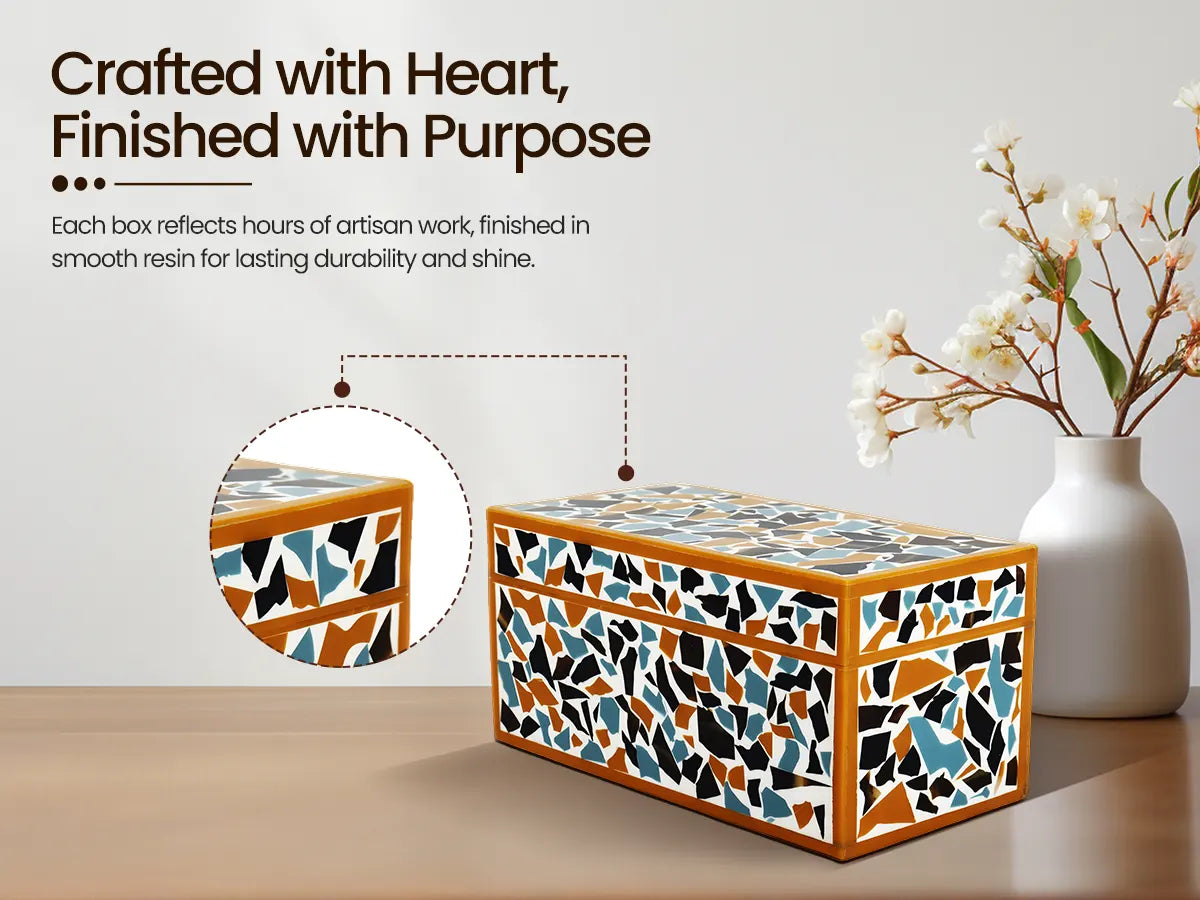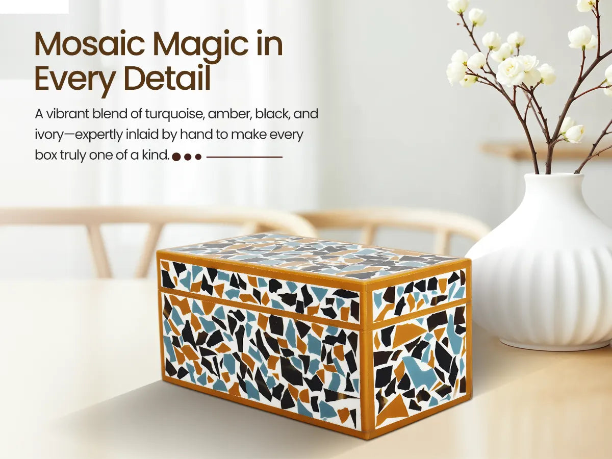 Mosaic gold pattern Resin Inlay decorative boxes in 7 Sizes
