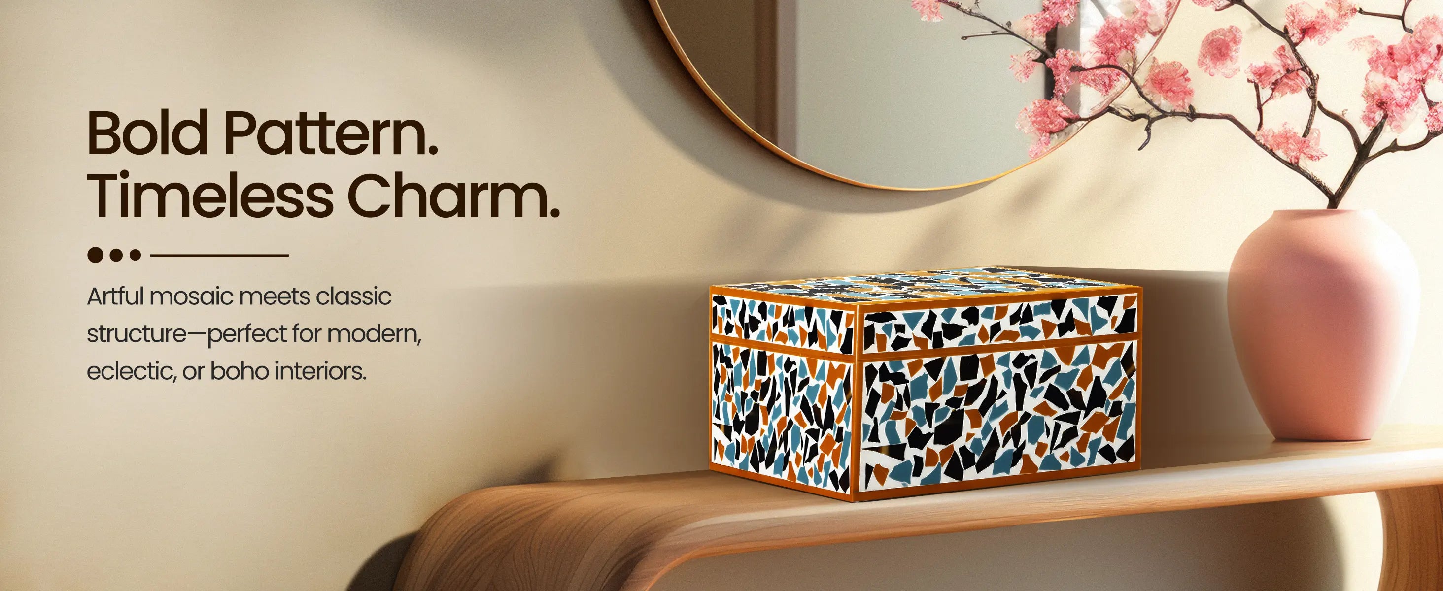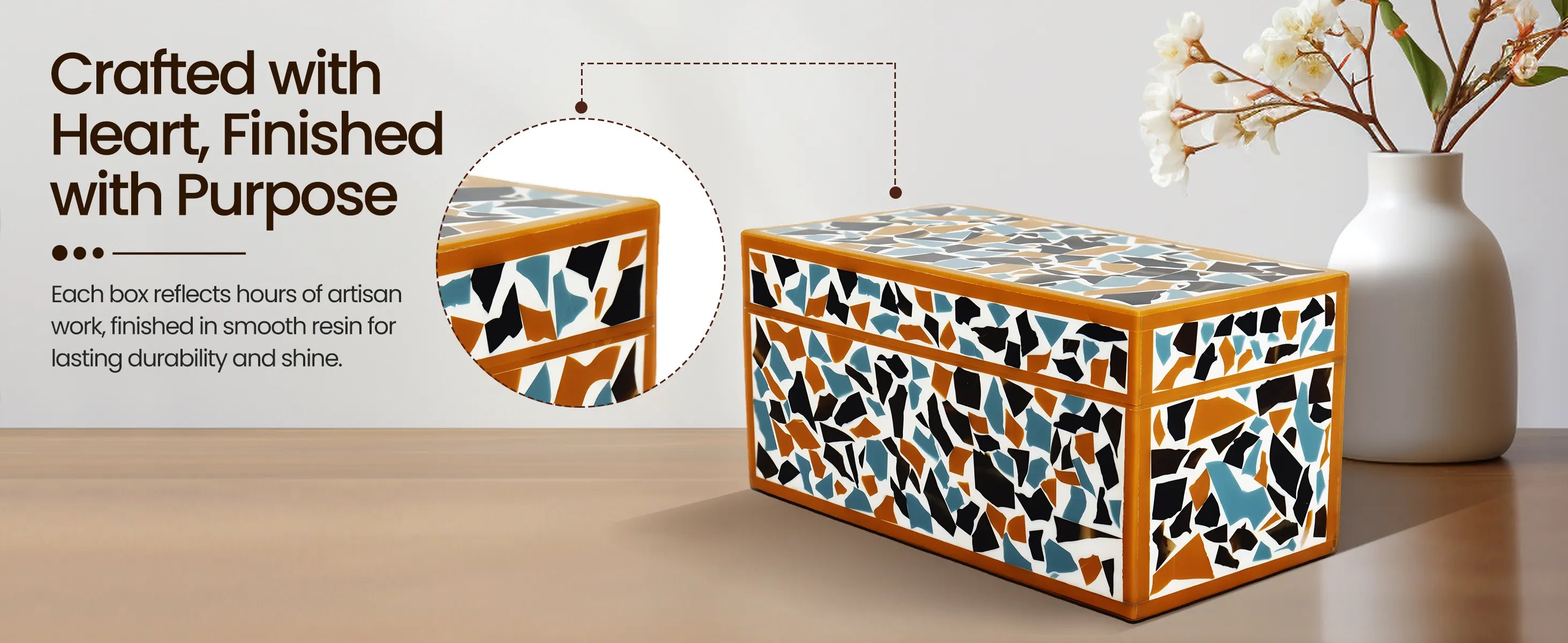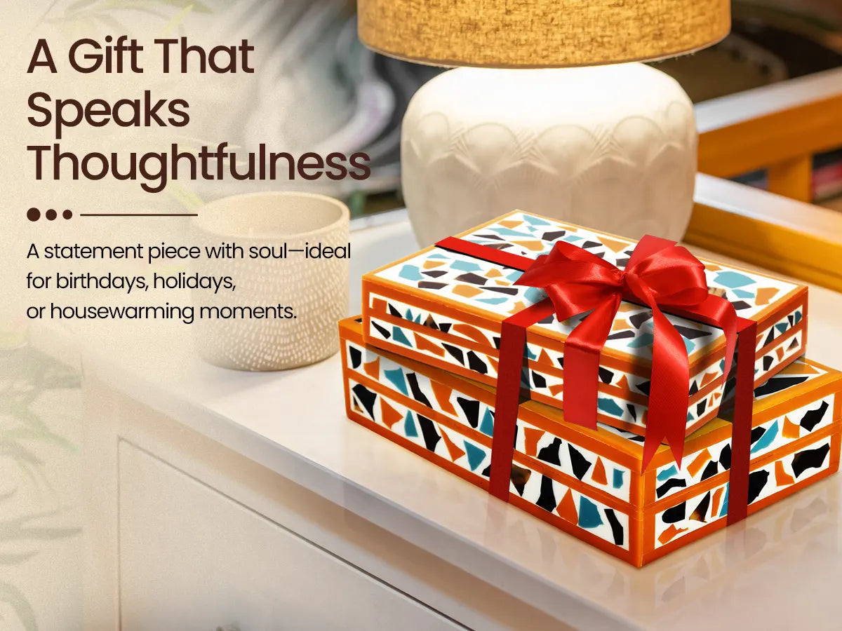 Mosaic gold pattern Resin Inlay decorative boxes in 7 Sizes