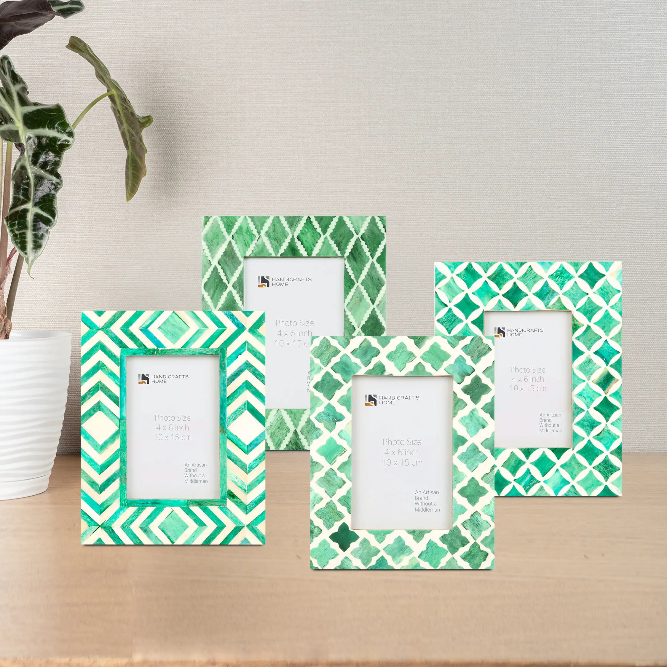 Mosaic Green 4x6 Picture Frame Set - Combo Pack of 4