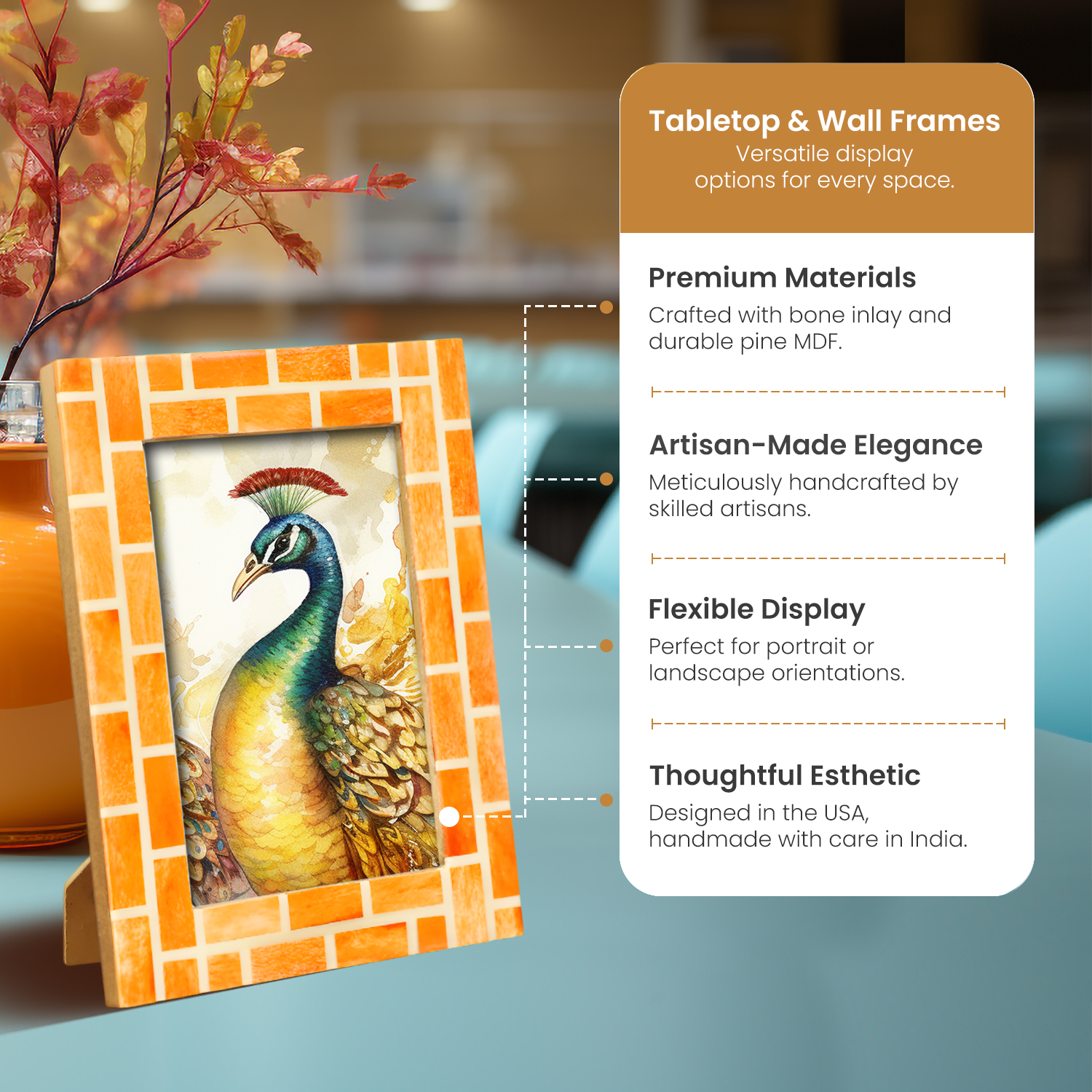 Mosaic Tile Orange Bone & Resin Inlay Picture Frame