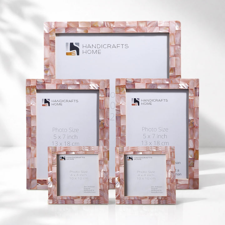 Mother of Pearl Inlay Picture Frame Set, Pink (5-Pieces)