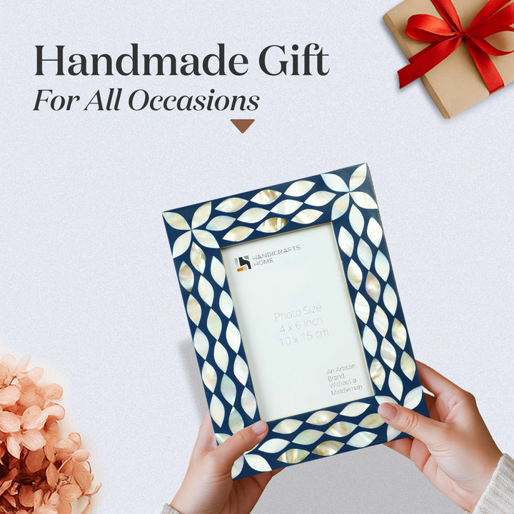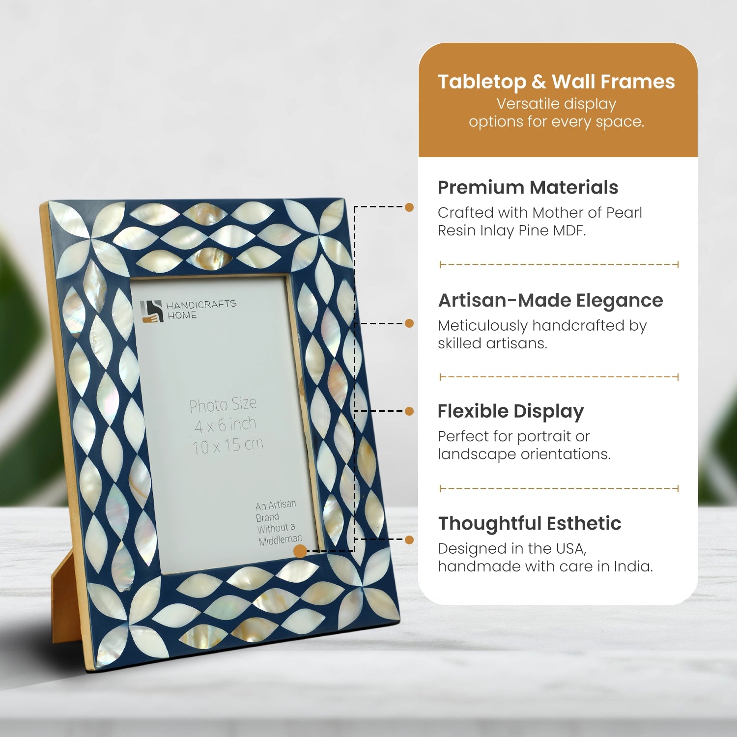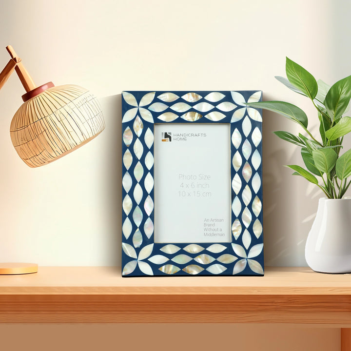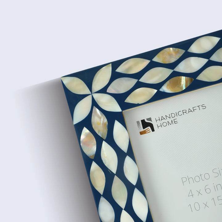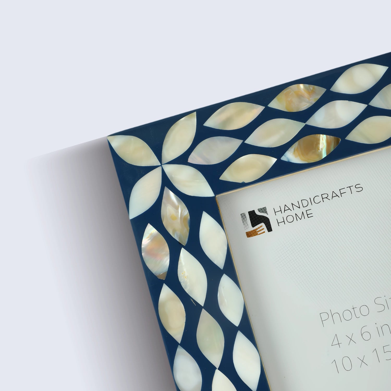Mother of Pearl & Resin Inlay Avant Floral Picture Frame - Blue & White