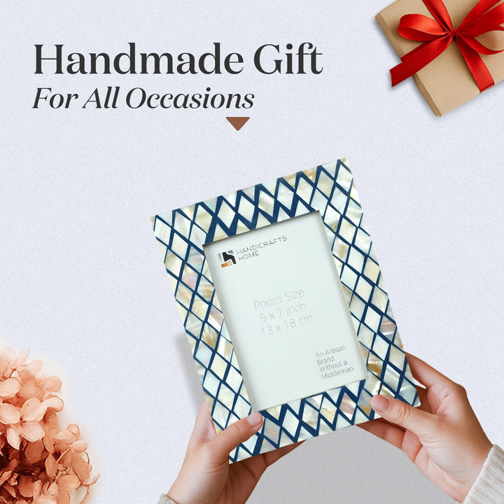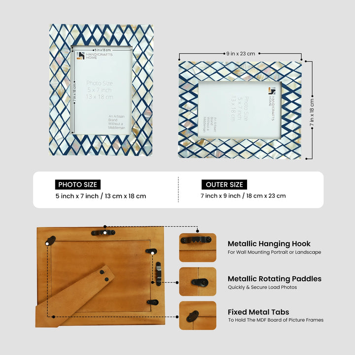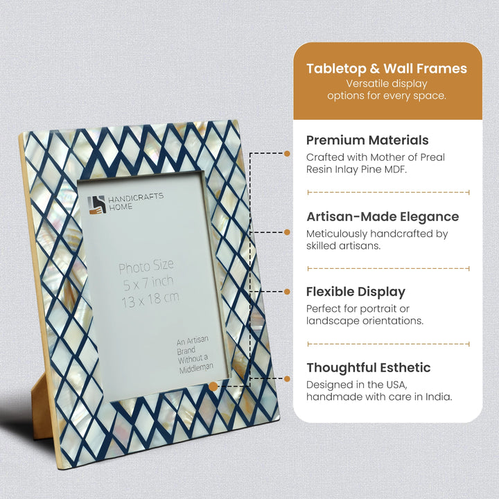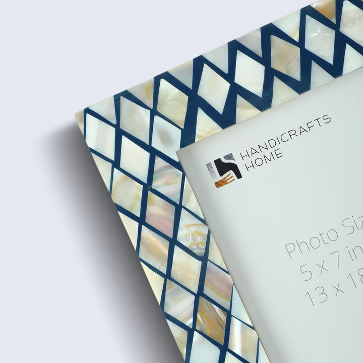 Navy & Pearl Mother of Pearl Diamond Photo Frame - 5x7