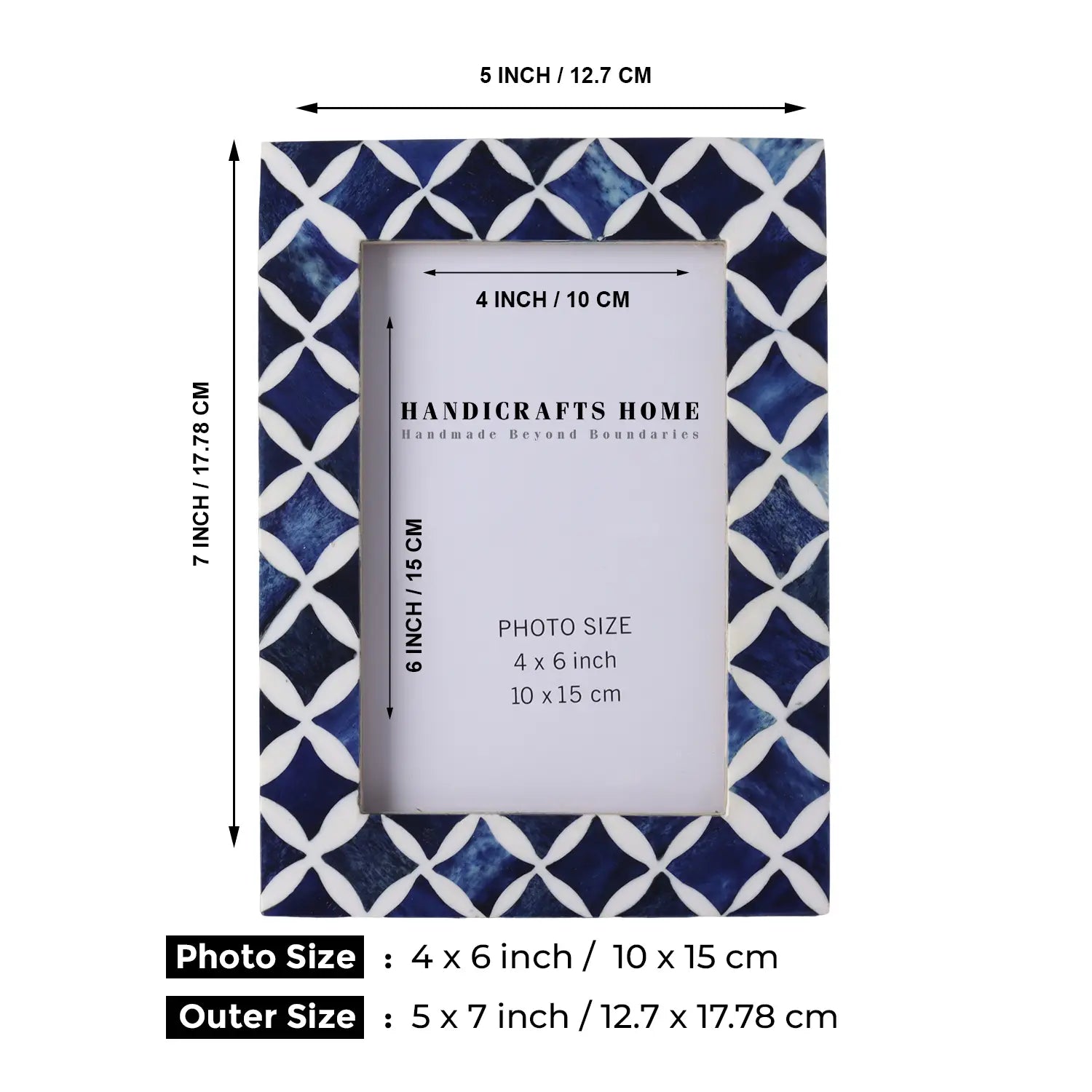 Picture Frames Indigo Mosaic Star Pattern Bone & Resin Inlay Collection, 4x6