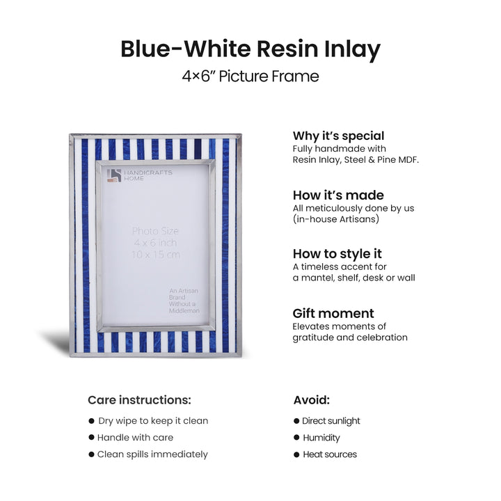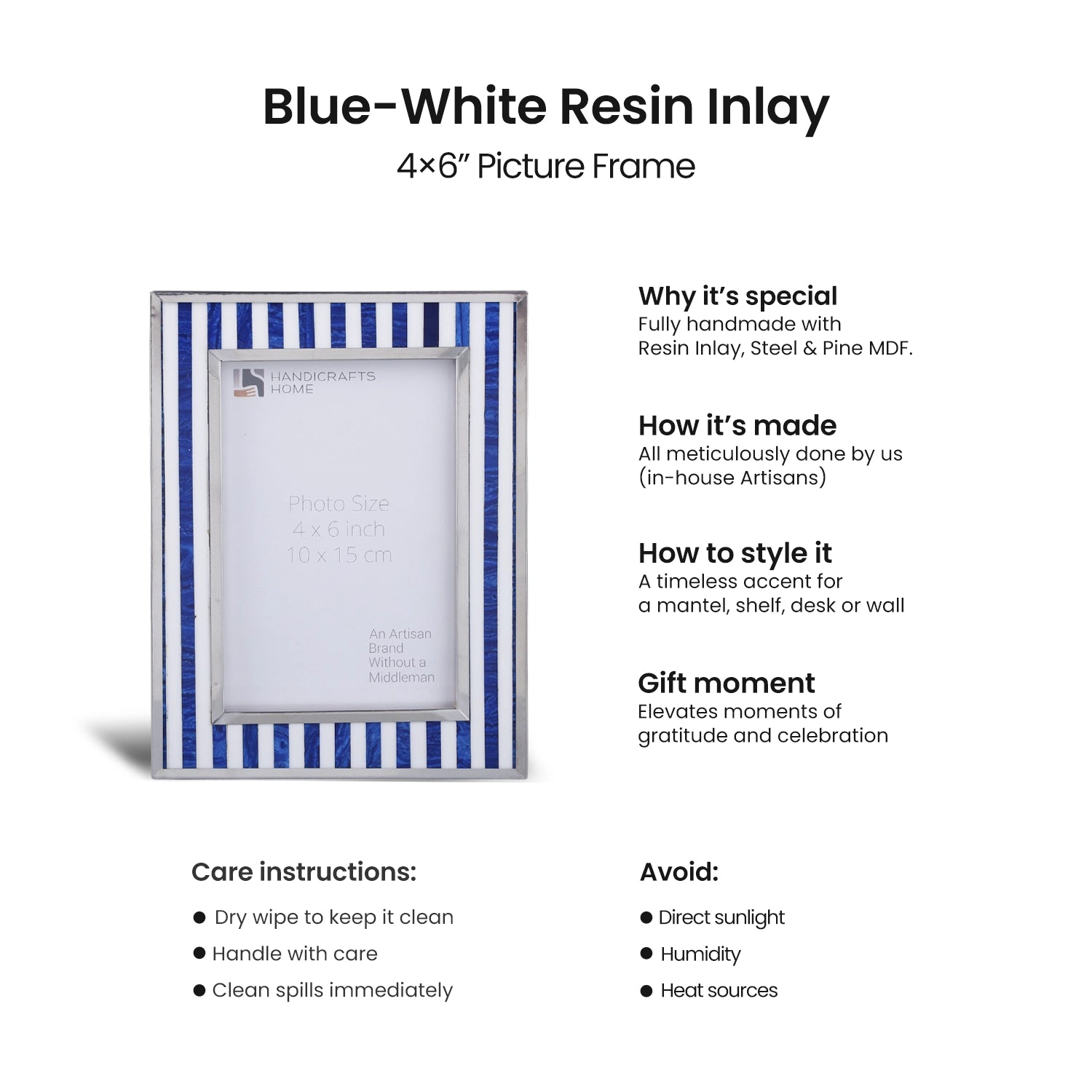Picture Frame Camelot Knight Collection Resin & Stainless Steel Border Blue & White – 4x6"