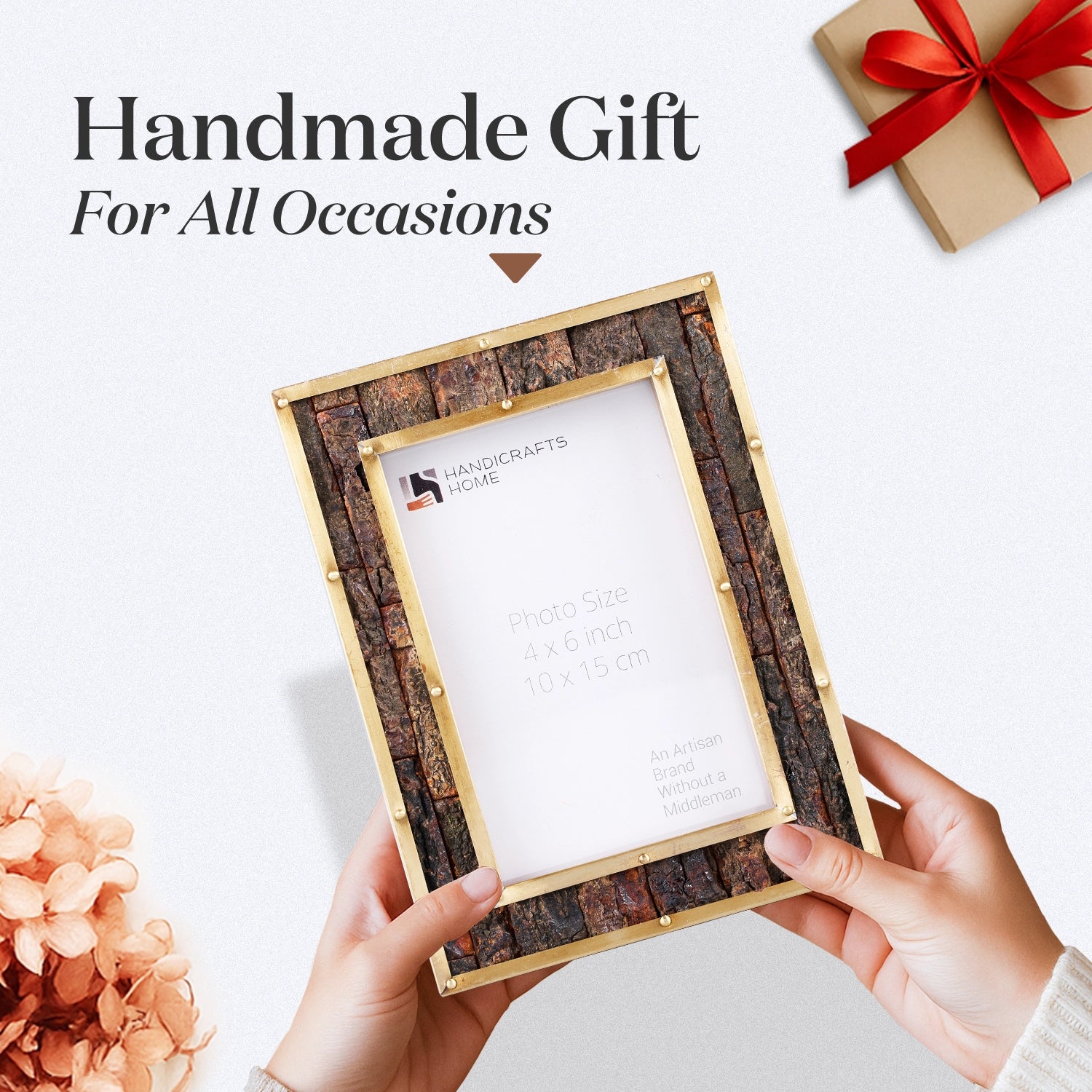Brass & Wood Inlay Blacksmith Bastion Picture Frame, Brown & Gold 4x6