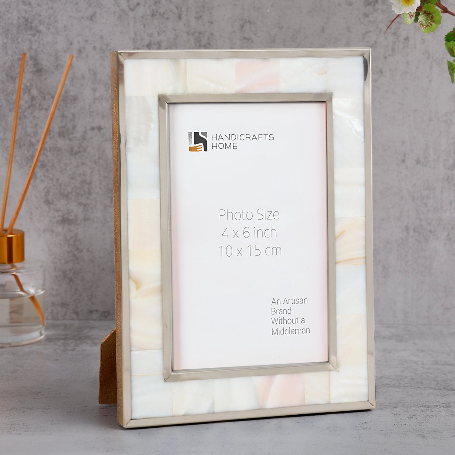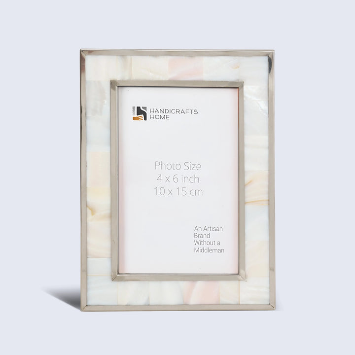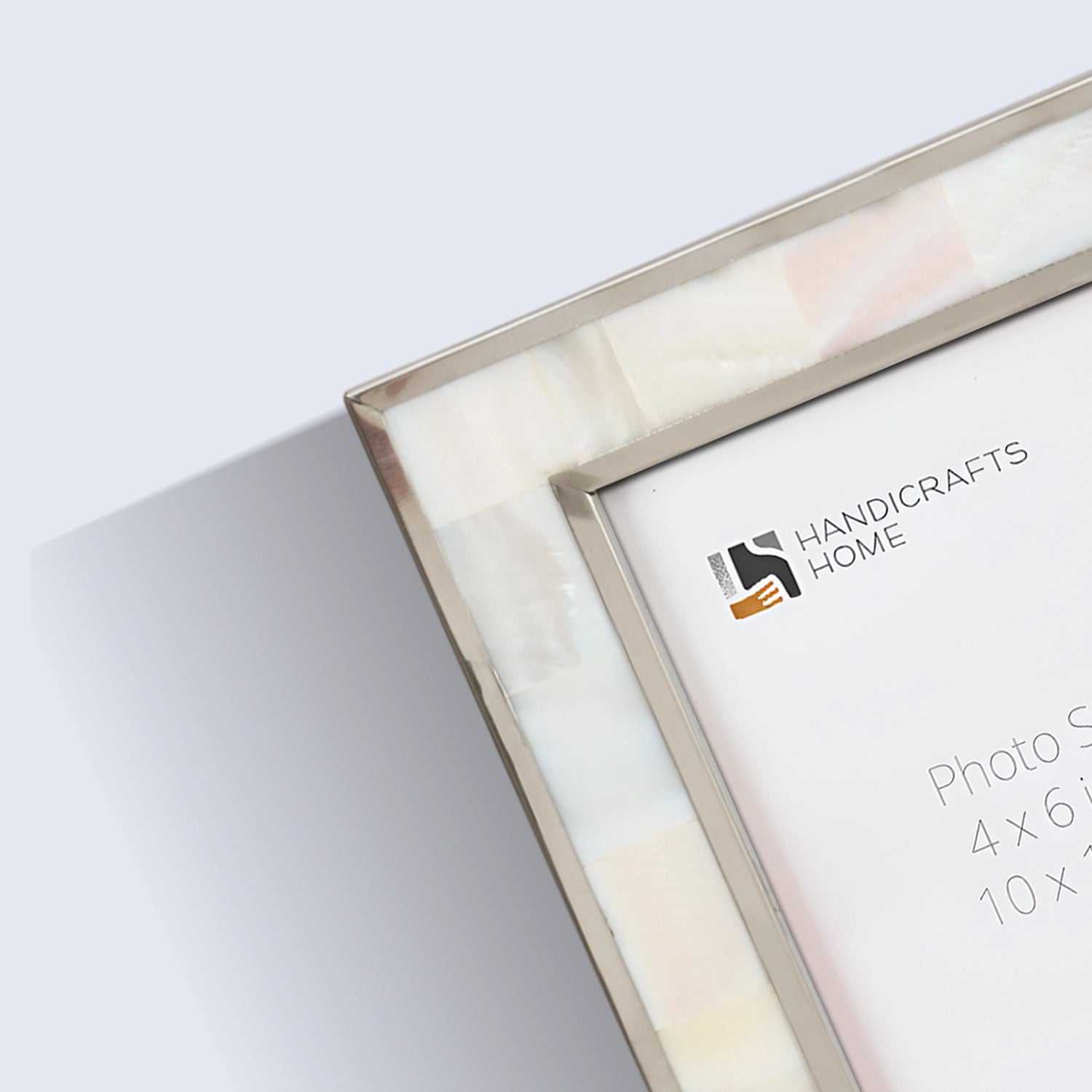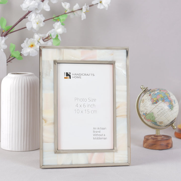 Camelot Maiden Brass & Resin Inlay 4x6 White & Silver Picture Frame