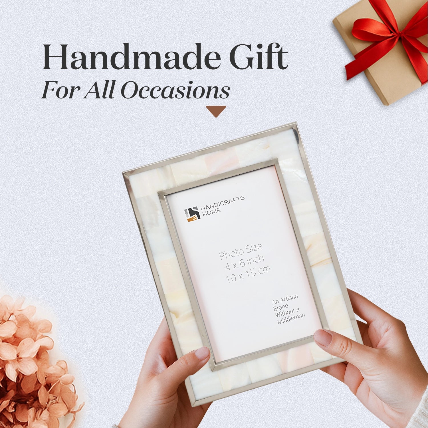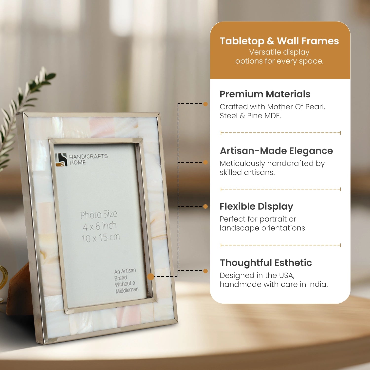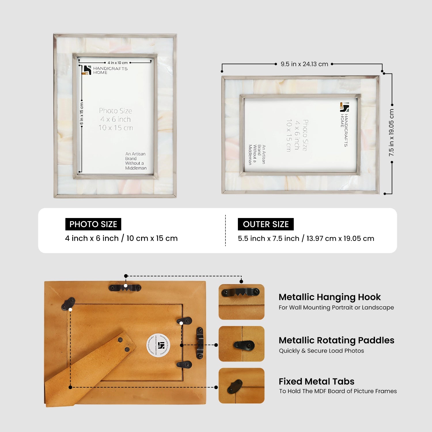 Camelot Maiden Brass & Resin Inlay 4x6 White & Silver Picture Frame
