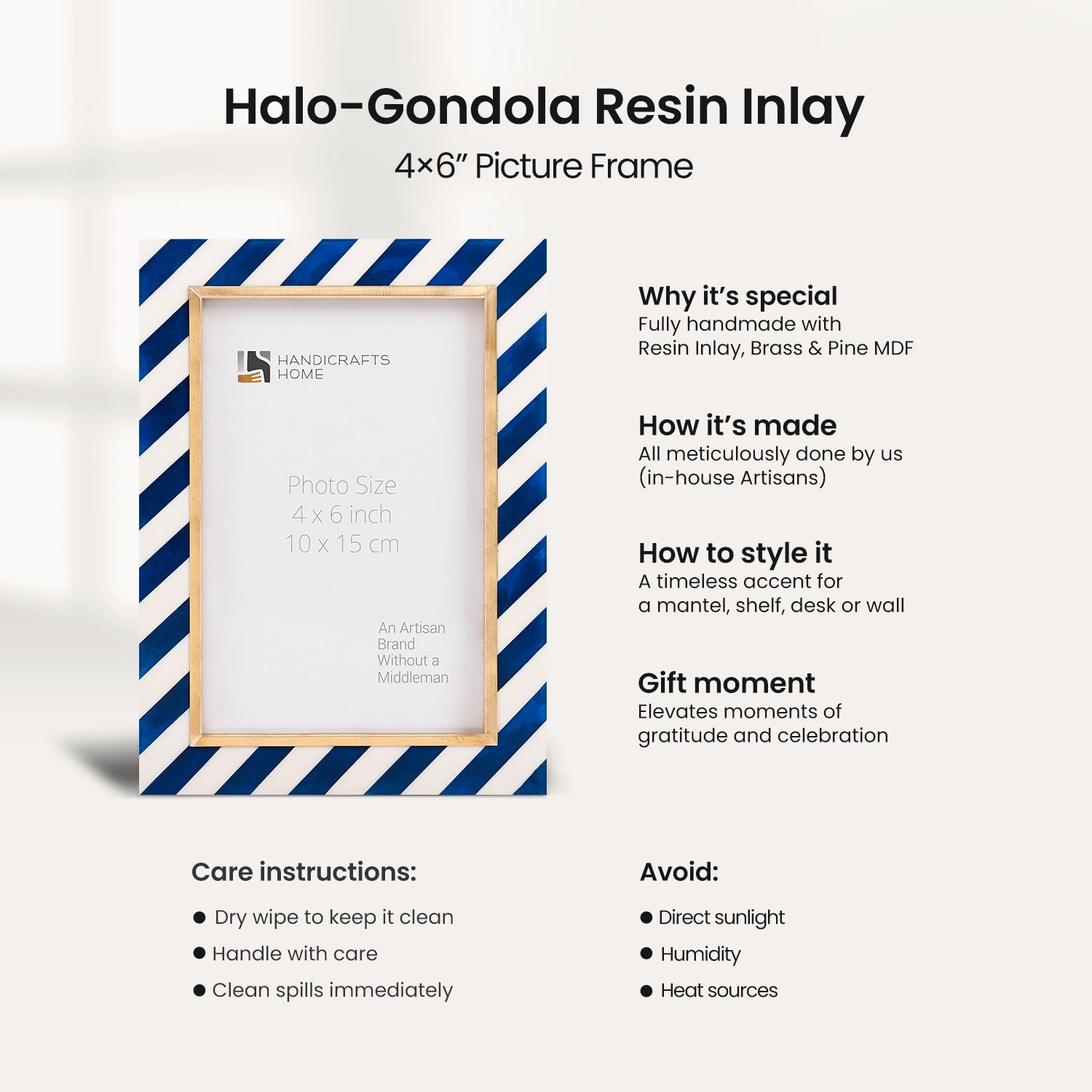 Halo Gondola Blue & White Resin Inlay with Brass Picture Frame