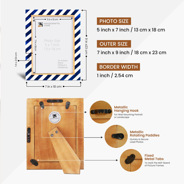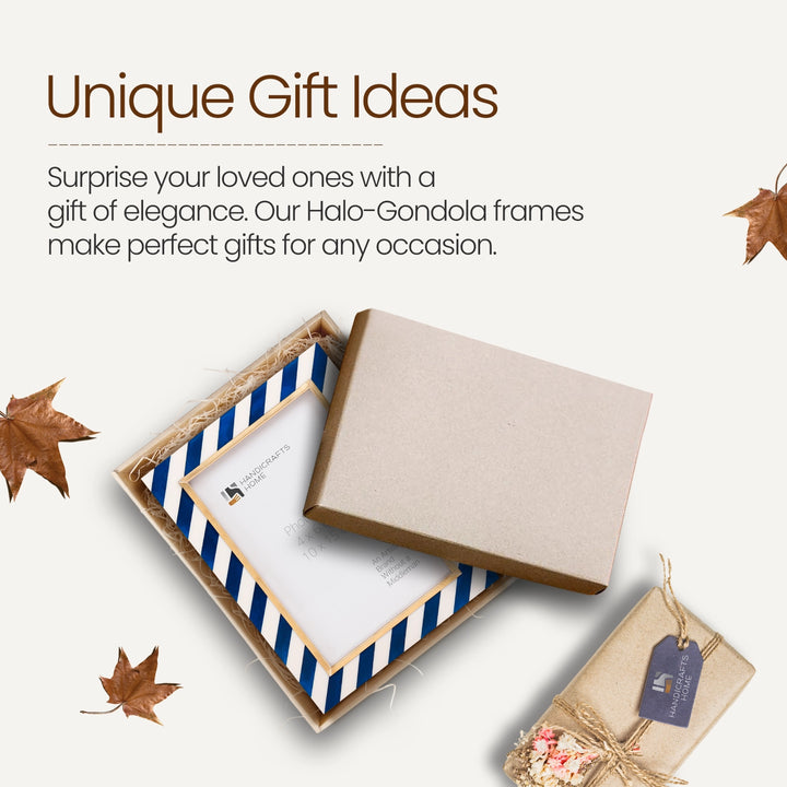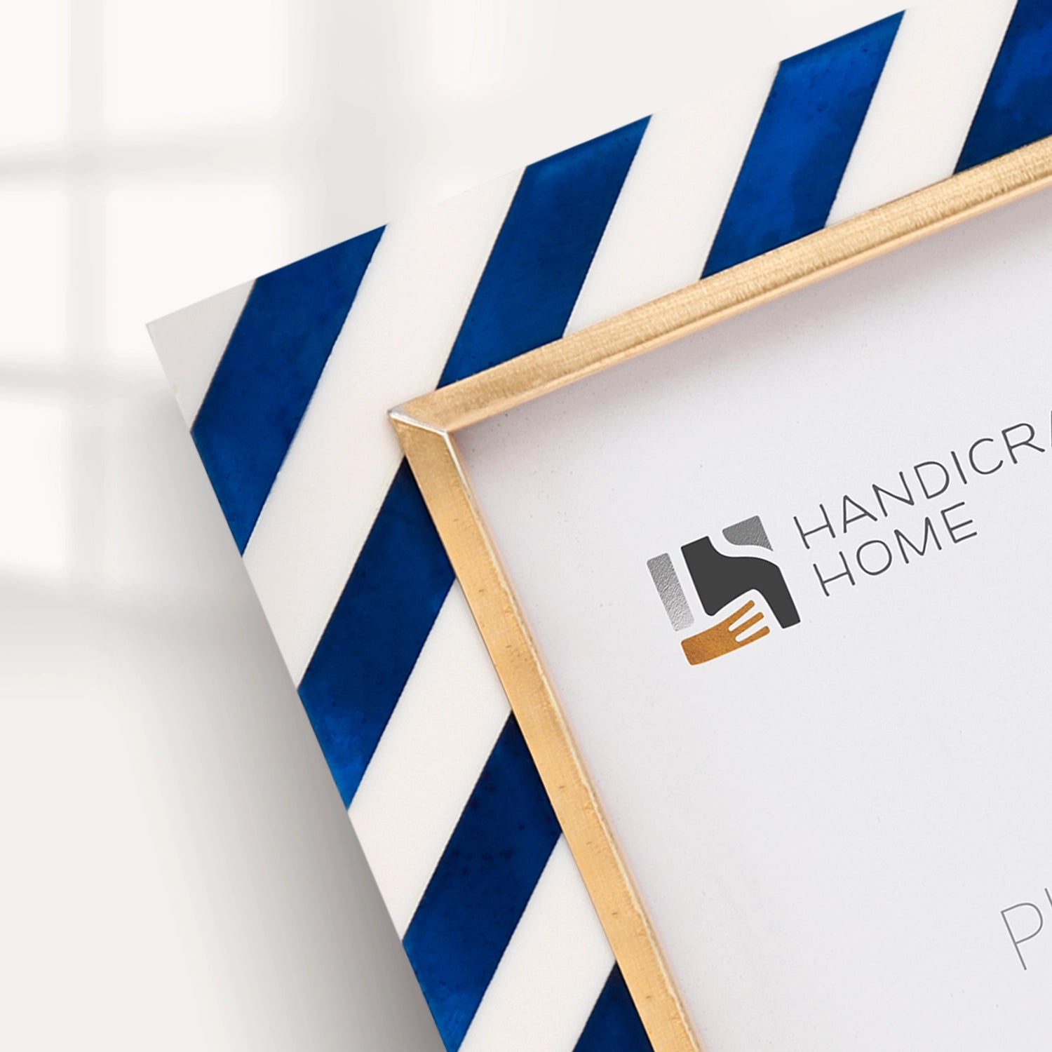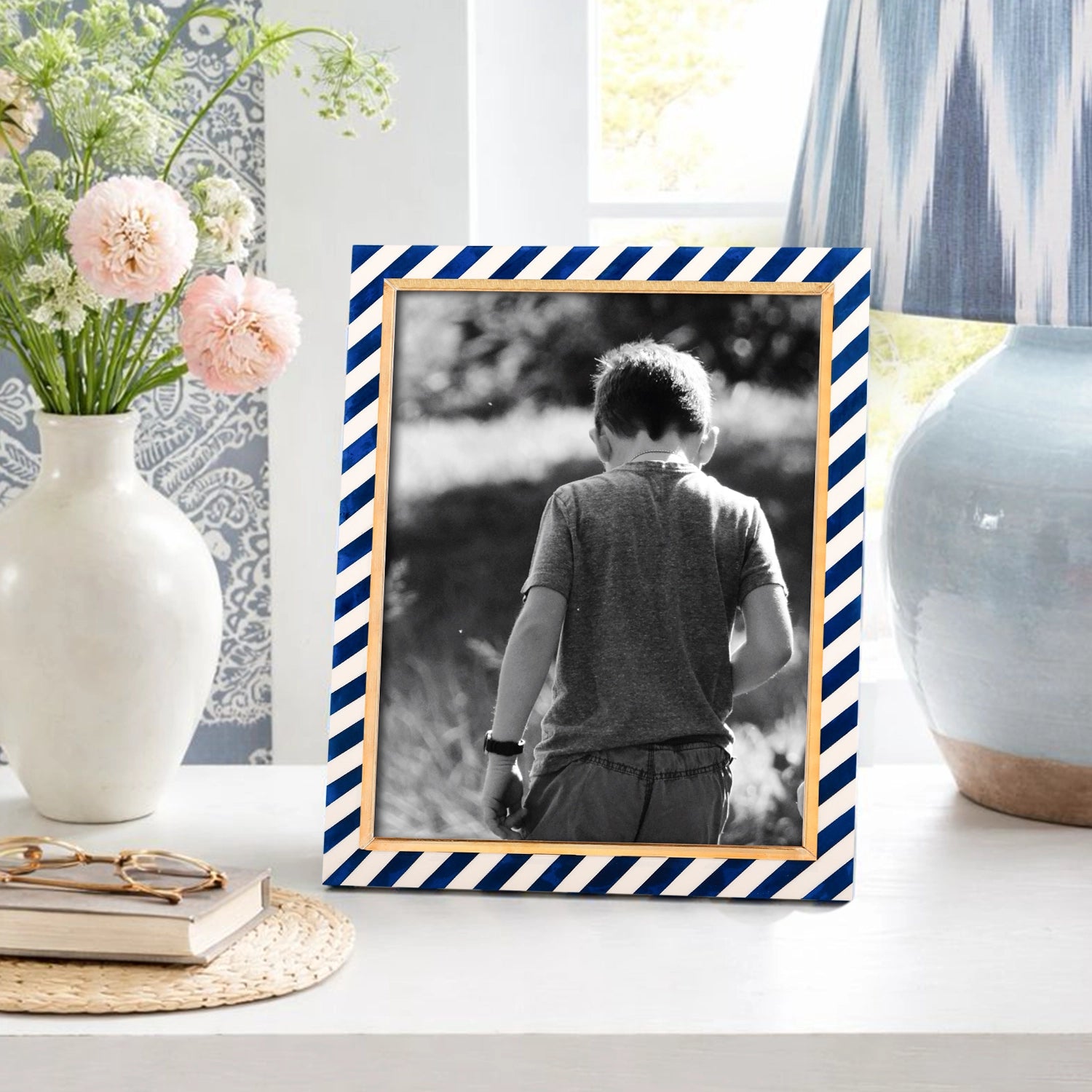 The Halo Gondola Collection picture frame featuring a bold diagonal stripe pattern crafted from high quality resin inlay and finished with a sleek brass inner border. Handmade one piece at a time, each frame showcases clean lines, crisp contrast, and subtle artisanal variation that elevates both modern and classic interiors.