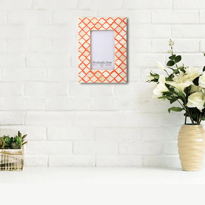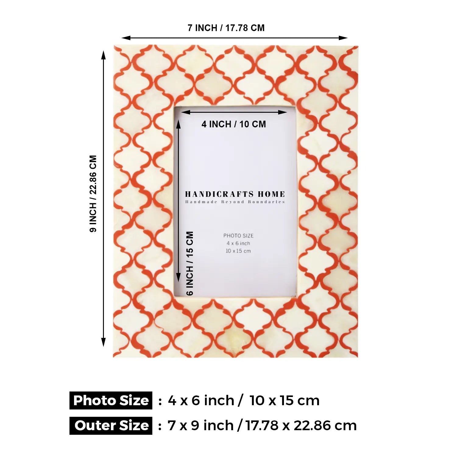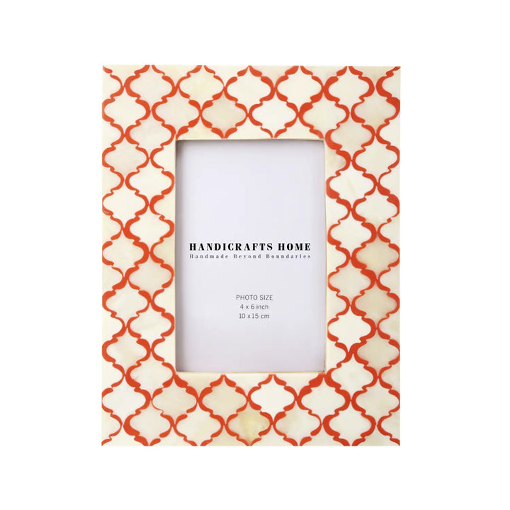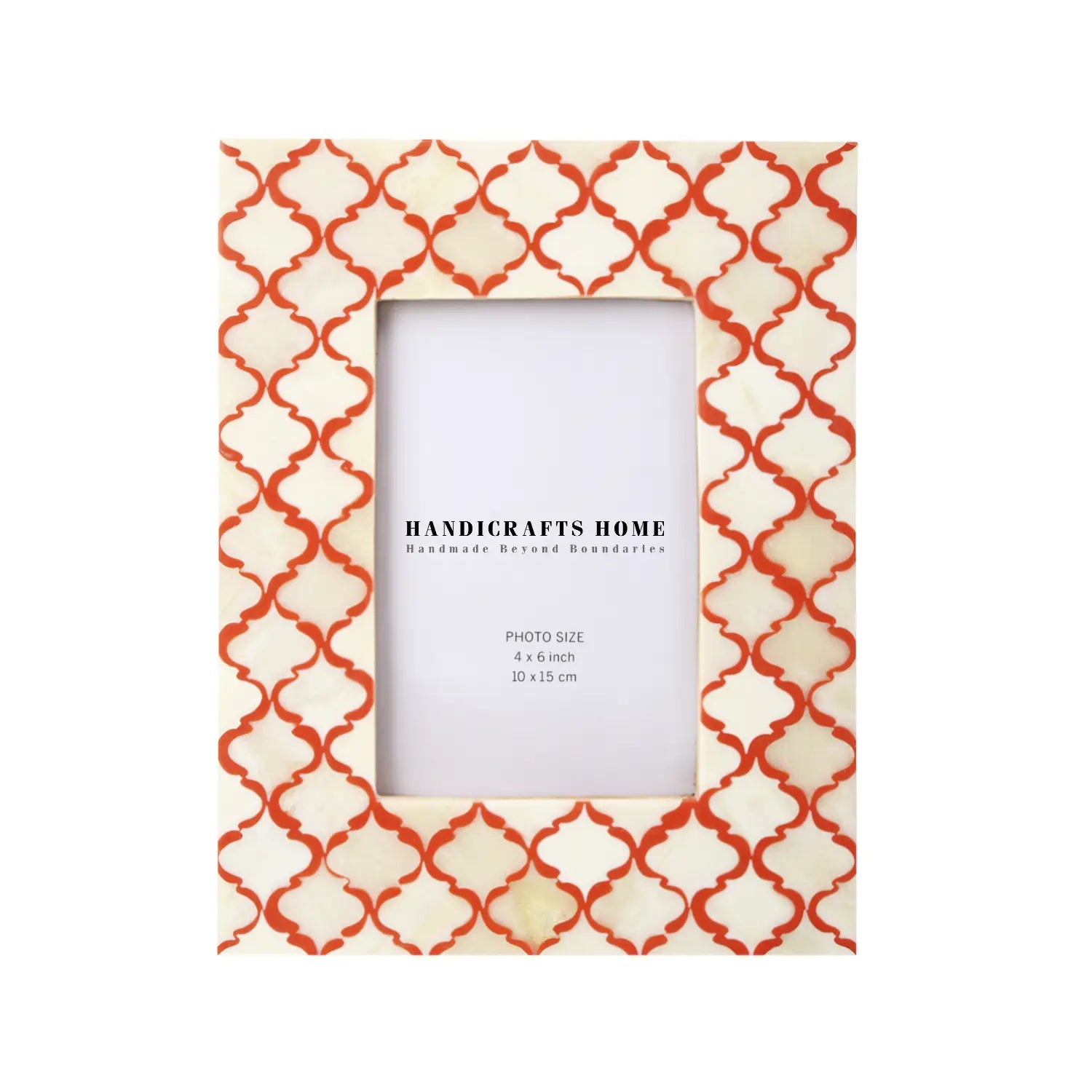 Picture Frames Moroccan Pattern Bone & Resin Inlay Collection in 2 Sizes, White & Red