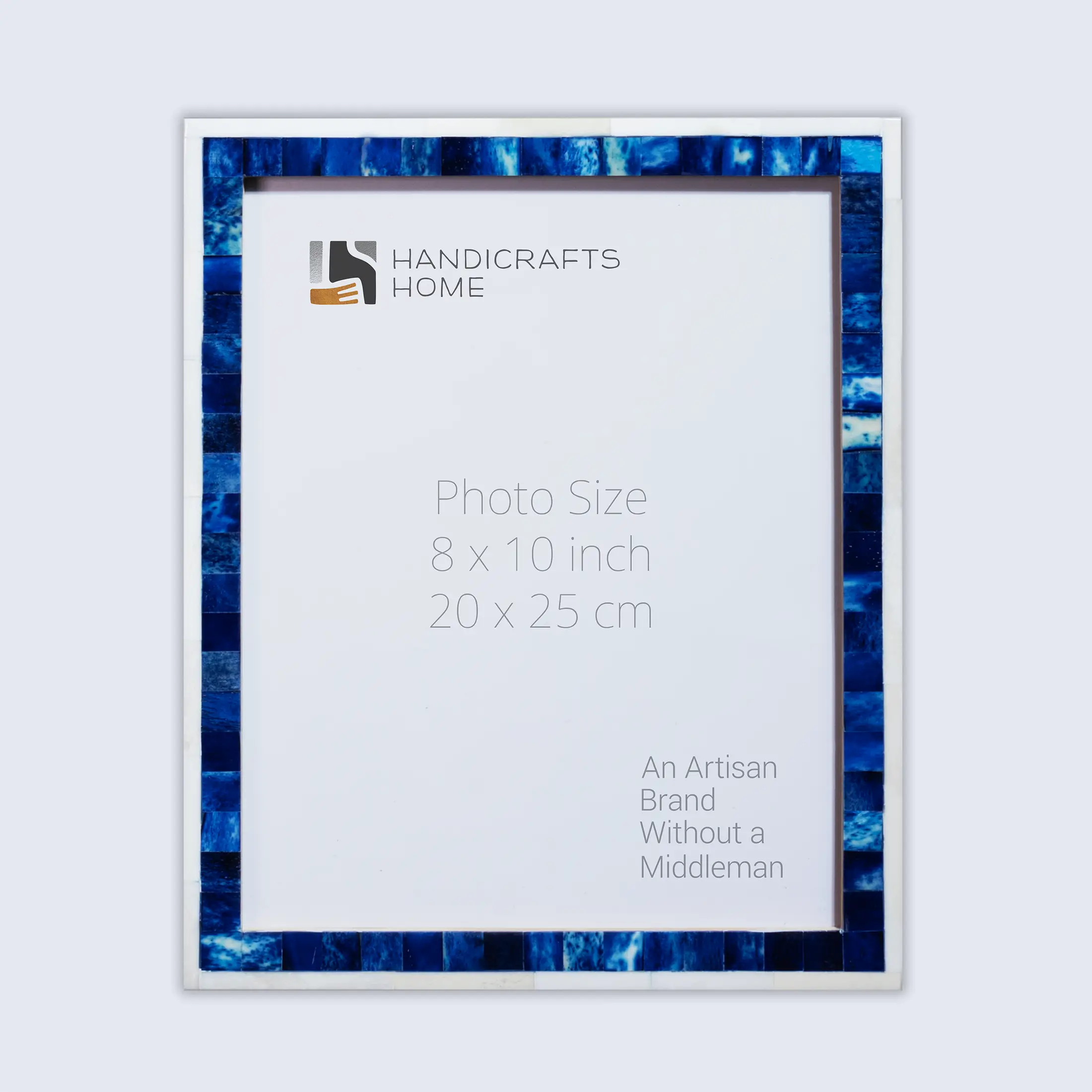 Classic Bone Inlay Picture Frame. Blue & White 4x6, 5x8 and 8x10