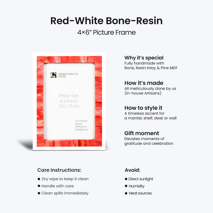 Picture Frame Mosaic Collection Bone Inlay Red & White- 3 Sizes