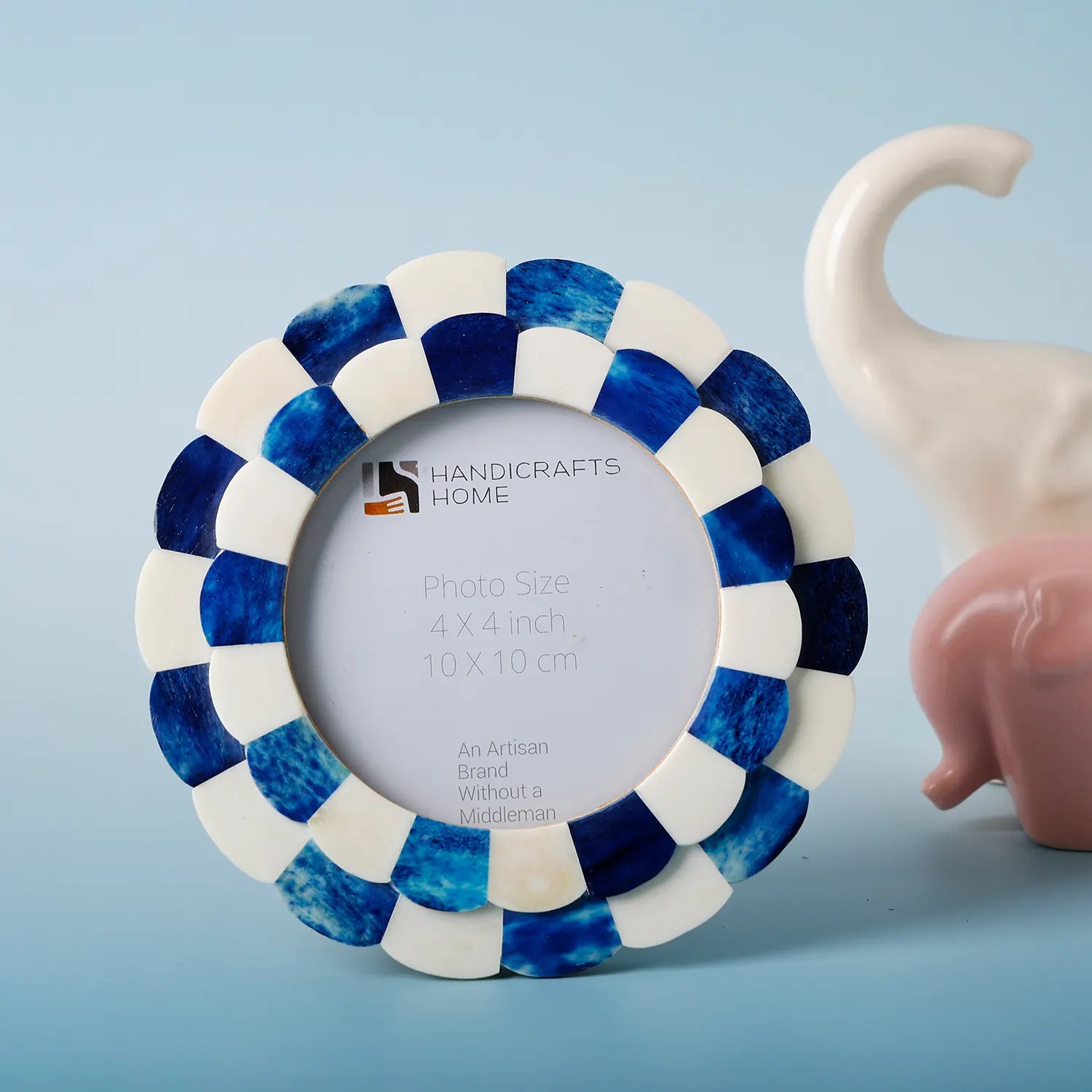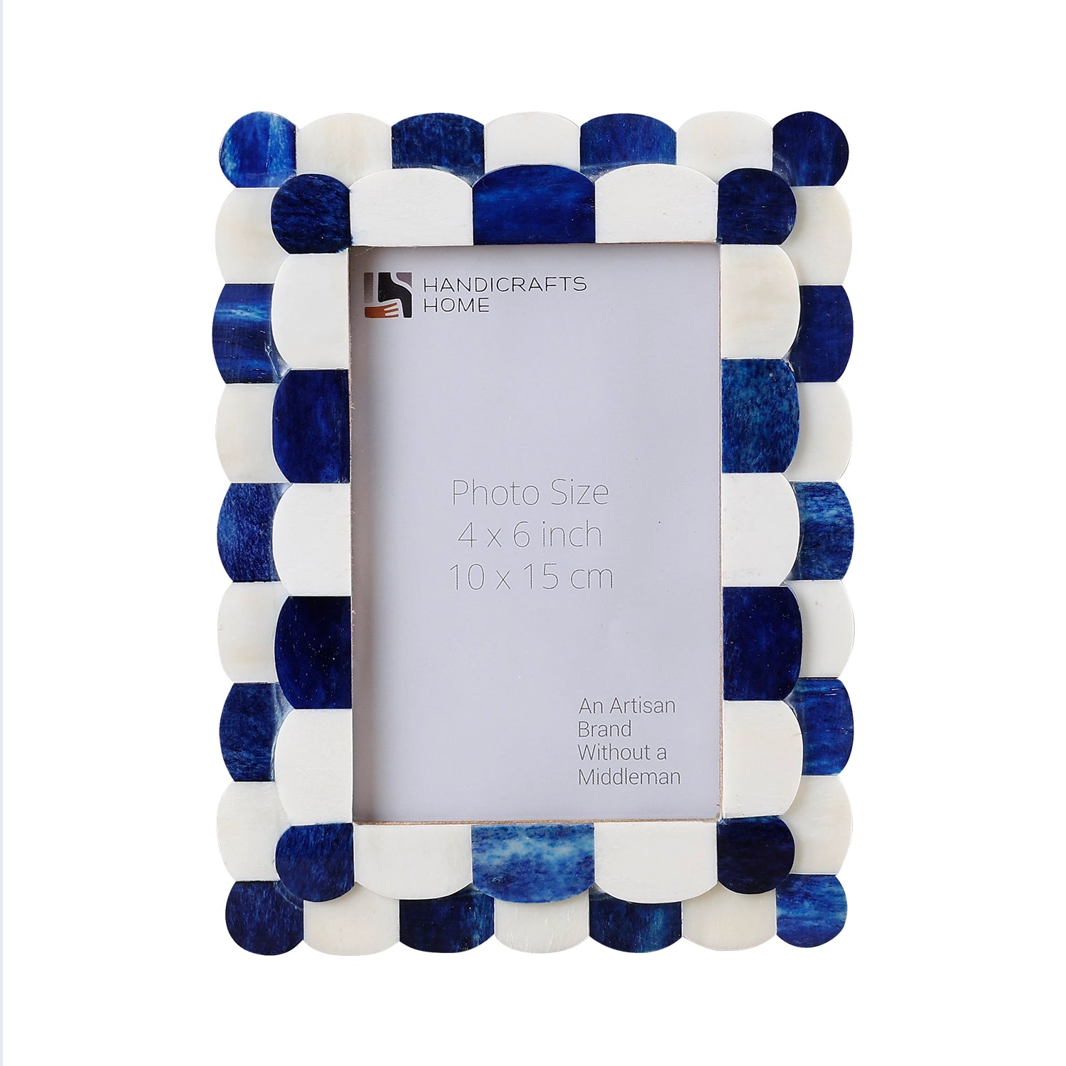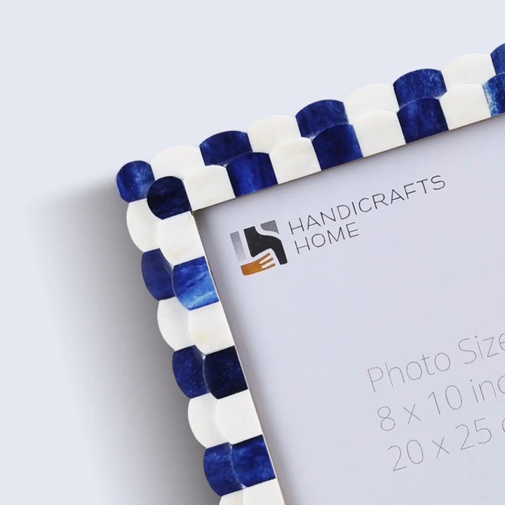 Picture Frames Scalloped Pattern Bone Inlay Collection in 4 sizes, Blue