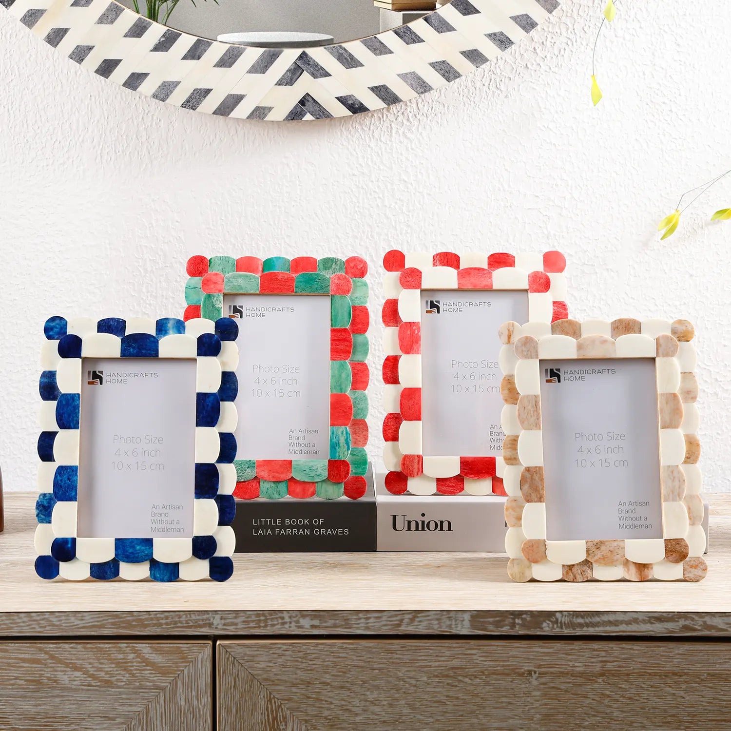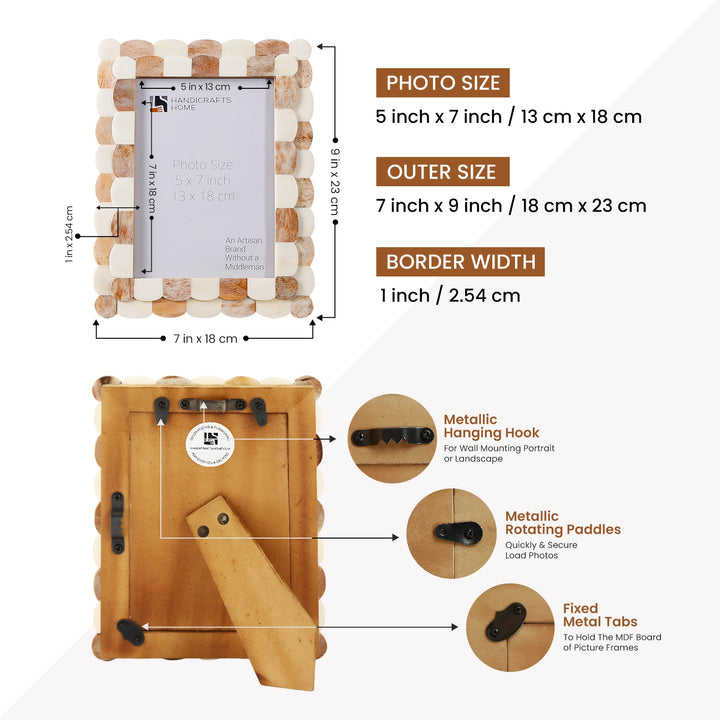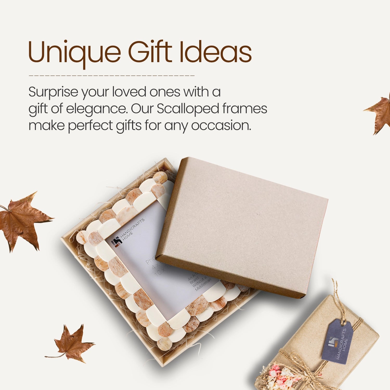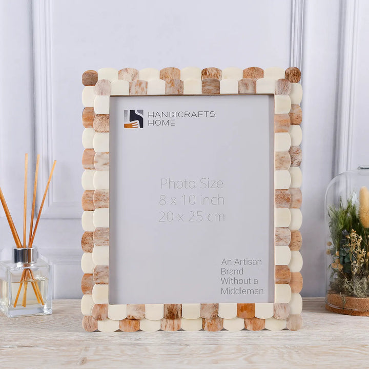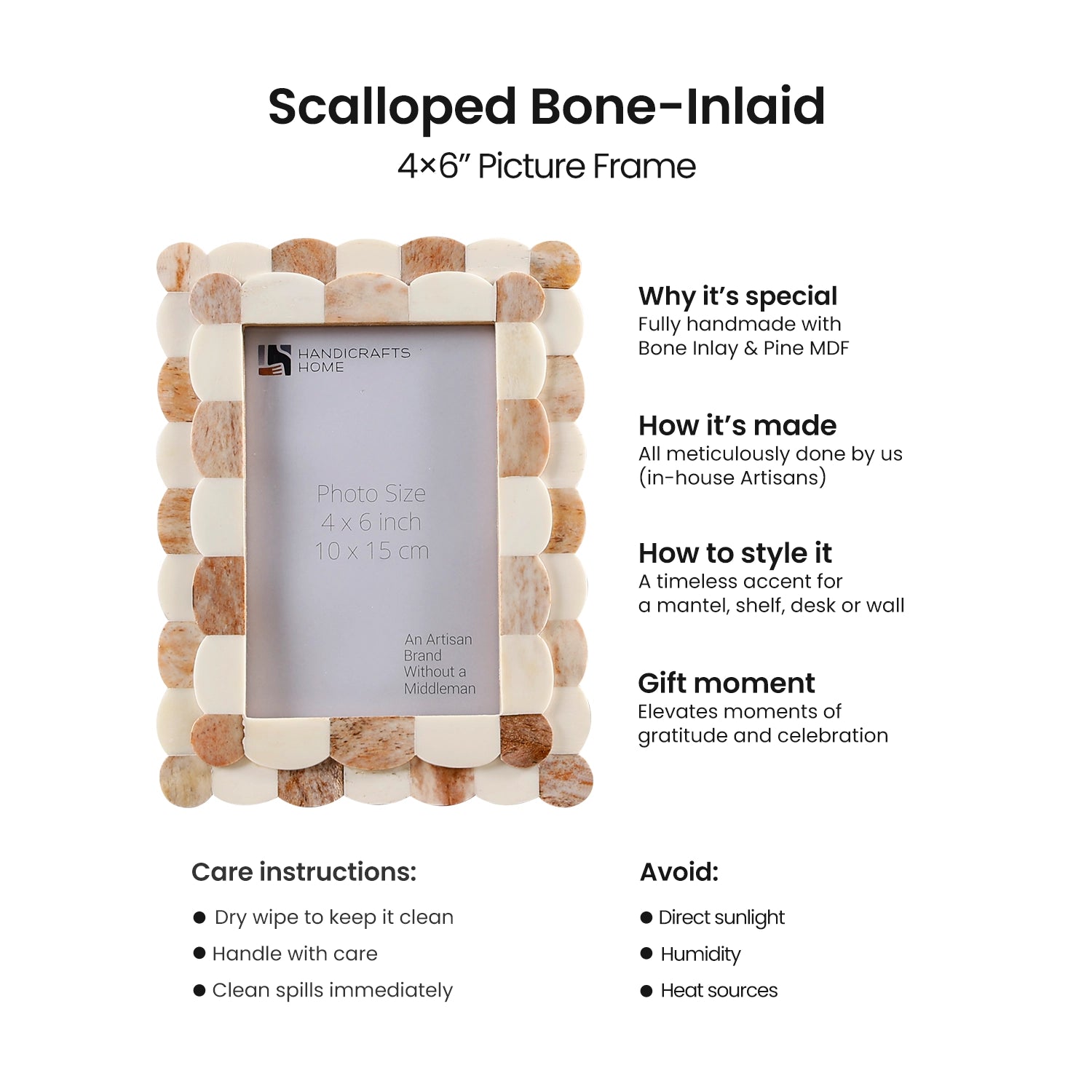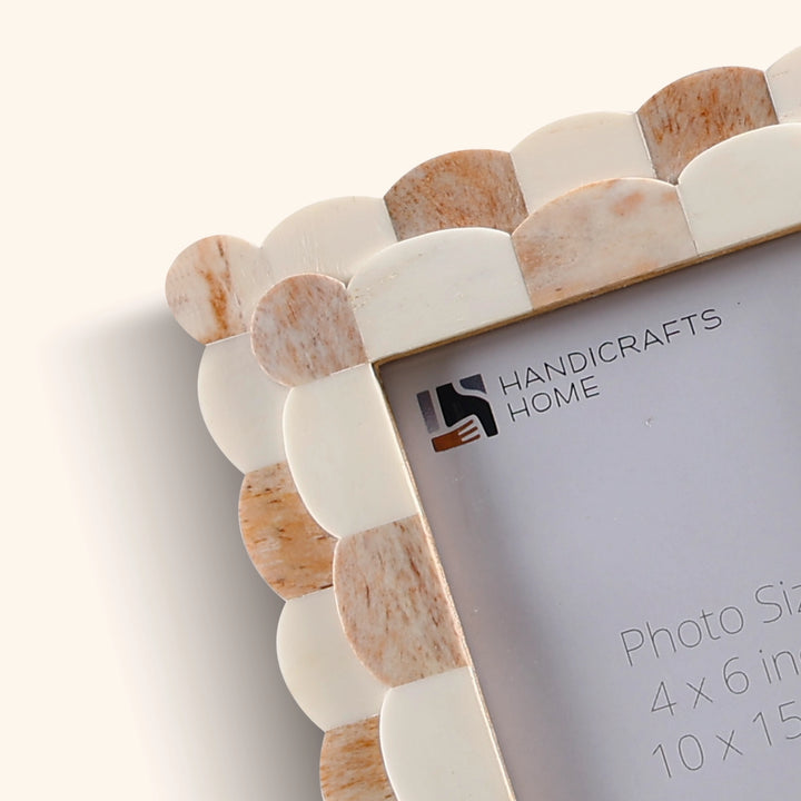 Picture Frame Scalloped Art Collection Bone Inlay Brown White 3 Sizes