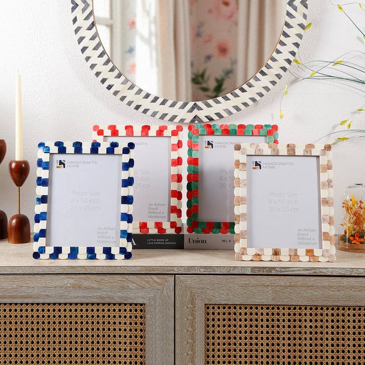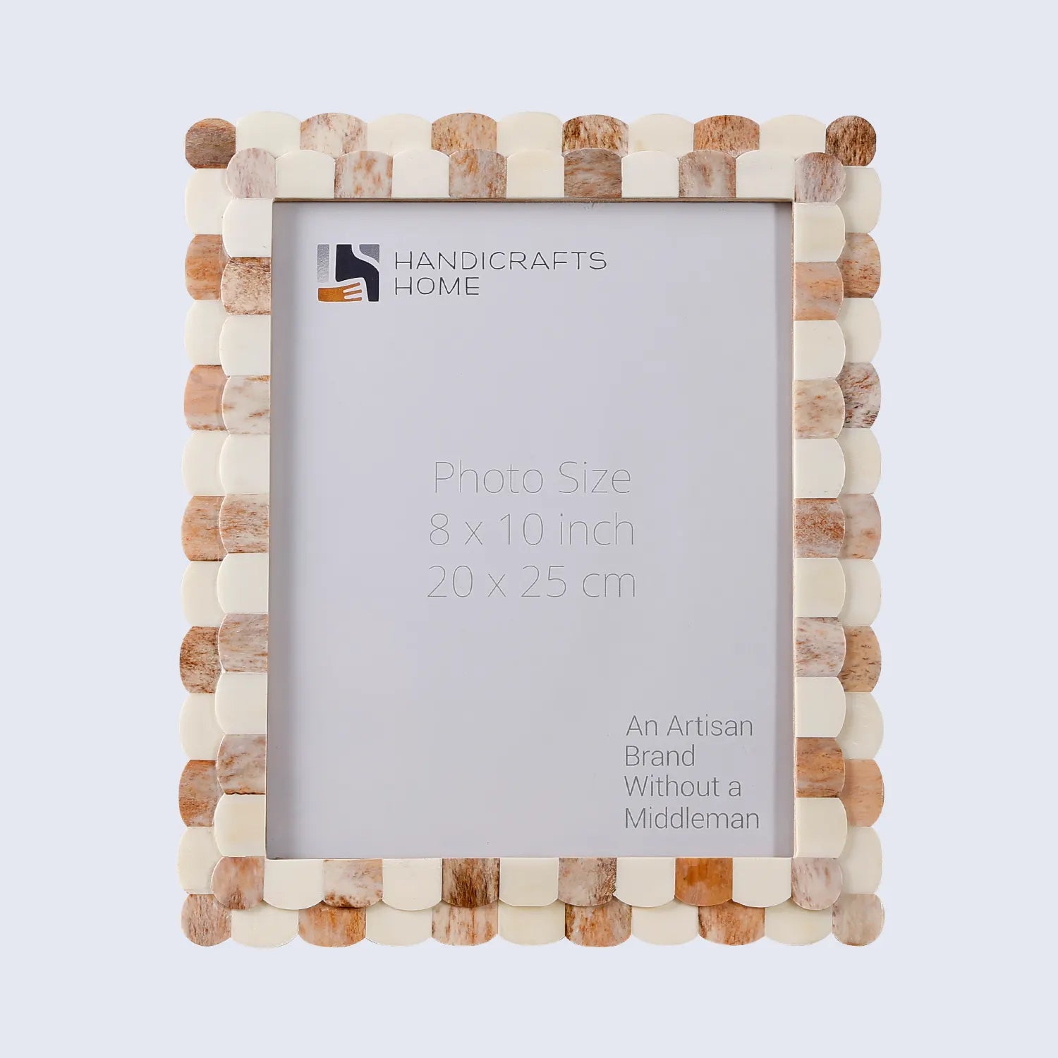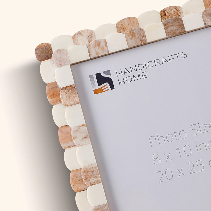 Picture Frames Scalloped Pattern Bone Inlay Collection in 4 sizes, Brown