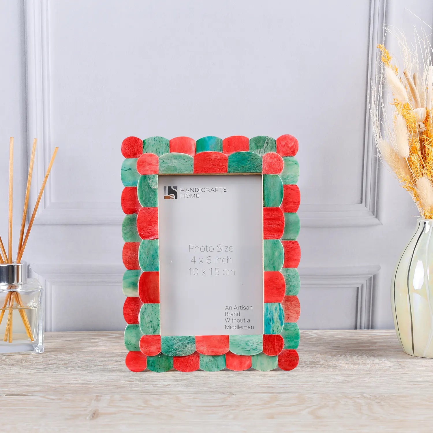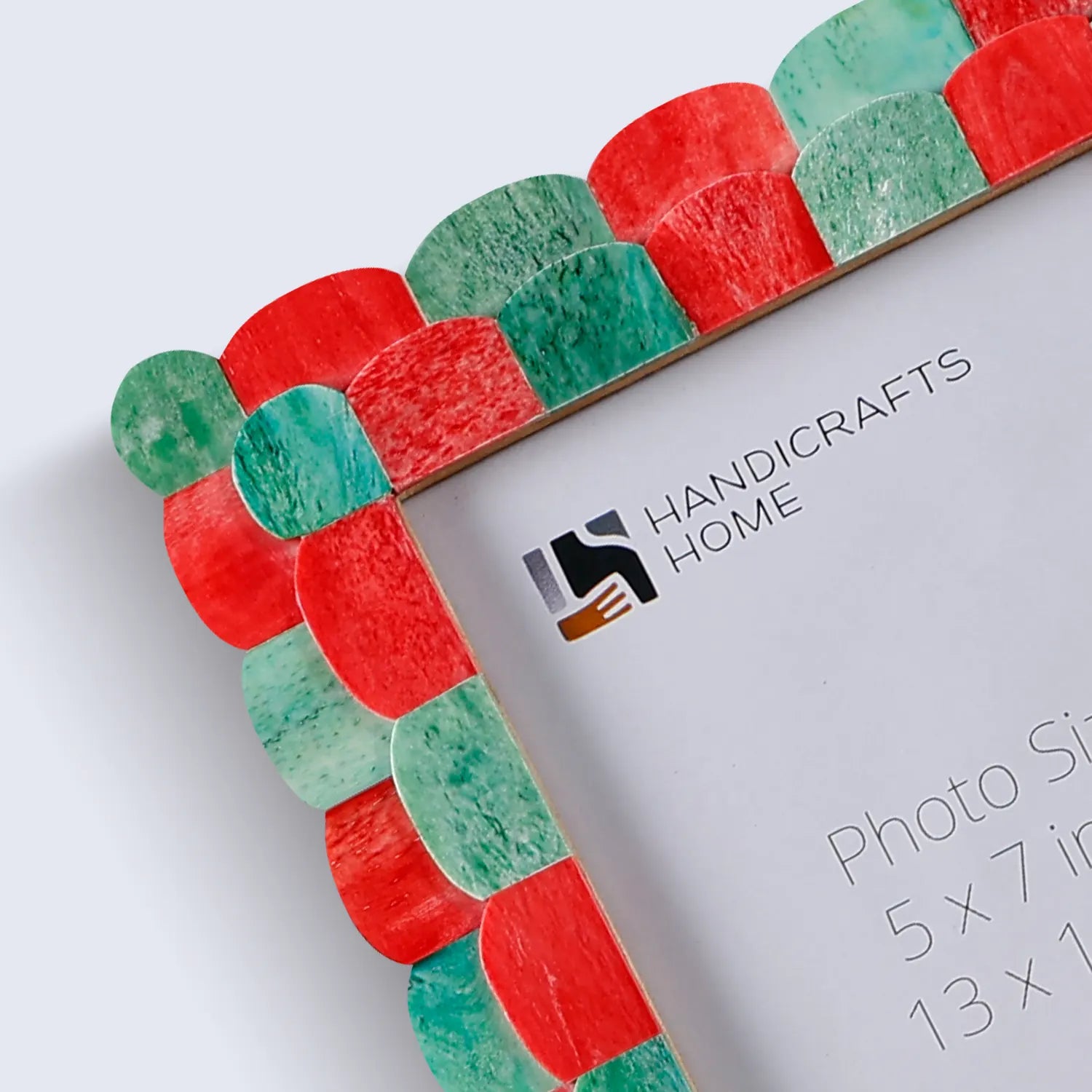 Picture Frames Scalloped Pattern Bone Inlay Collection in 4 sizes, Green & Red