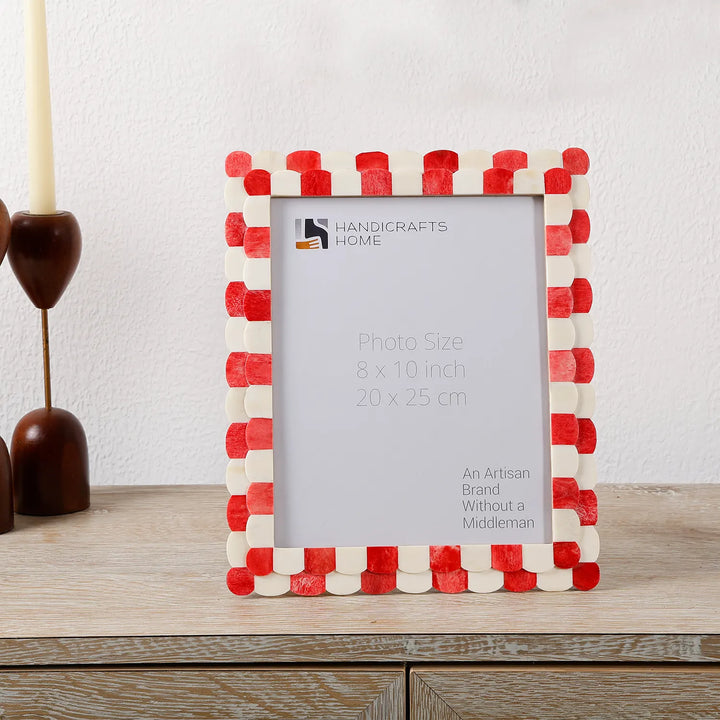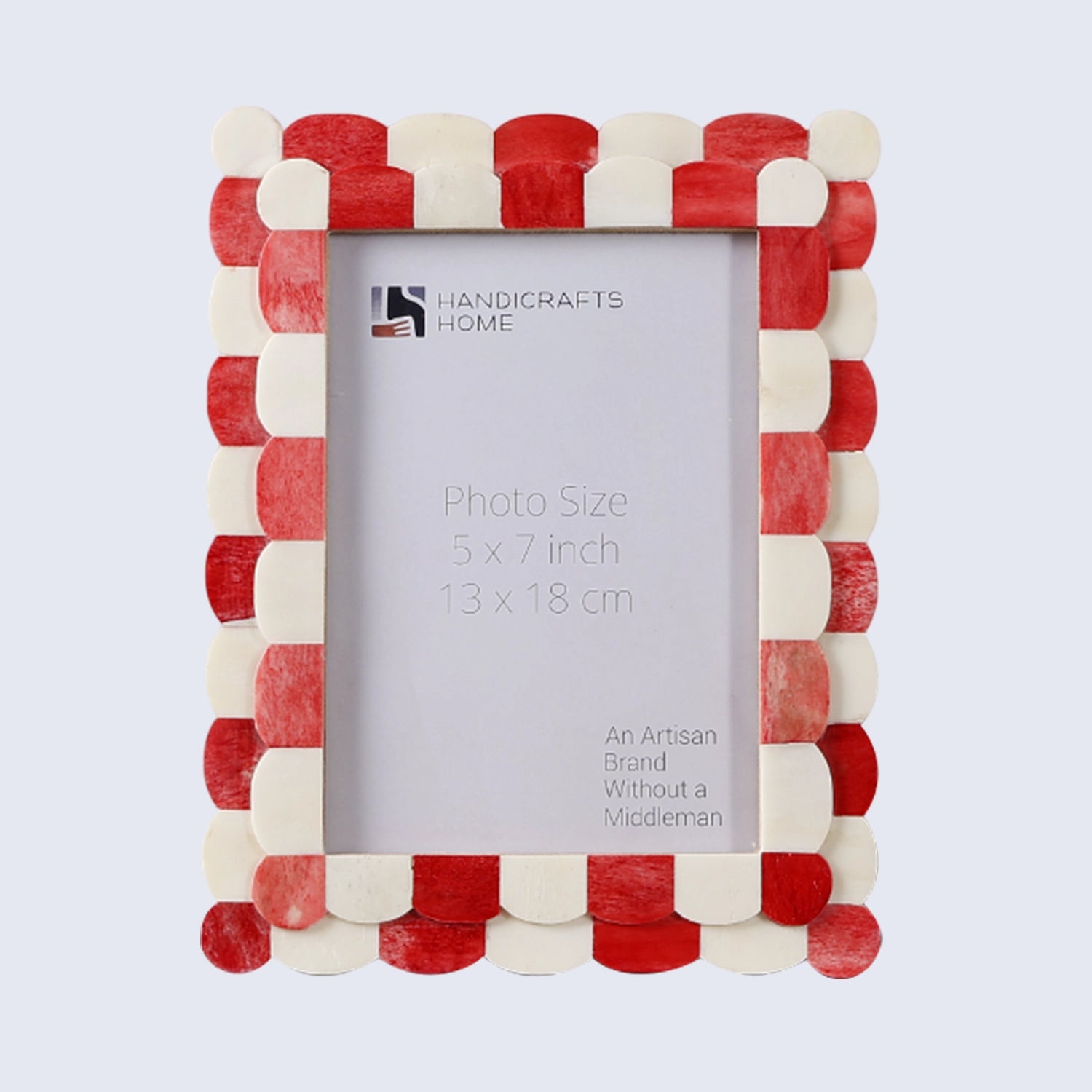 Picture Frames Scalloped Pattern Bone Inlay Collection in 4 sizes, Red