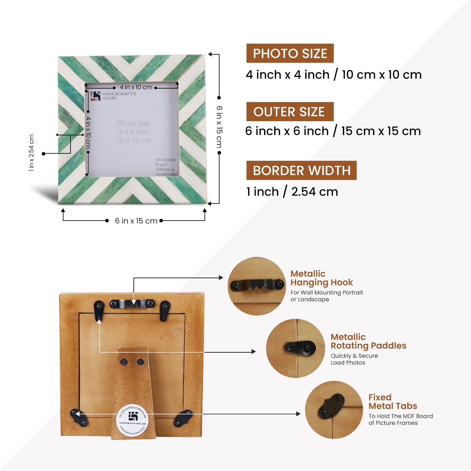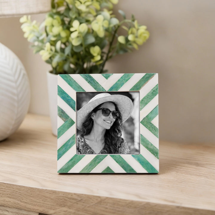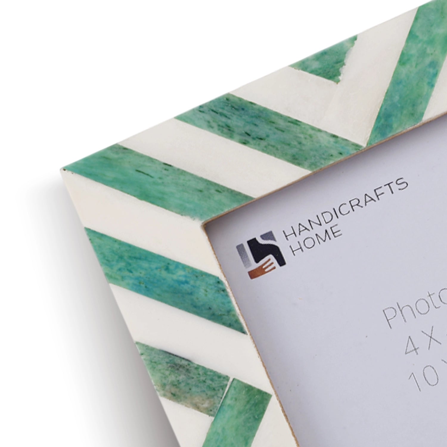 Chevron Pattern Baby Picture Frame combines playful charm with artisanal craftsmanship. Handcrafted using individually cut natural bone inlay pieces arranged in the signature chevron pattern, this frame adds a stylish, modern touch to nursery décor, kids’ rooms, desks, shelves, and gallery walls. The refreshing green tones and natural texture variations give each frame a unique, heirloom-quality finish, perfect for preserving your little one’s cherished memories.
