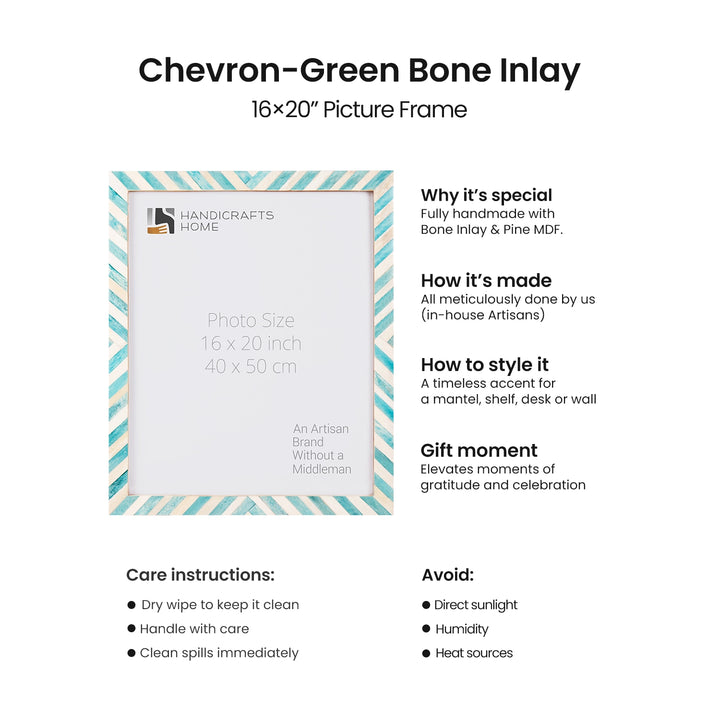 Chevron Collection, Bone Inlay, Green, 23 Sizes