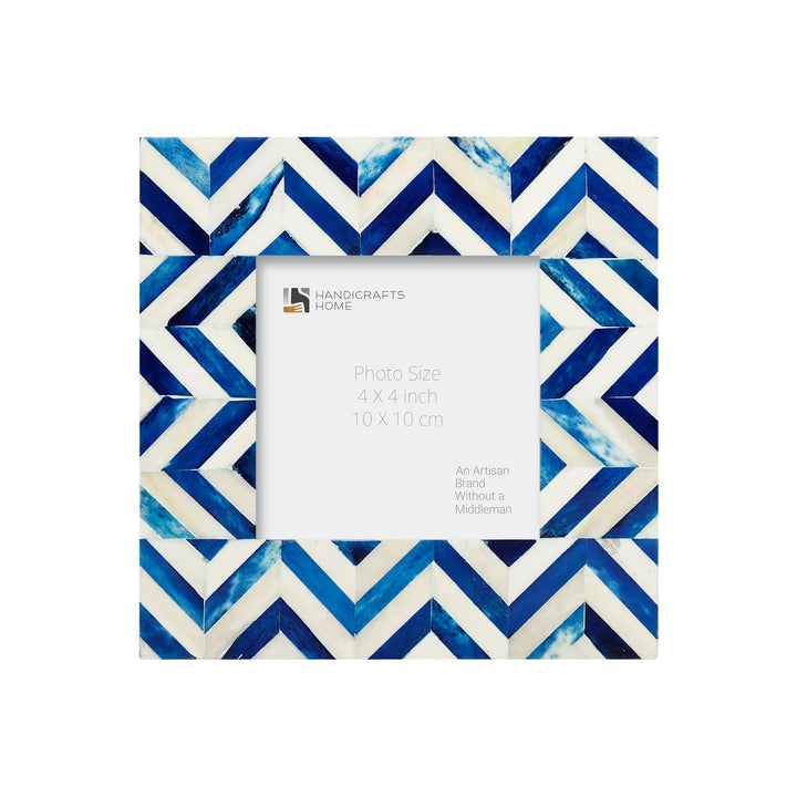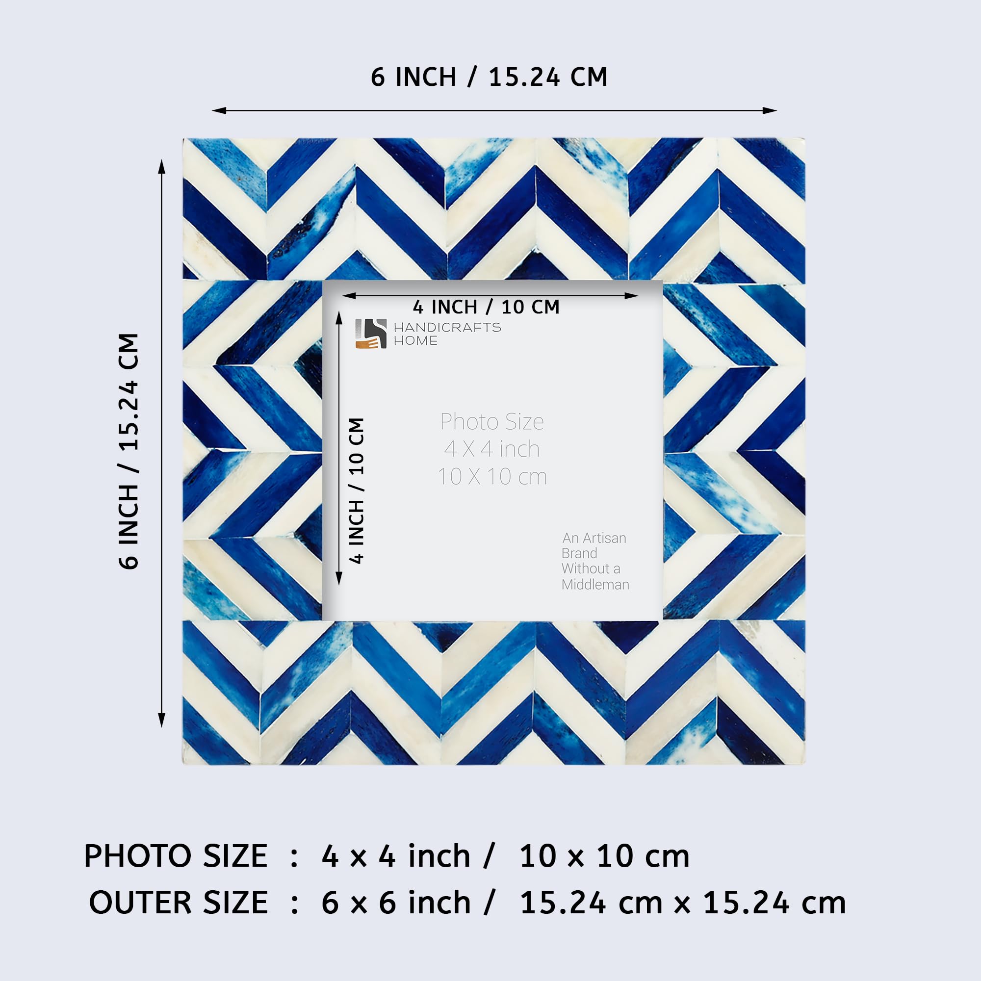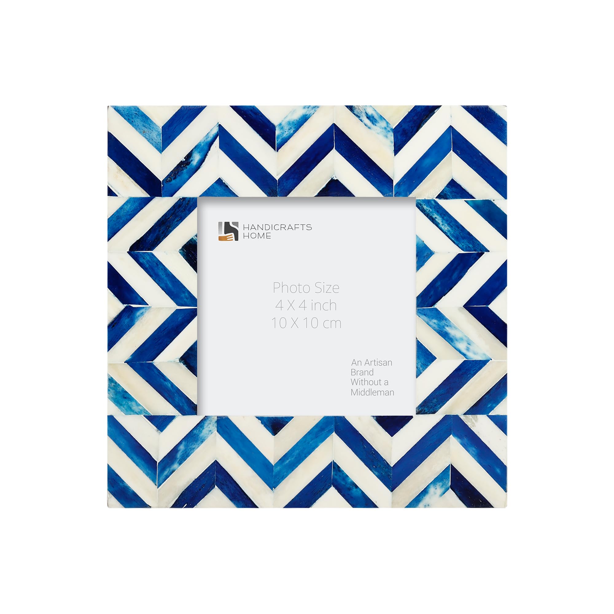 Square Baby Picture Frames Herringbone Pattern Bone Inlay 4x4 Inch, Blue