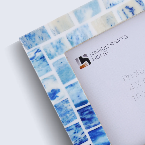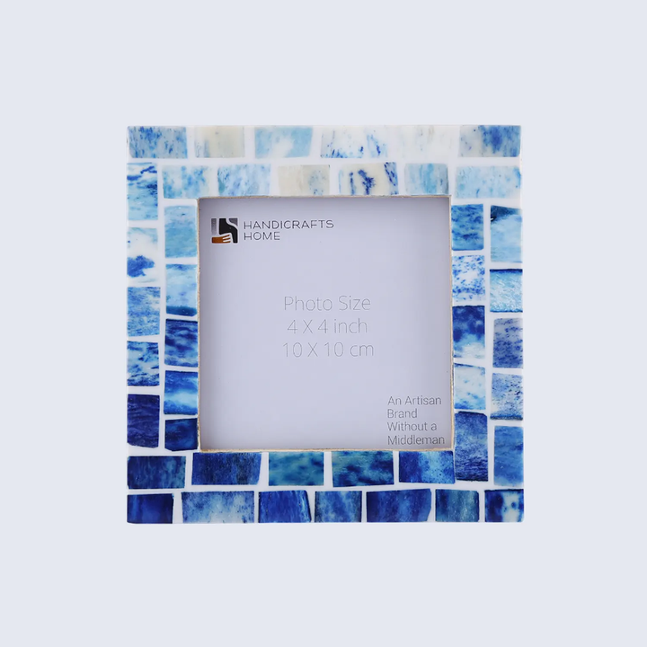 Square Baby Picture Frames Indigo Pattern Bone Inlay 4x4 Inch Display Size