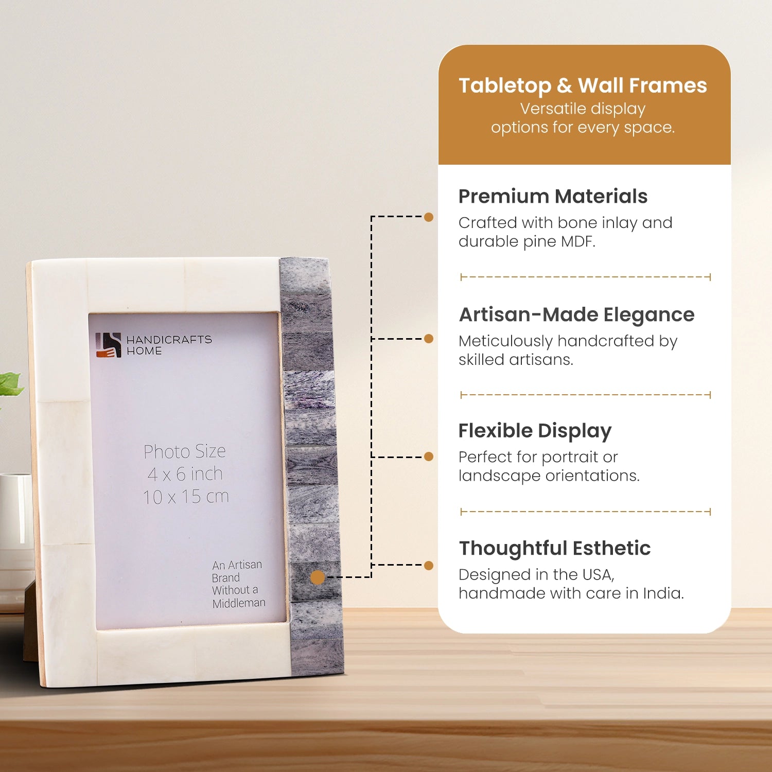 Plain White & Grey Bone Inlay Picture Frame - 4x6 & 5x7