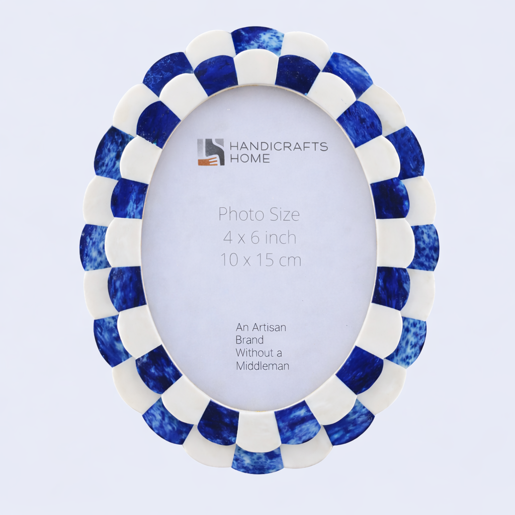 Pre Order Oval Picture Frames Scallop Art Inspired Collection Bone Inlay, Blue, 4" x 6"